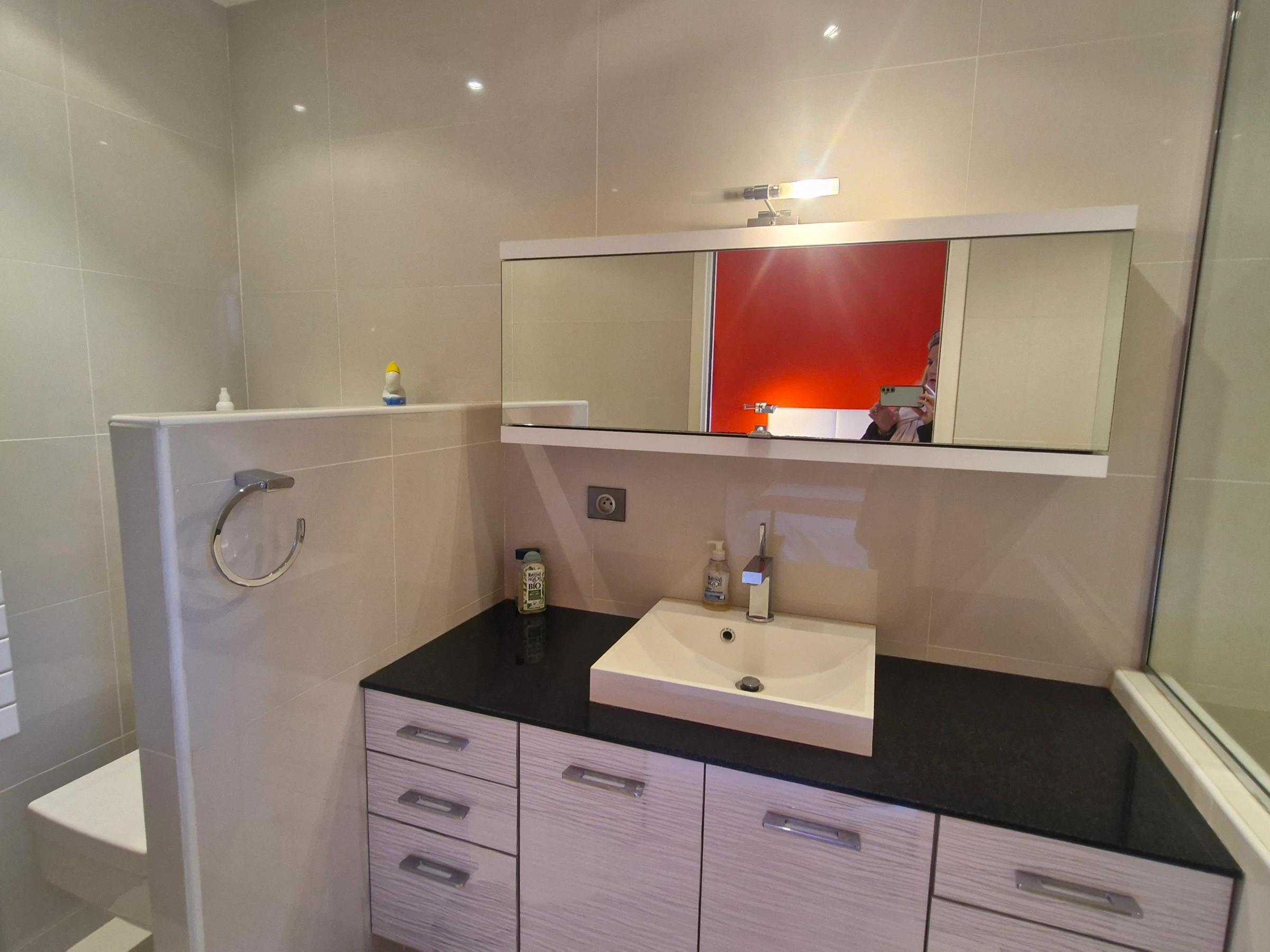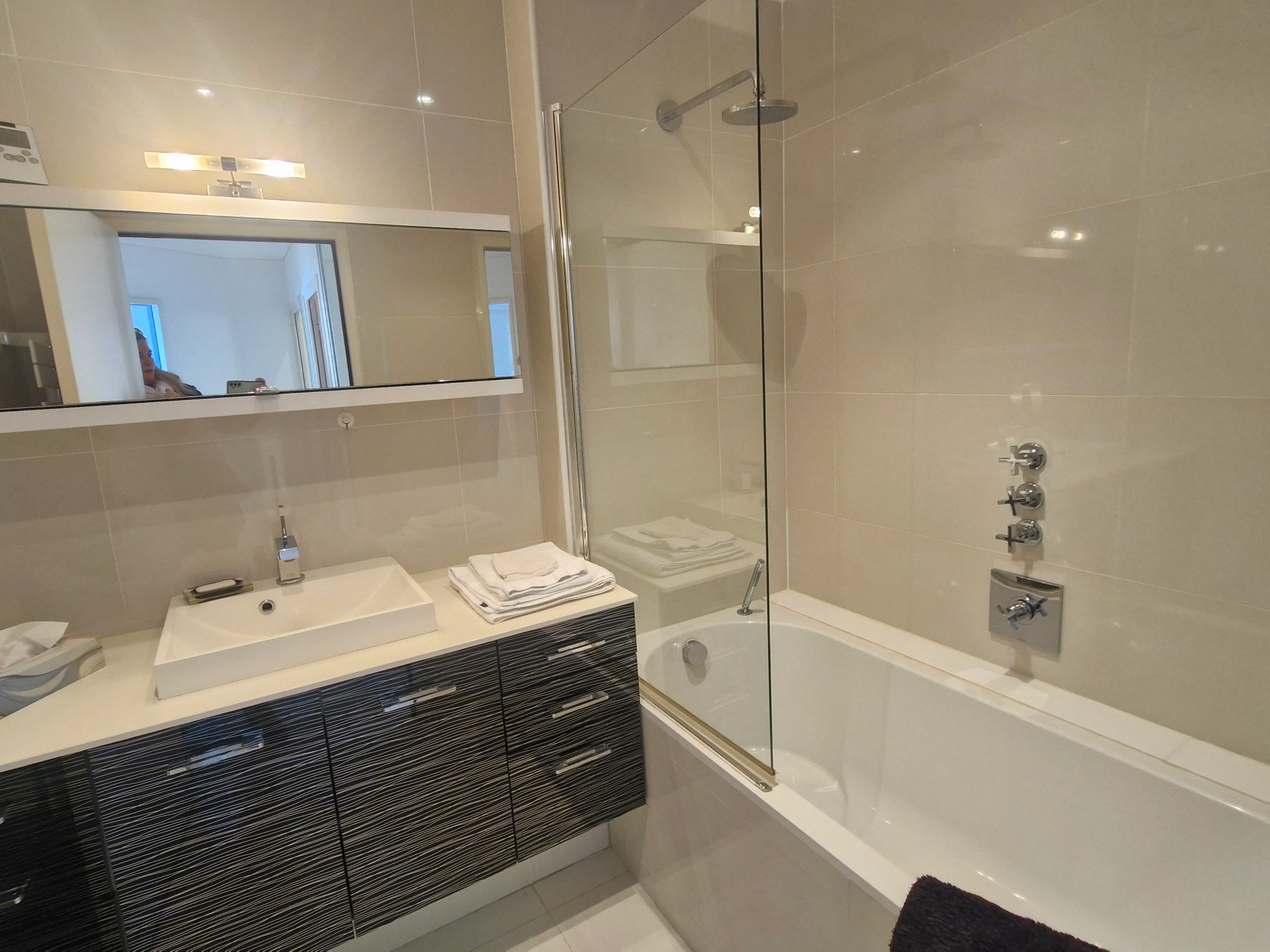 - Bathroom with towel dryer.