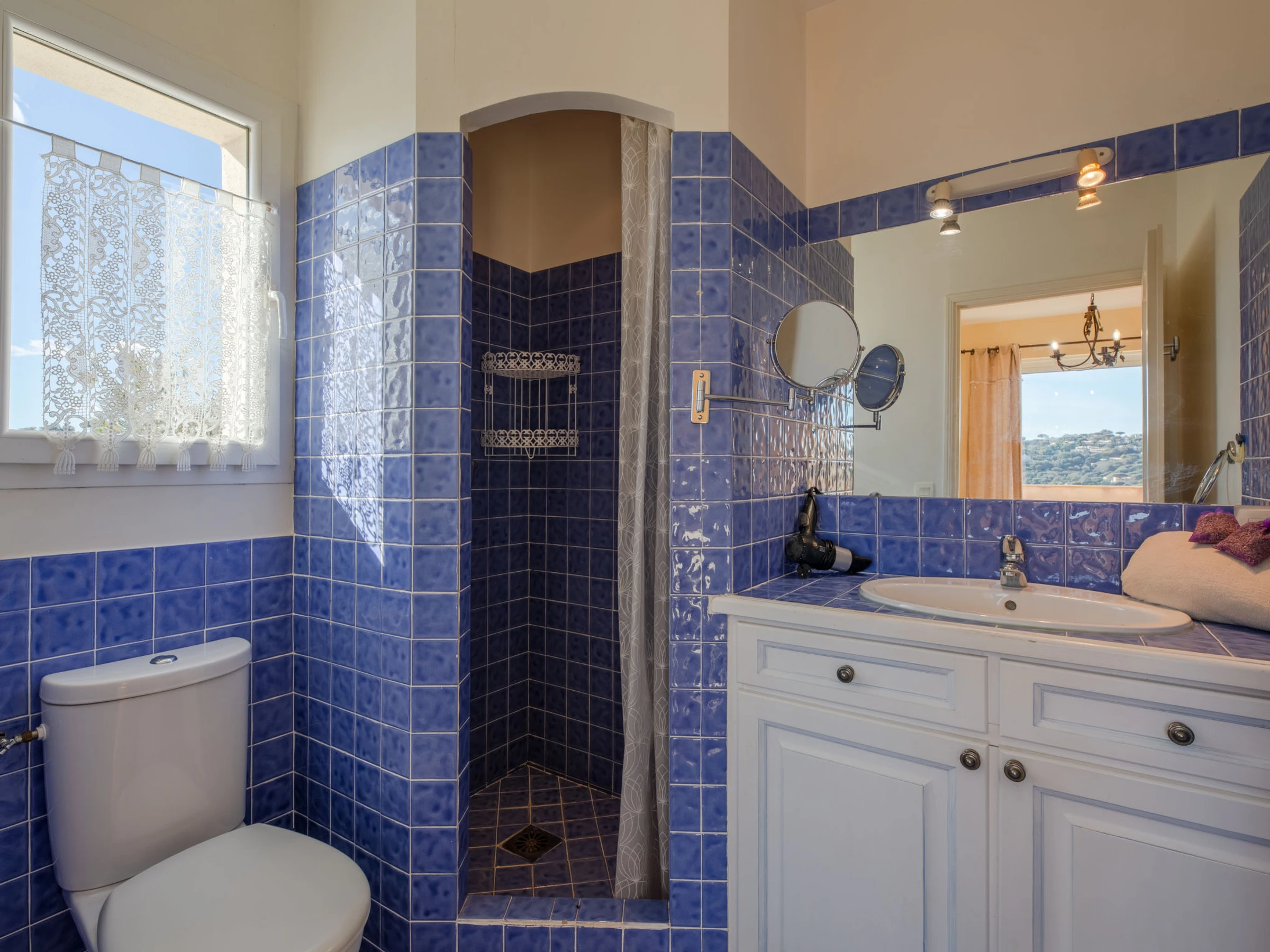 Villa "La Figuière". In the district of Domaine du Golf 3.5 km from the centre of Sainte Maxime, on a slope, residential area (villas), 2.5 km from the sea, 2.5 km from the beach. Private: property 1'800 m2 (fenced), terraced garden with wildlife garden, swimming pool (9 x 3 m, depth 100 - 180 cm, seasonal availability: [hidden] - [hidden] with internal staircase. Boules. Motor access to the house. (5 steps). Parking (for 2 cars) on the premises, single garage. Shop 3.5 km, bus stop 600 m, sandy beach "La Nartelle" 2.5 km, thermal baths "Thalasso Spa Les Issambres" 5 km. Sports harbour 3 km, golf course (18 hole) 2 km, cycle lane 1 km. Nearby attractions: Aqualand waterpark 6 km, Navette / shuttle boat St-Tropez 15min 3 km, Saint-Tropez/Ramatuelle 17 km, Port Grimaud 10 km. Hiking paths: Massif des Maures 10 km, Massif de l'Esterel 25 km. Please note: car recommended. The owner does not accept any youth groups. The keys‘ handover takes place by the agency in Sainte-Maxime, 3 km.