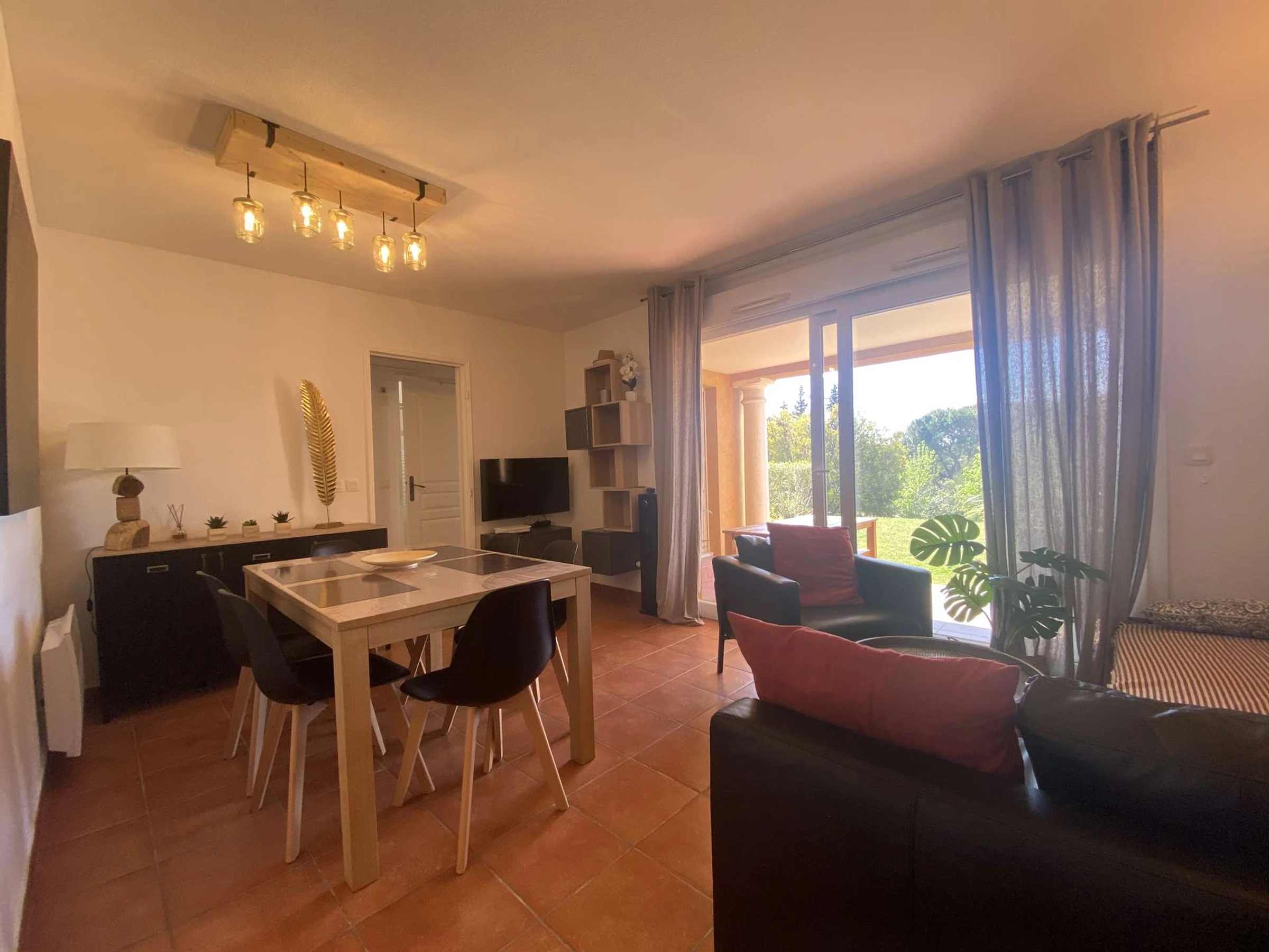 The advantages of this rental on the French Riviera: quiet, sunny, beautifully decorated, a paddling pool, a swimming pool, private parking, peace and quiet, and green spaces.