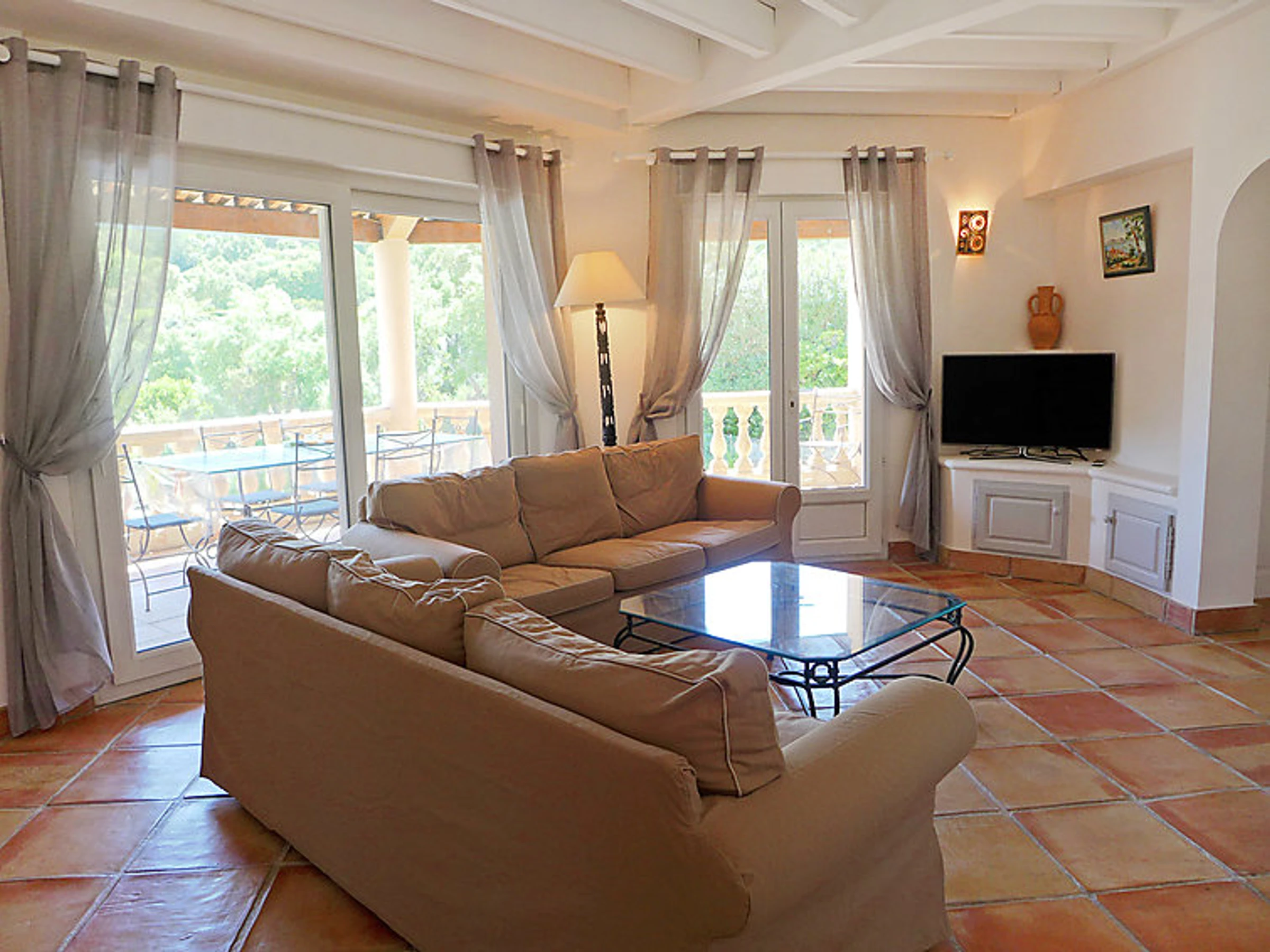 Beautiful villa "Val Orea", terraced. In the district of de la Croisette, on the outskirts, 2.5 km from the centre of Sainte Maxime, in a quiet position on top of a hill, in the residential district, 900 m from the sea, 900 m from the beach. Private: property 750 m2, swimming pool (10 x 5 m, depth 120 - 230 cm,[hidden].). Table tennis. Shop 1.5 km, grocery 1.5 km.