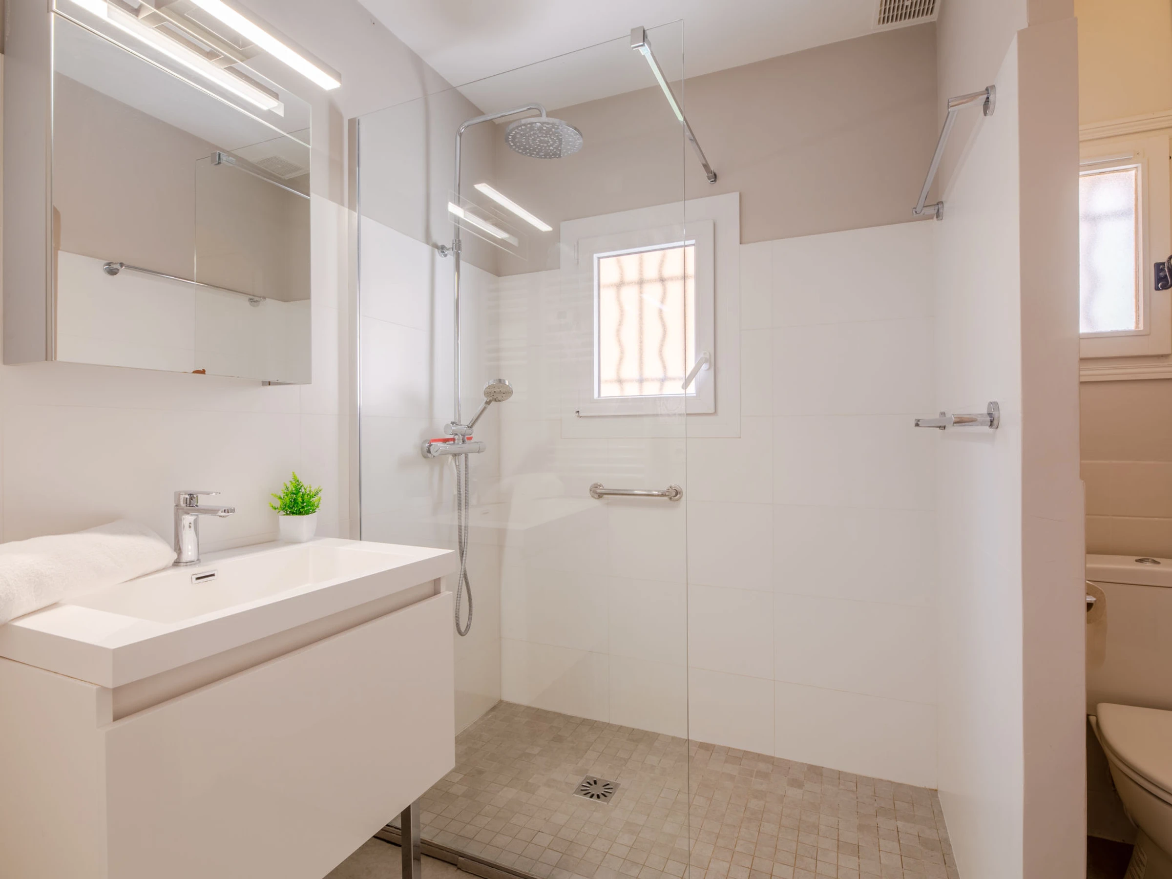 Residence "Clos Etienne", 2 storeys. In the resort 250 m from the centre of Ste Maxime, in a quiet position, 500 m from the sea, 500 m from the beach. Shop 200 m, supermarket, shopping centre 300 m, restaurant 200 m, bakery 300 m, bus stop 400 m, railway station "Saint-Raphael TGV" 20 km, sandy beach "Centre ville" 500 m, thermal baths "Thalasso Les Issambres" 7 km. Sports harbour 1 km, golf course (18 hole) 4 km, tennis 2 km. Nearby attractions: Aqualand water park 4 km, Azur Park attractions 16 km, Saint-Tropez/Ramatuelle 16 km, Port-Grimaud 12 km, Gorges du Verdon 95 km, Navette / shuttle boat St-Tropez 15min 1 km. Hiking paths: Massif des Maures 5 km, Massif de l'Esterel 38 km. Please note: residence with electric gates. The keys‘ handover takes place by the agency in Sainte-Maxime. Airfield 70 km from the property.