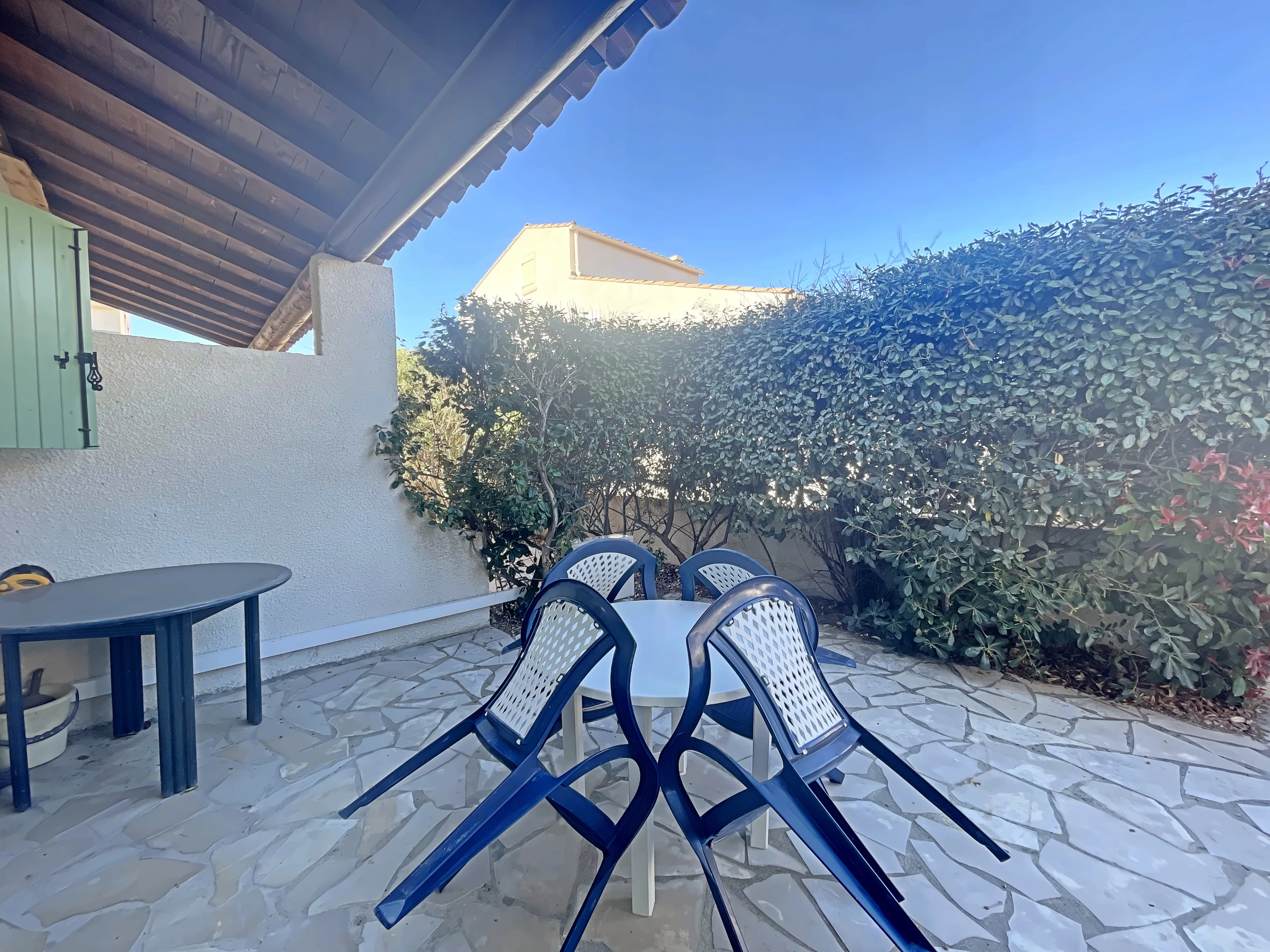 In Residence with collective swimming pool (open from June 1 to September 30). Apartment for 4 people on the ground floor with courtyard and private parking, including a living-dining room with pull-out sofa (2 90x200 beds), equipped kitchen area with vitro hob , dishwasher, washing machine, oven, microwave, Tassimo coffee maker, toaster, kettle, fridge with freezer compartment, reversible air conditioning in the living room, one bedroom with 140 cm bed, bathroom, toilet.