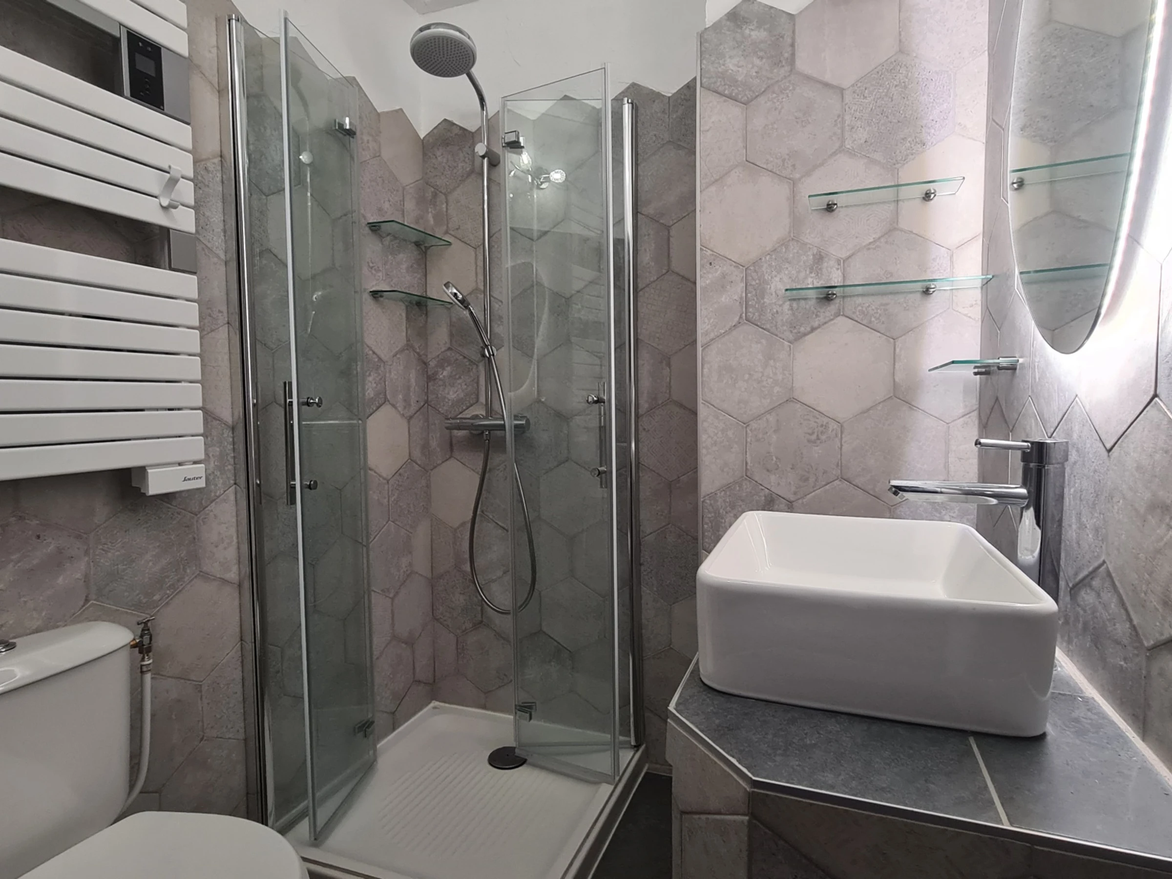 Résidence les hameaux de [hidden] apartment for 8 people located 800 m from the town center in a residence with collective swimming pool (open from June 1 to September 30) including a terrace, a living room, an equipped kitchen (dishwasher, traditional oven, microwave, toaster, espresso coffee maker, refrigerator with freezer compartment, etc.), a bathroom with washing machine, WC. Upstairs, a bedroom with a 160 cm bed and a second bedroom with a 140 cm bed and on the other side 2 bedrooms with 140 cm beds and bathroom with toilet.