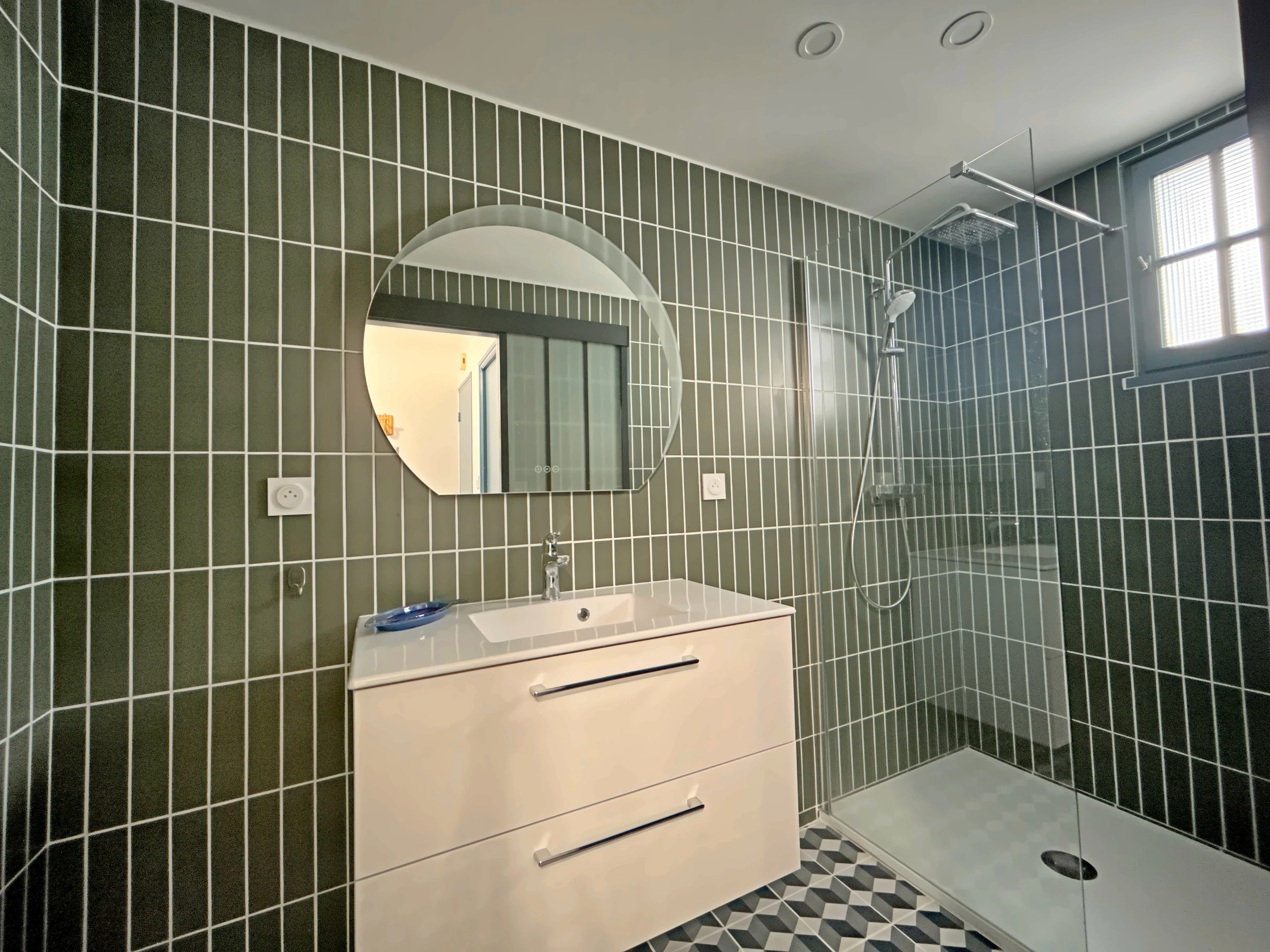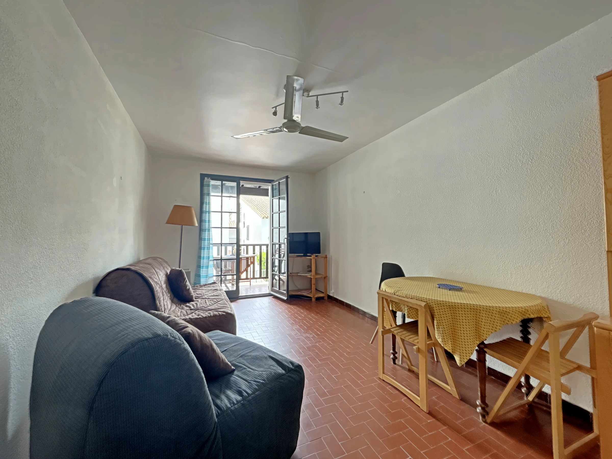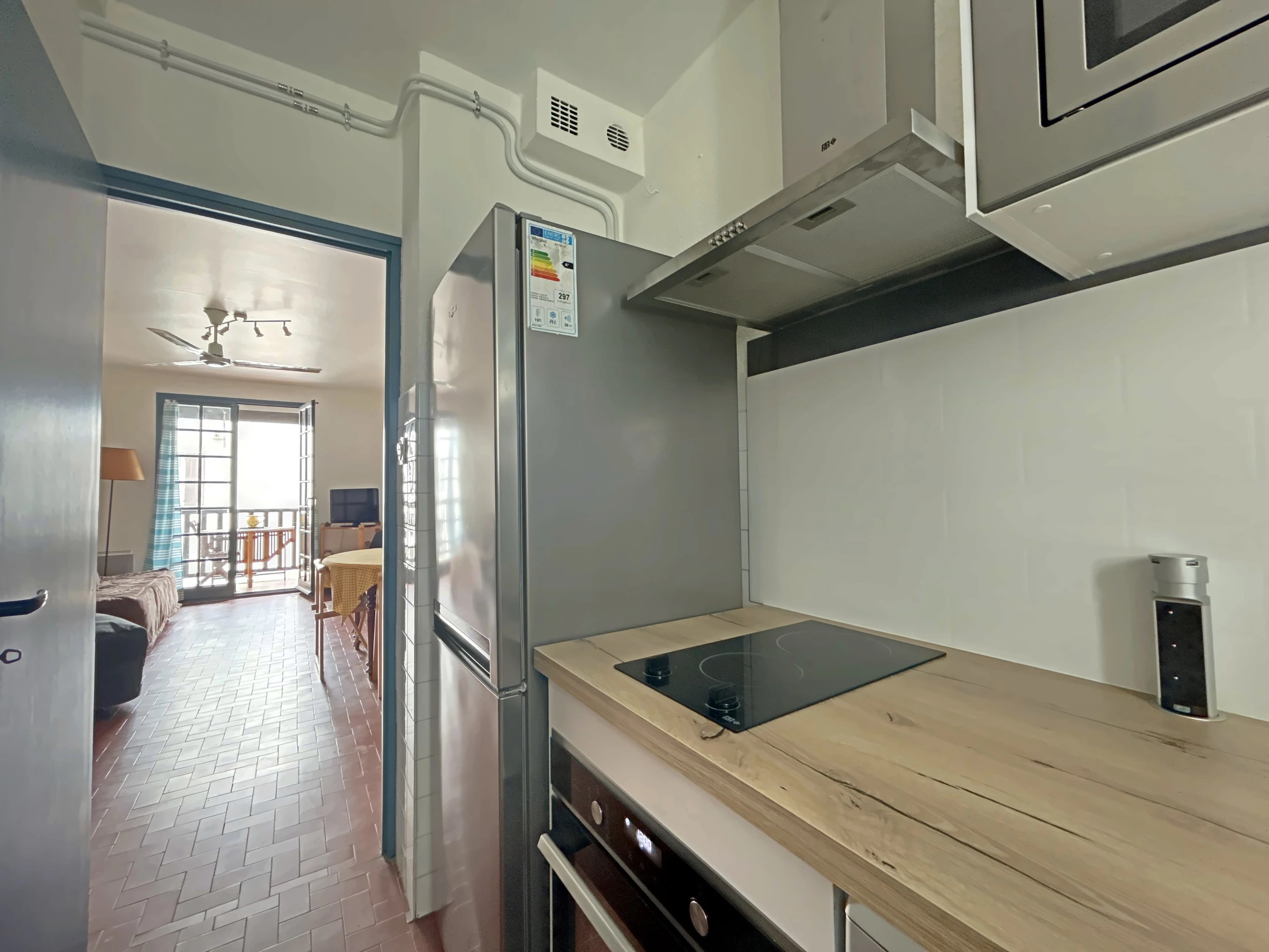 Located near the center of the village on the 1st floor, this studio consists of an entrance hall, magnificent bathroom, toilet, living room with 140 cm BZ convertible sofa for 2 people + 1 BZ fireside chair for one person, balcony , separate kitchen equipped with washing machine, induction hob, fridge with freezer, microwave, filter coffee maker, toaster kettle, traditional oven.