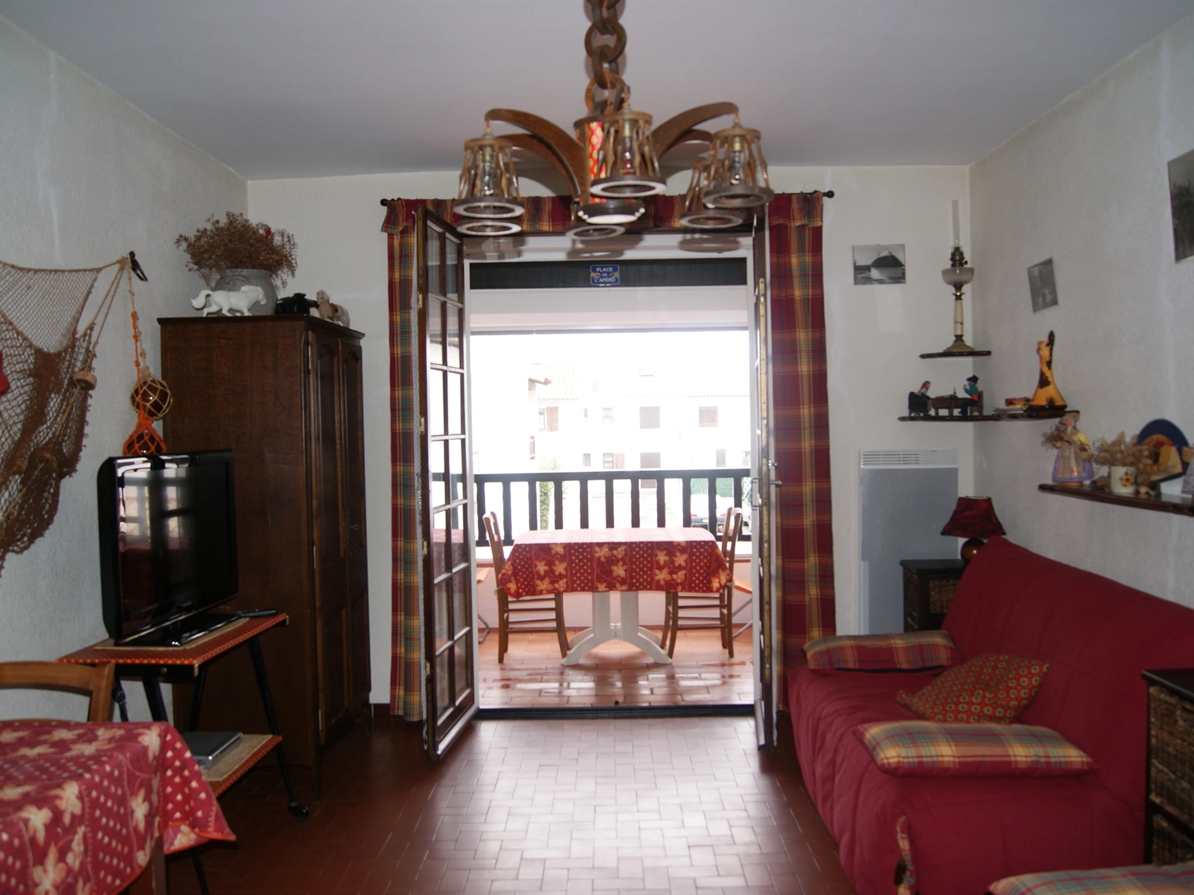 A STUDIO FOR 4 PEOPLE RESIDENCE LES IMPERIALS III. Located on the 1st floor in a condominium 500 m from the sea, this studio consists of an entrance with storage cupboard, bathroom with toilet and washing machine, main room with 2 140 cm BZ type convertible sofas, terrace of 7 m² where you can have lunch which can be closed by a roller shutter, a separate kitchen with induction hob, traditional oven, coffee maker, microwave, refrigerator with freezer compartment.