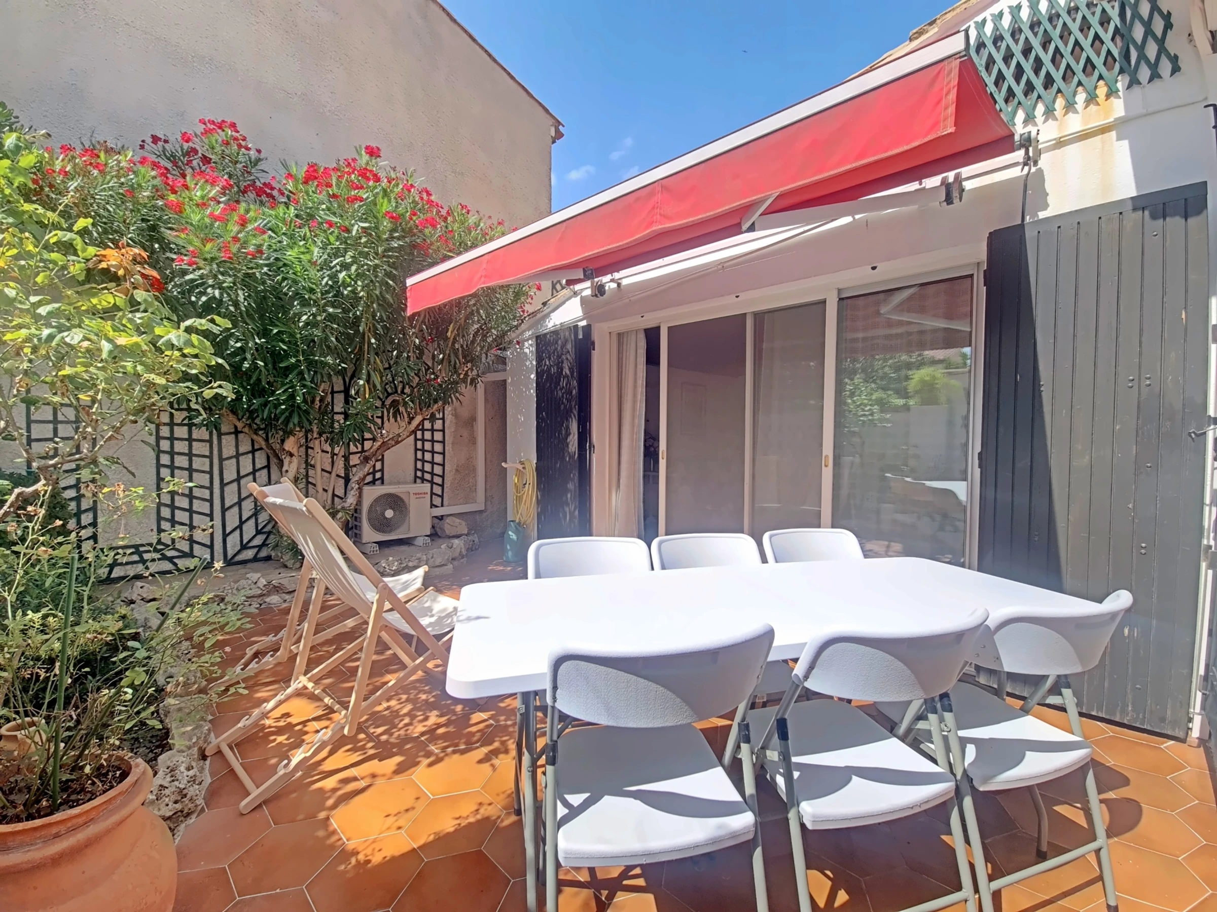 13 rue François Médina, an apartment on the ground floor with a common entrance, comprising an entrance hall, shower room with washing machine, wc, a windowless bedroom with air-conditioned double bed, a bedroom with air-conditioned double bed, living room, eat with open kitchen, electric gas stove, fridge with freezer, Nespresso coffee maker, air conditioning, a private courtyard. Public parking nearby.