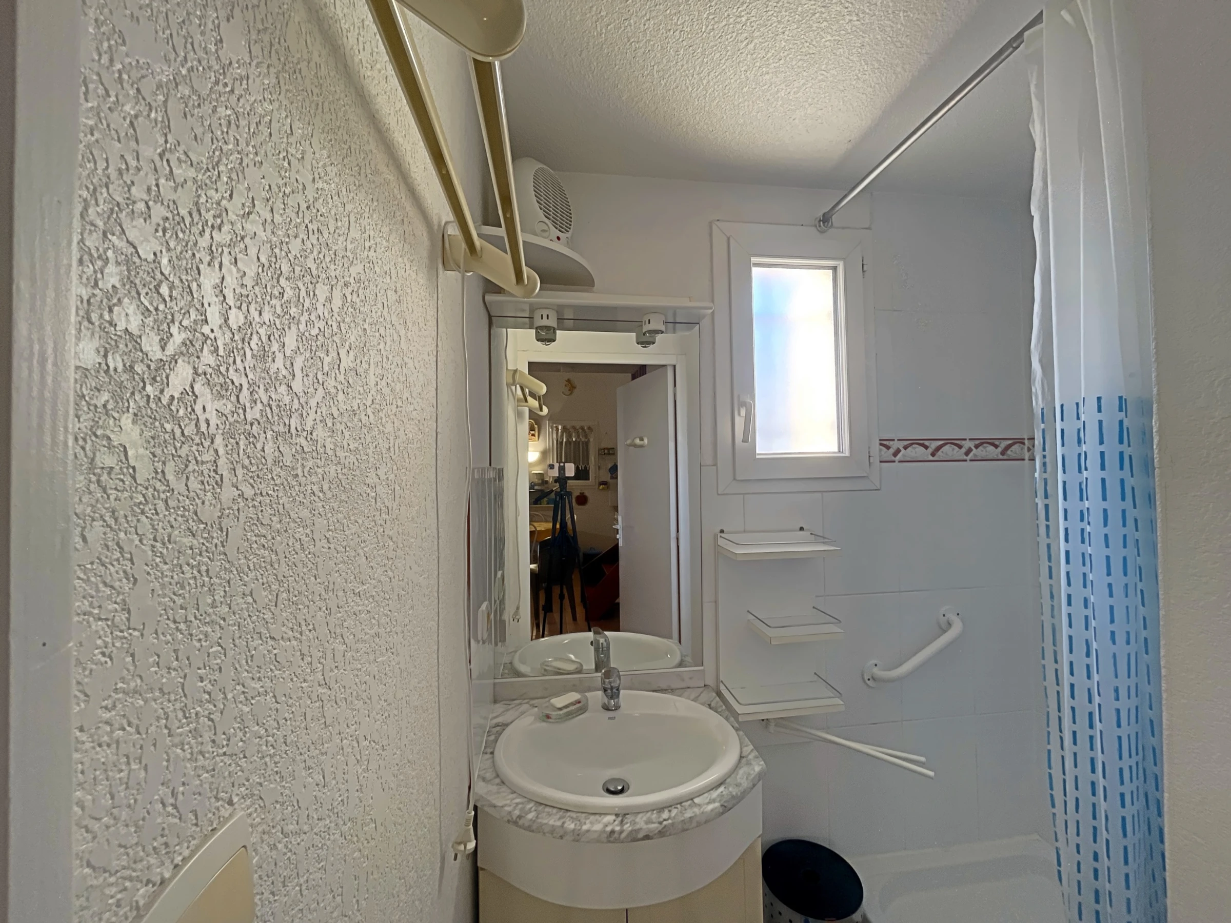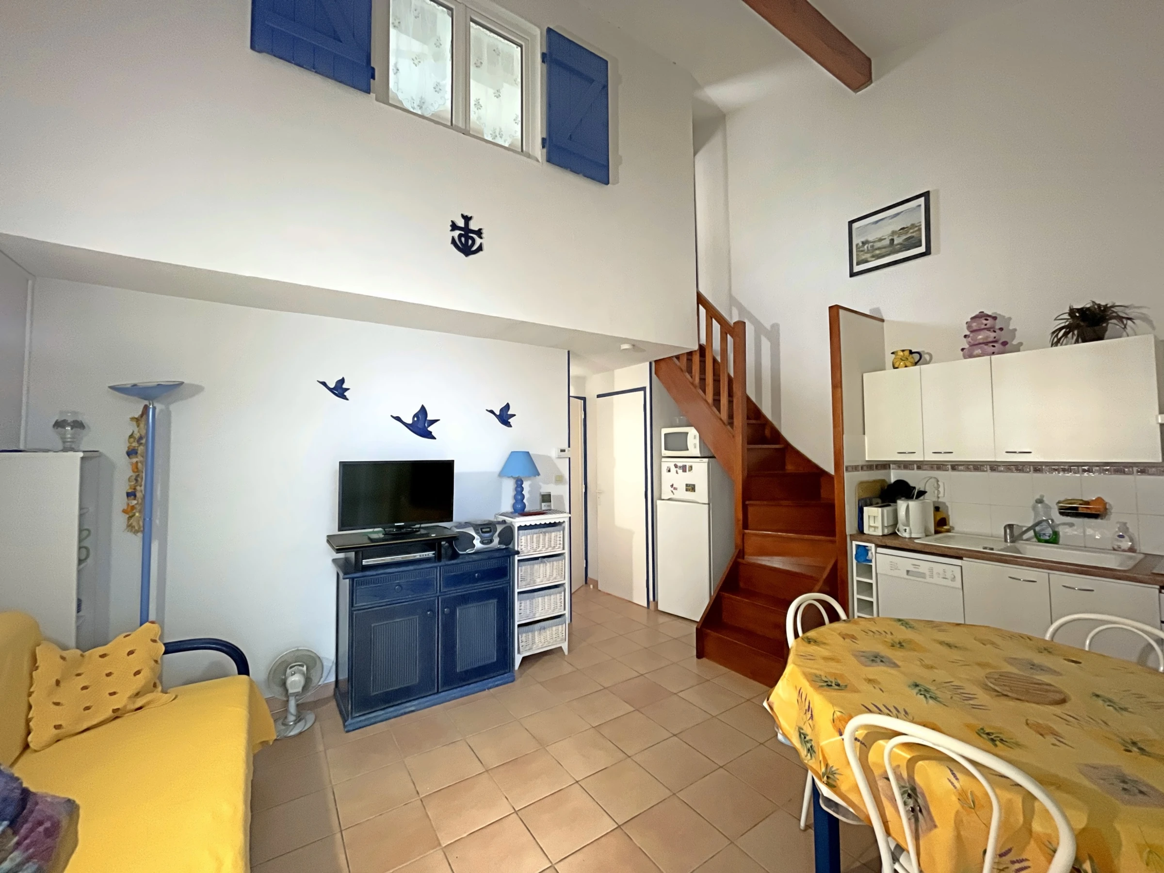 In a residence with swimming pool (open from June 1 to September 30) located 700 m from the sea and shops on the Route de Cacharel, small terraced house comprising a living room with kitchenette, a bedroom with 140 cm bed, bathroom water, toilet, an upstairs bedroom with a 160 cm bed, a courtyard.