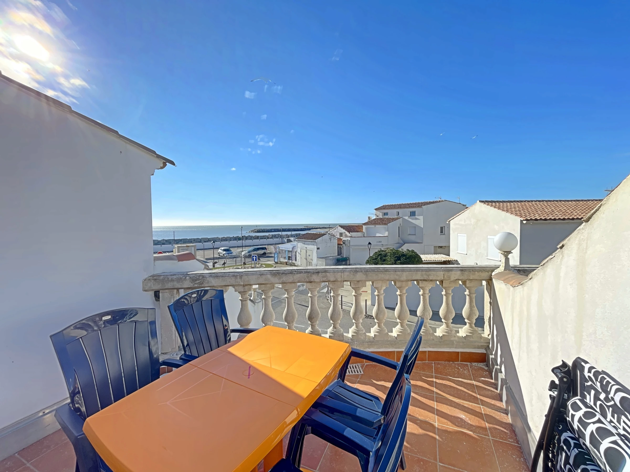 Located on the 1st floor of a small residence rue Camille Pelletan, this apartment consists of a shower room with WC, living room with kitchen area opening onto a south-west facing terrace with sea view, duplex a bedroom with bed for 2 people.