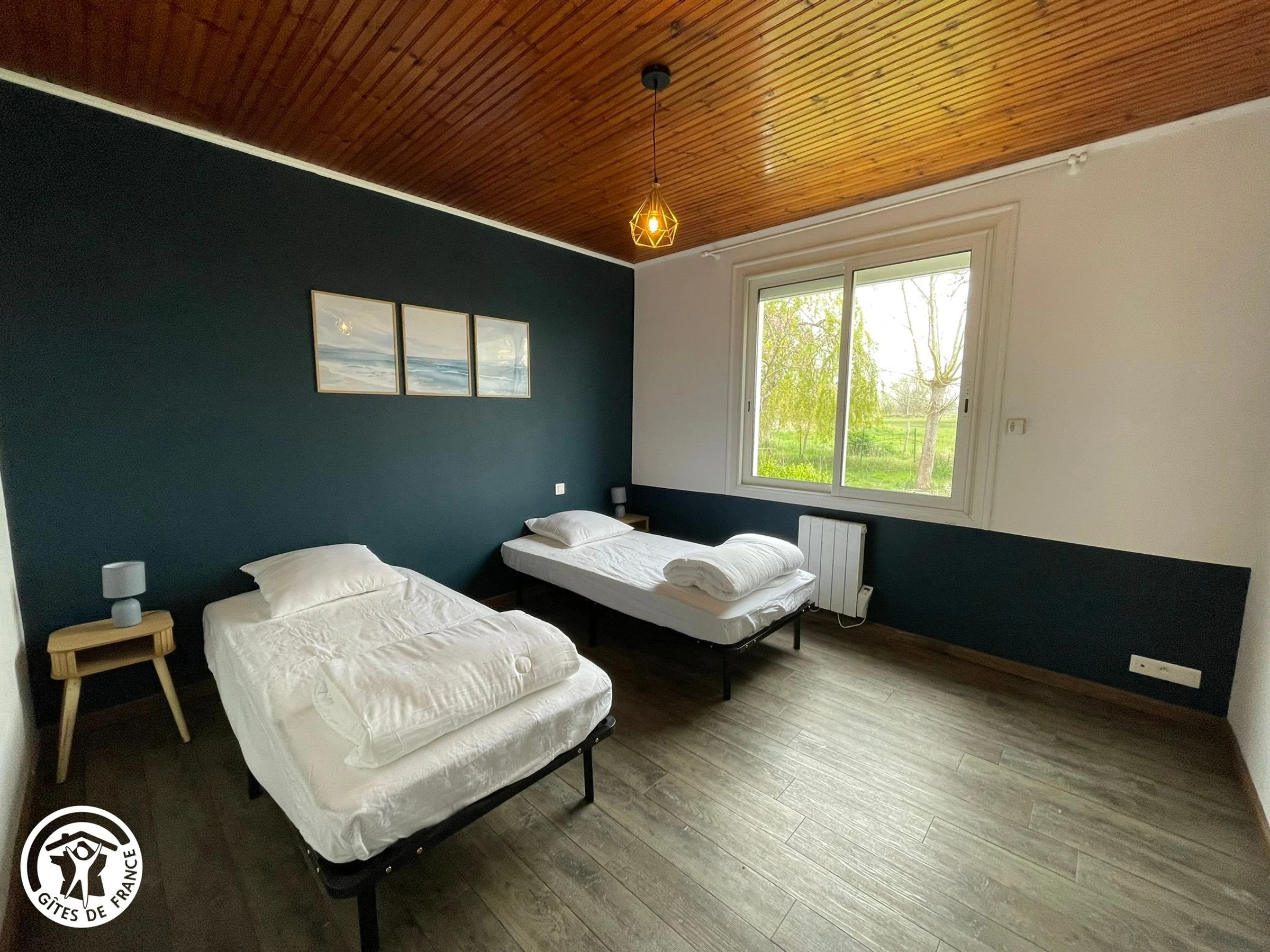 Immerse yourself in the heart of the Breton Vendée Marshes during your stay in this cottage surrounded by streams, located 3 km from the village of Sallertaine, labeled "Ville & Métiers d’Art". You will have the opportunity to visit the Rairé windmill (2.3 km) as well as discover the beaches of Saint-Jean-de-Monts (13 km). This single-story house (access by 1 step) consists of a living room/lounge/kitchen with wood stove, three bedrooms, two of which are equipped with a 160 cm bed and one with 2 90 cm beds, a bathroom, a toilet and a storeroom. Outside, you will enjoy an enclosed plot of land at the back of the house (garden furniture, barbecue) and a private covered terrace at the front of the house (picnic table, stone barbecue). You can park your car under a wooden shelter reserved for you. This accommodation is not equipped with internet access.