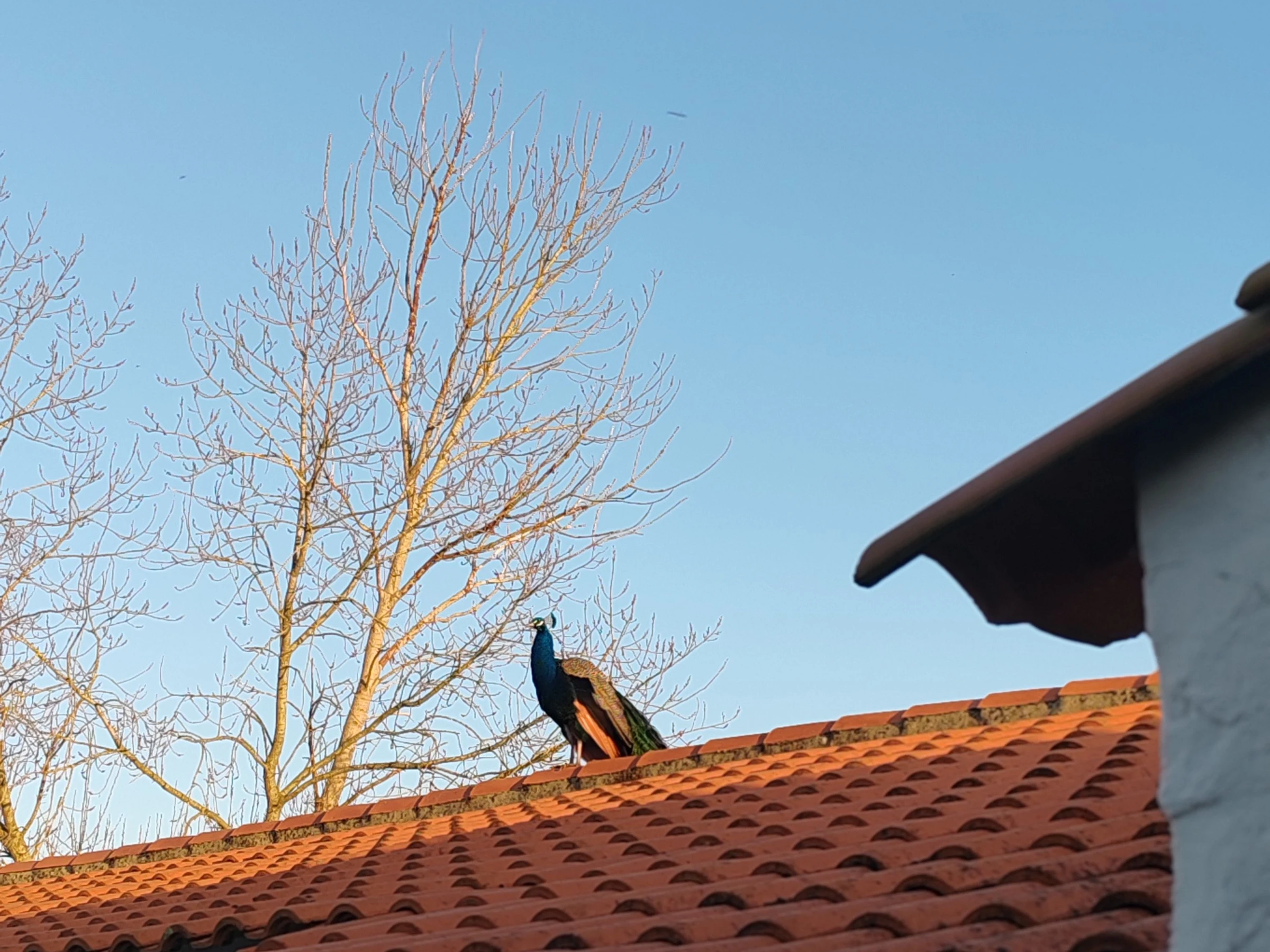Access to the cottage is via a path. The accommodation is located in the immediate vicinity of the owners' home. You may encounter their animals in the courtyard in front of the house entrance: peacocks, dogs, and cats. Two sheep are also kept in a nearby enclosed area.