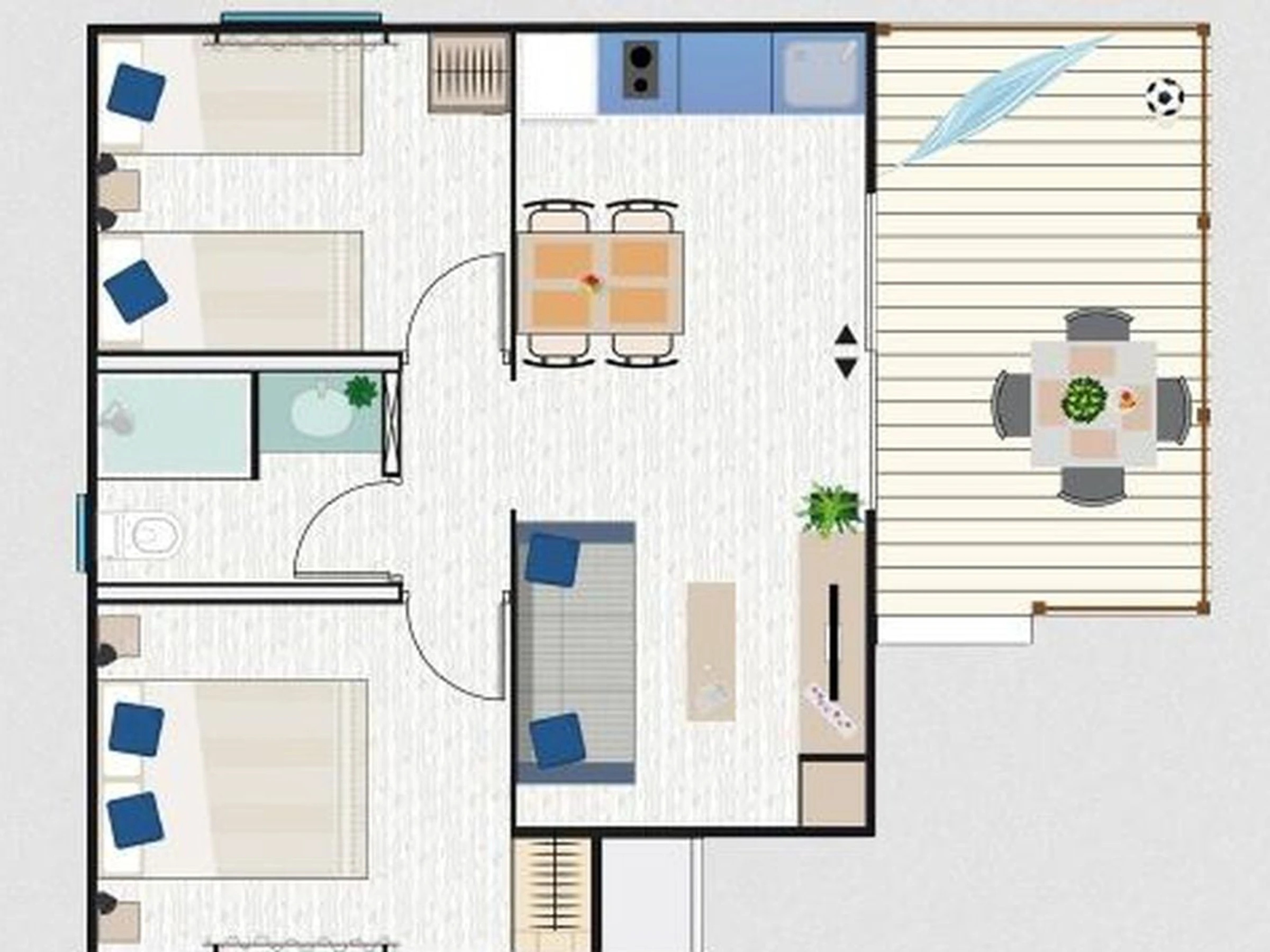- 3 rooms including 2 bedrooms