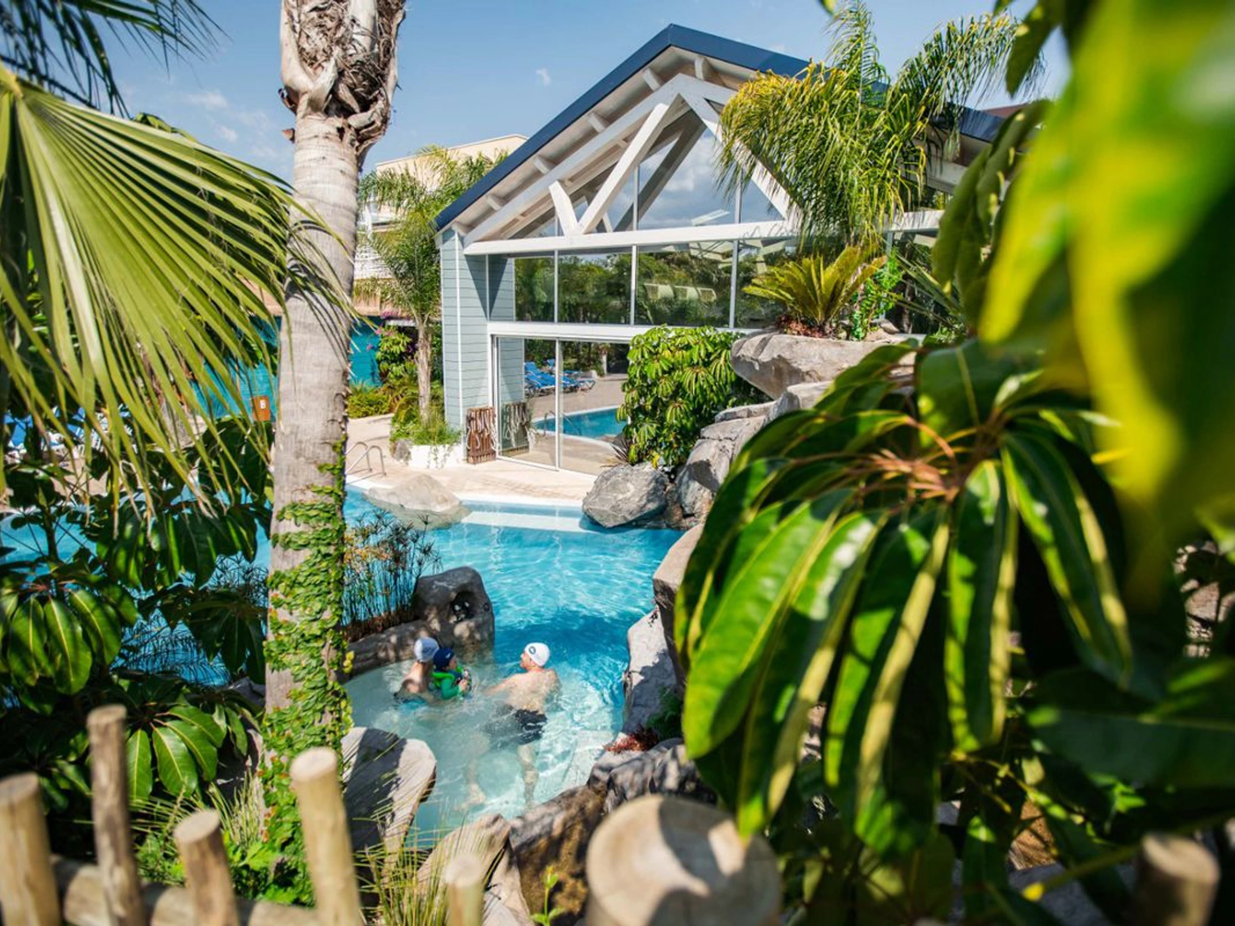 - Open from April to November: 1100m² aquatic area comprising 3 swimming pools with jacuzzis, beach area, mini-slides, waterfalls... Paddling pool with water circuits, slide for toddlers.