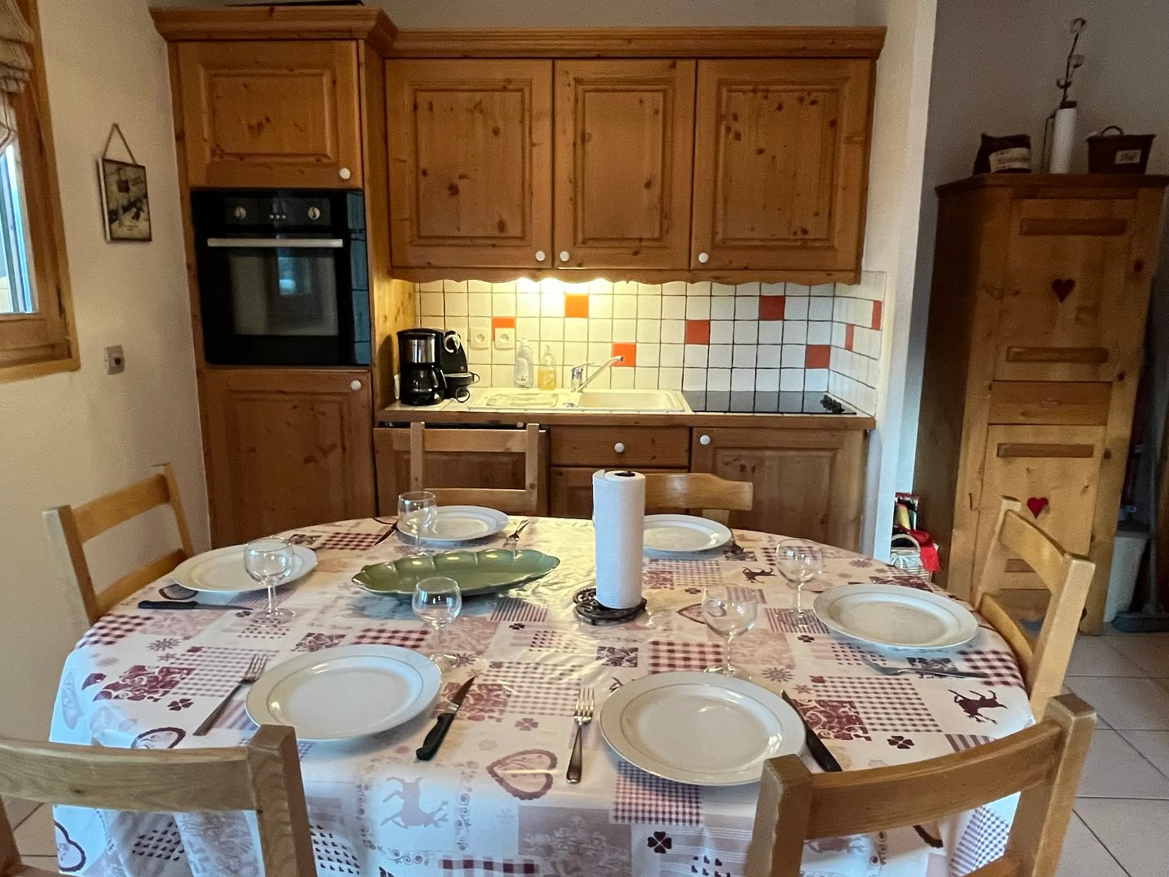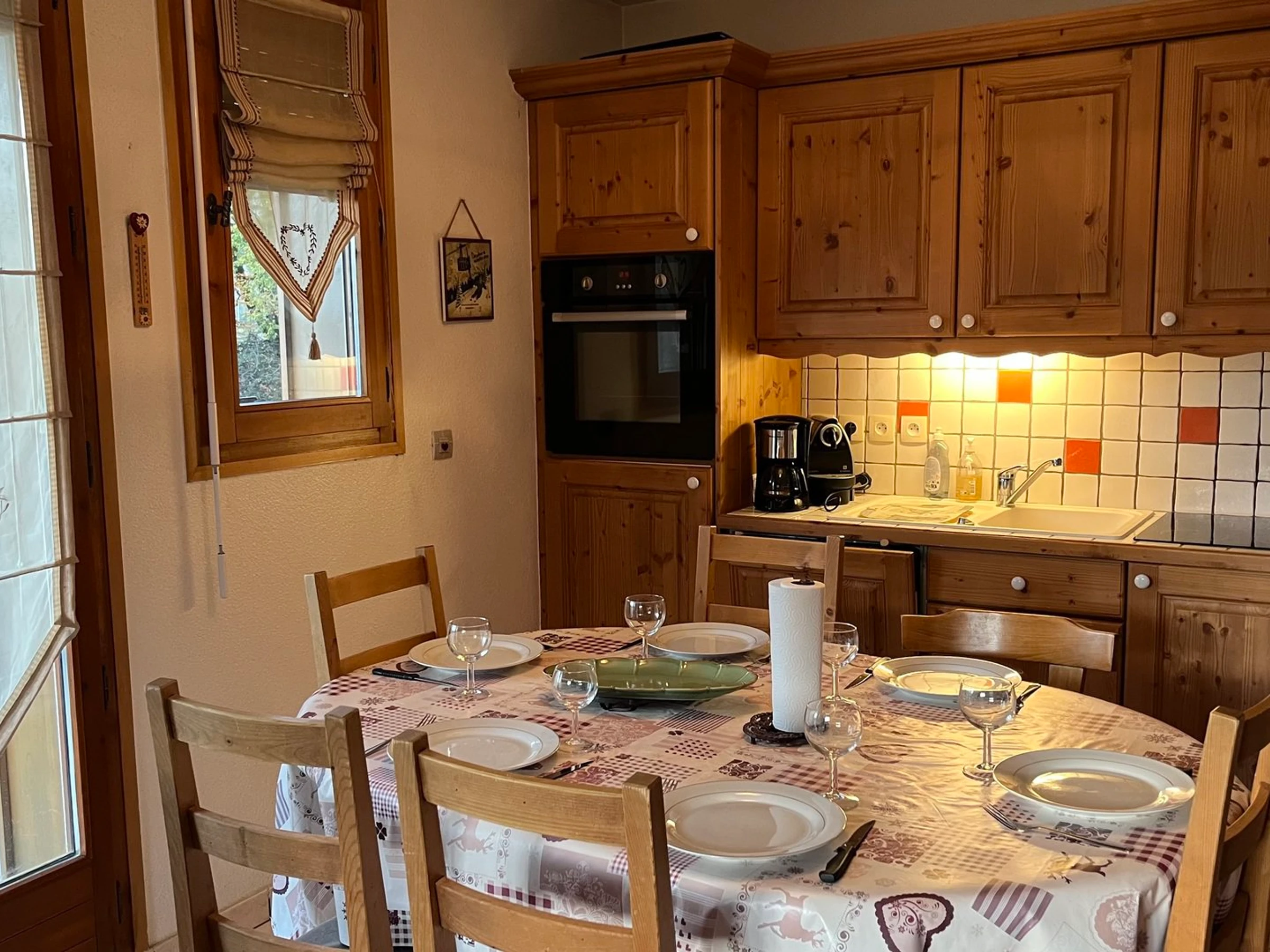 - Kitchenette (1 window, west-facing) equipped with: dishwasher, oven, extractor hood, refrigerator, ceramic hob, table, washing machine, filter coffee maker and Nespresso machine
