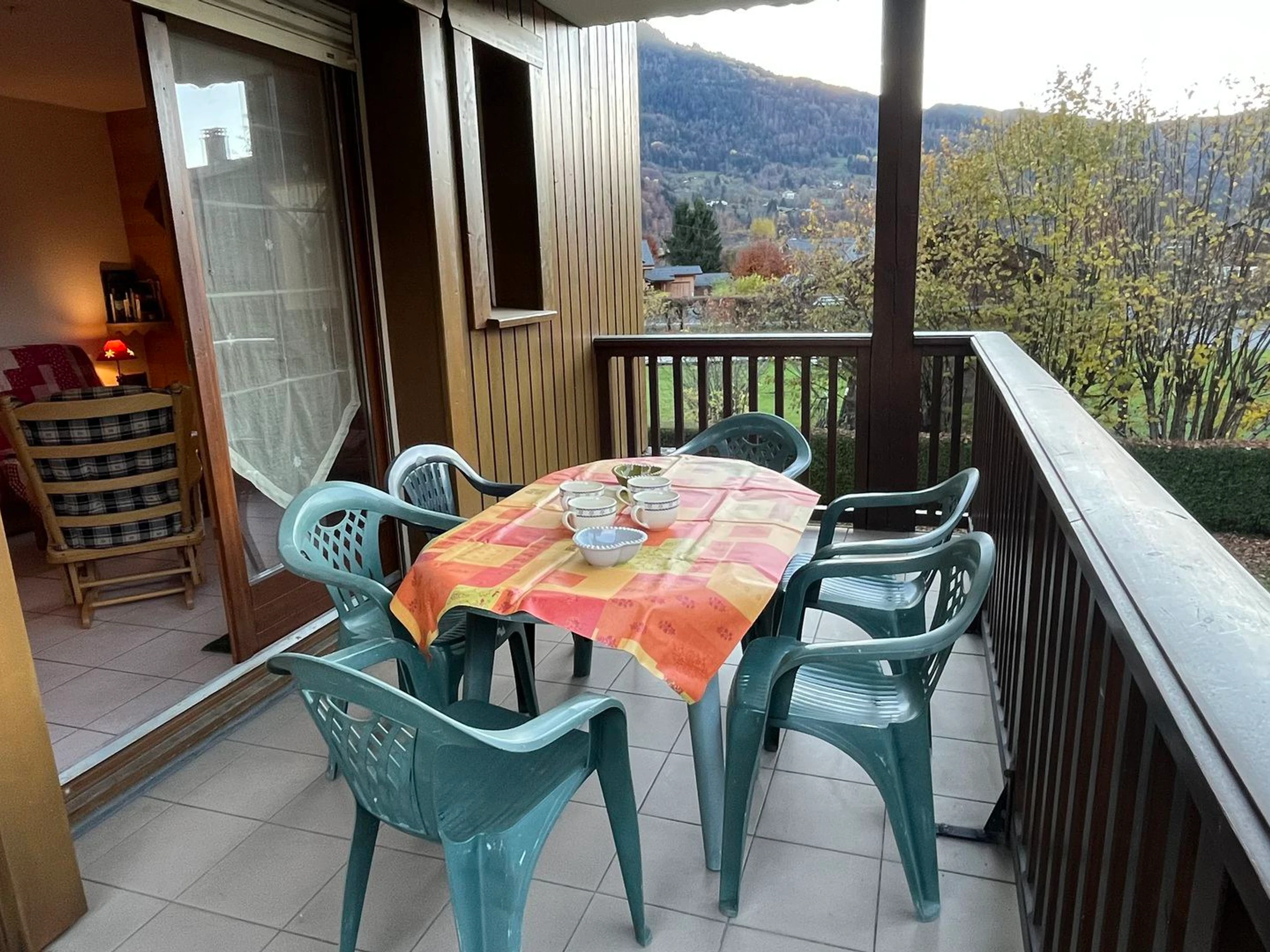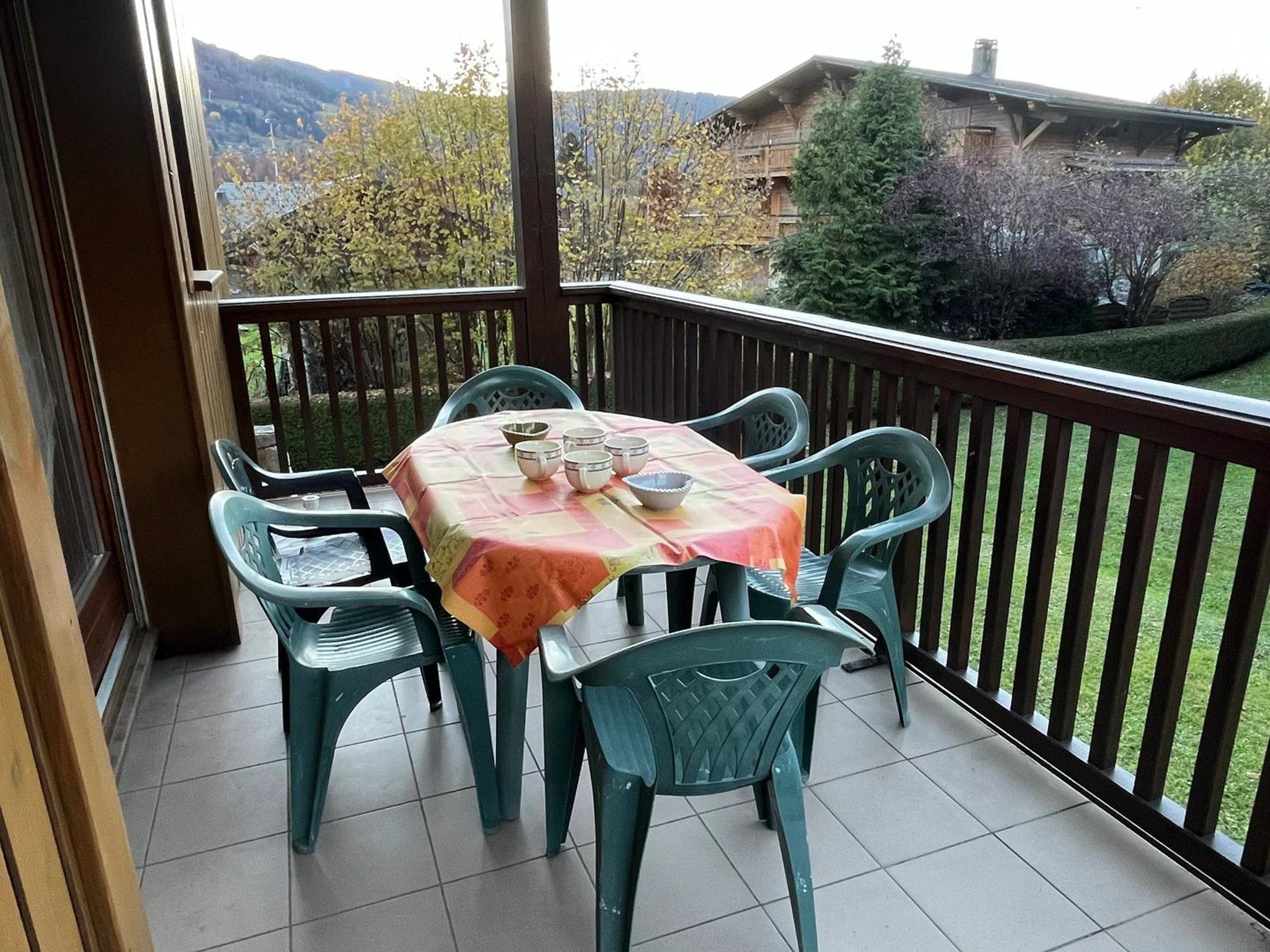 - Balcony (9.67 m², west-facing, mountain views) with garden furniture