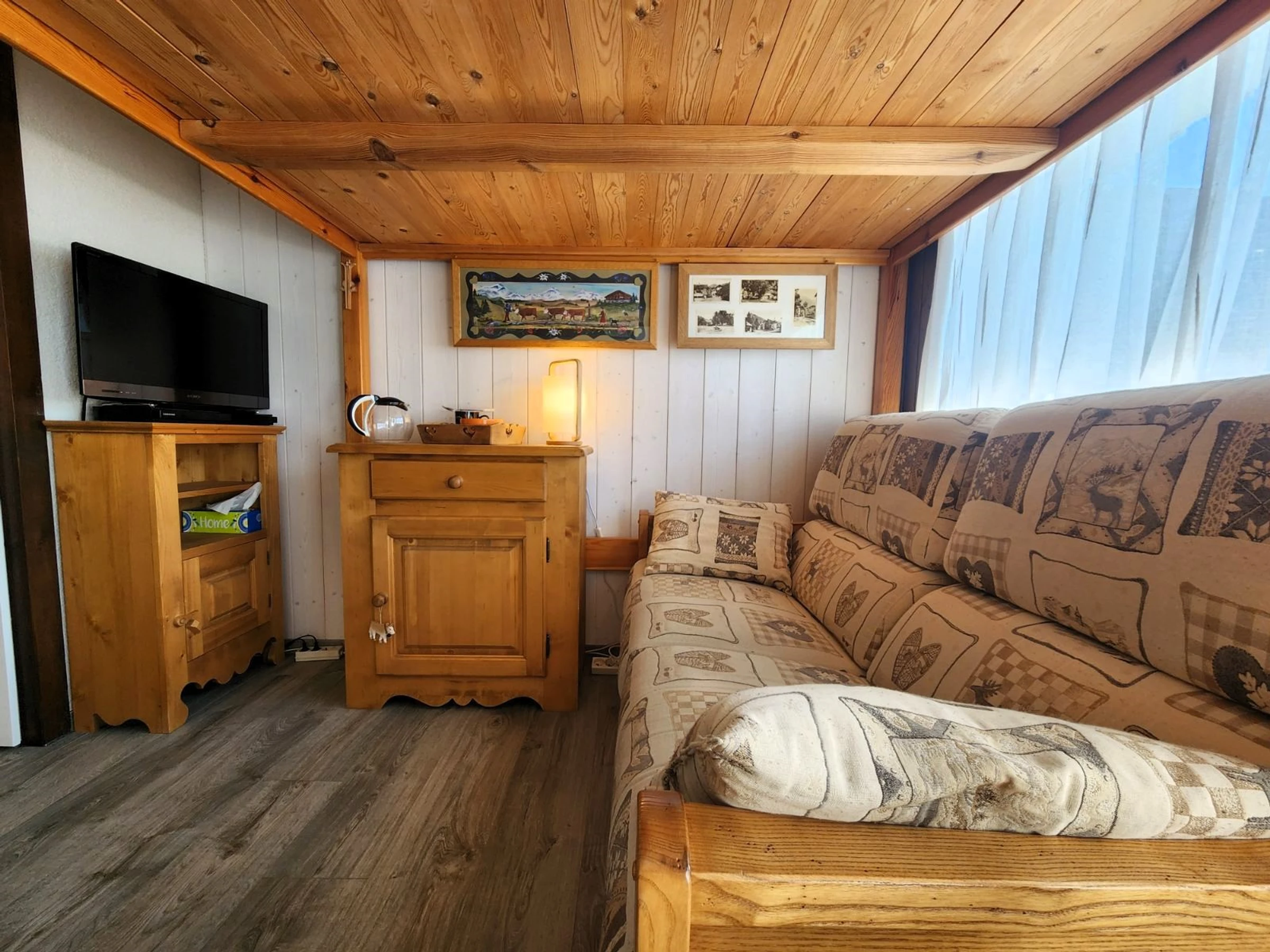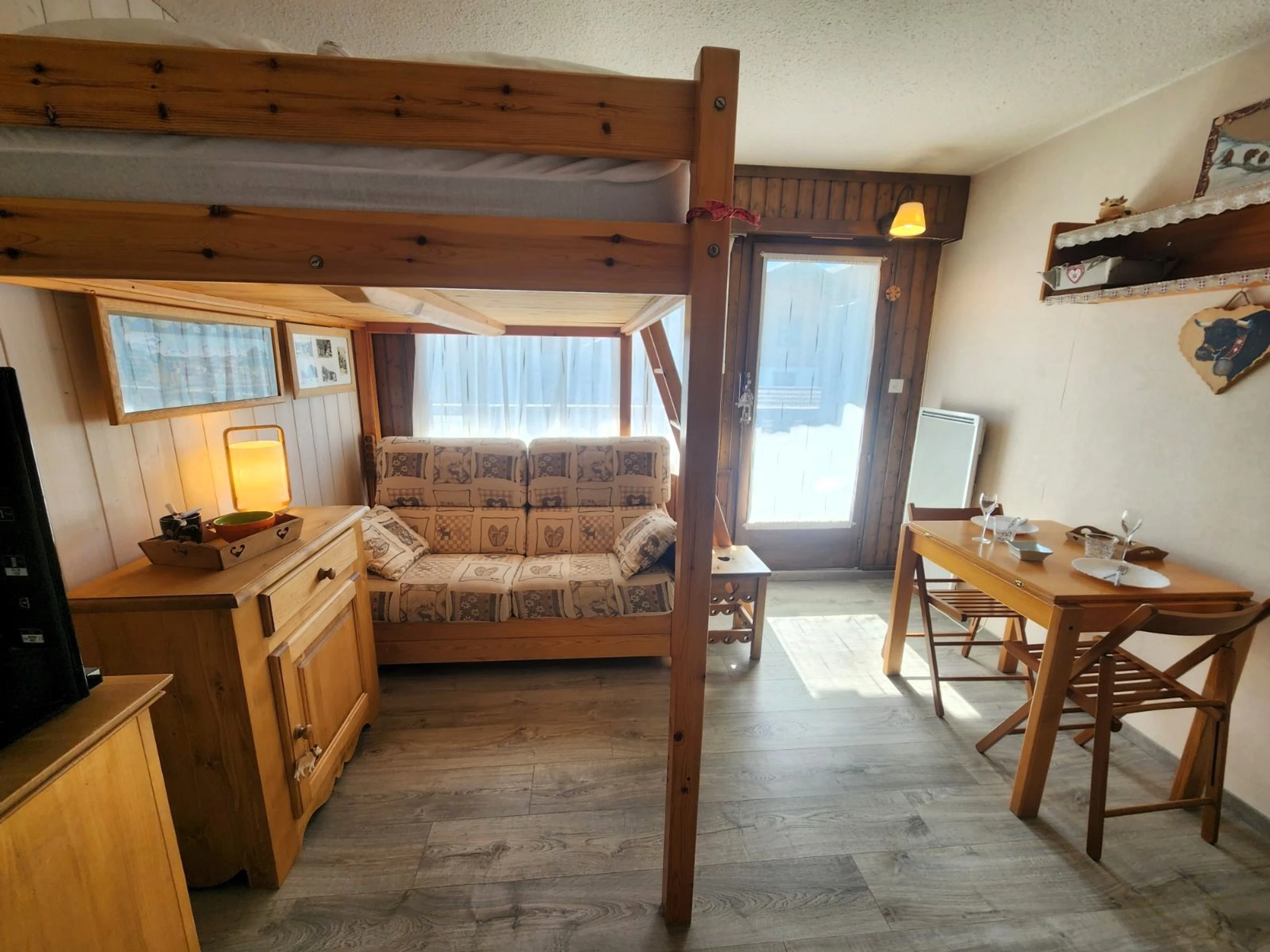 - A living room with kitchenette, renovated with oven, microwave, induction hob, raclette machine, refrigerator, filter coffee maker, kettle, TV, sofa, double loft bed (140x190)