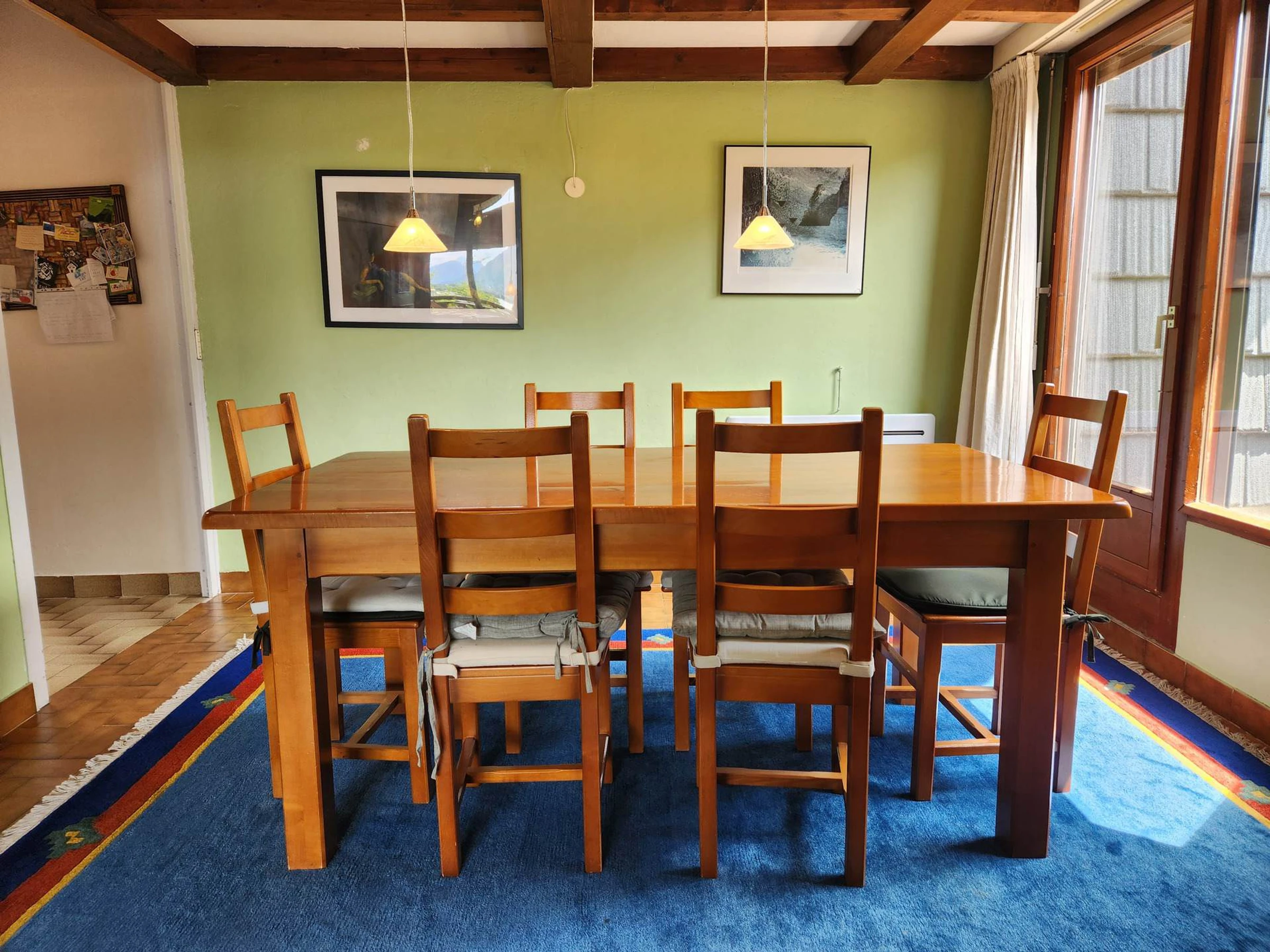 *a dining room equipped with a cupboard, with access to the 1st south-facing balcony, garden furniture;