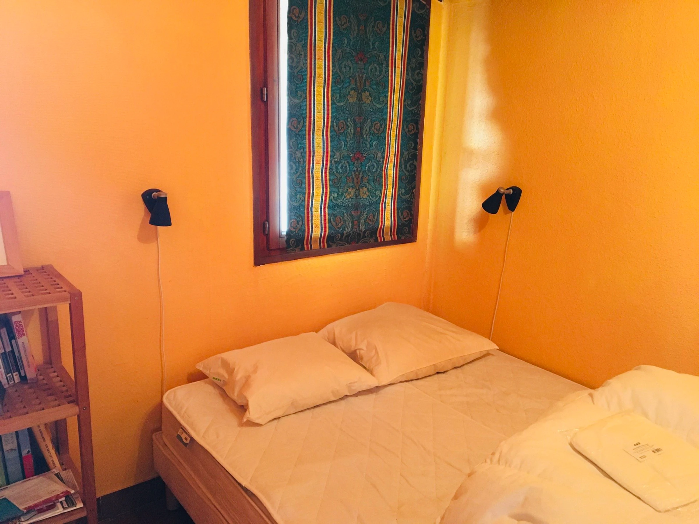 - A Mezzanine - access by ladder - very low ceiling (9.22m2 on the ground): double bed in 140x190