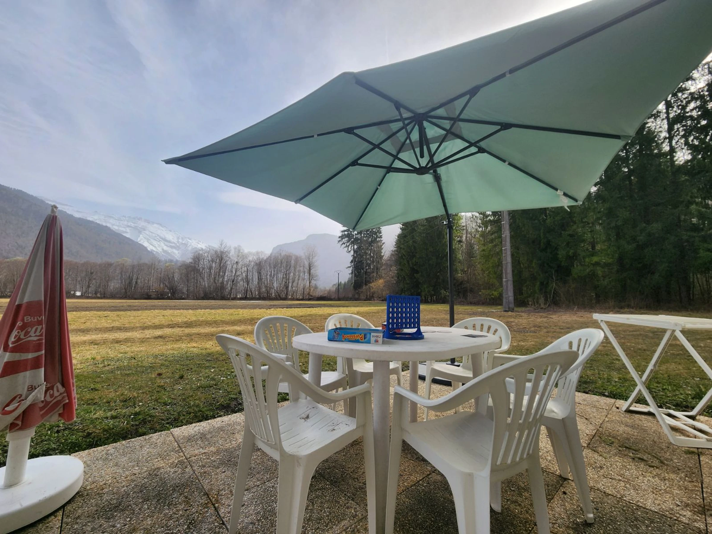 - A terrace with furniture, facing East overlooking the plain and mountain