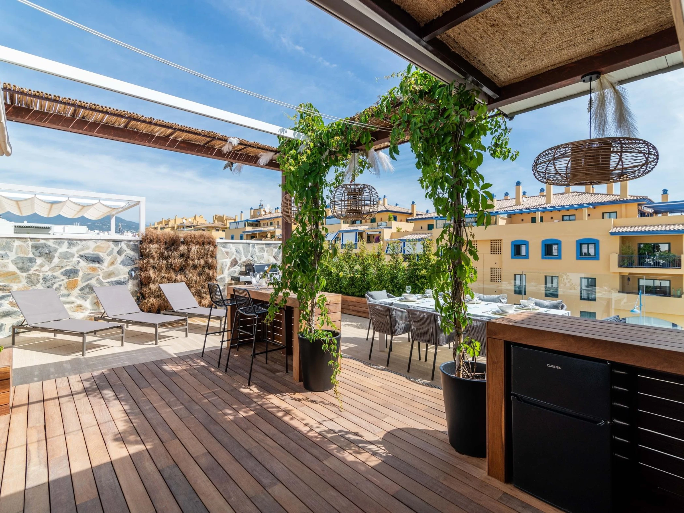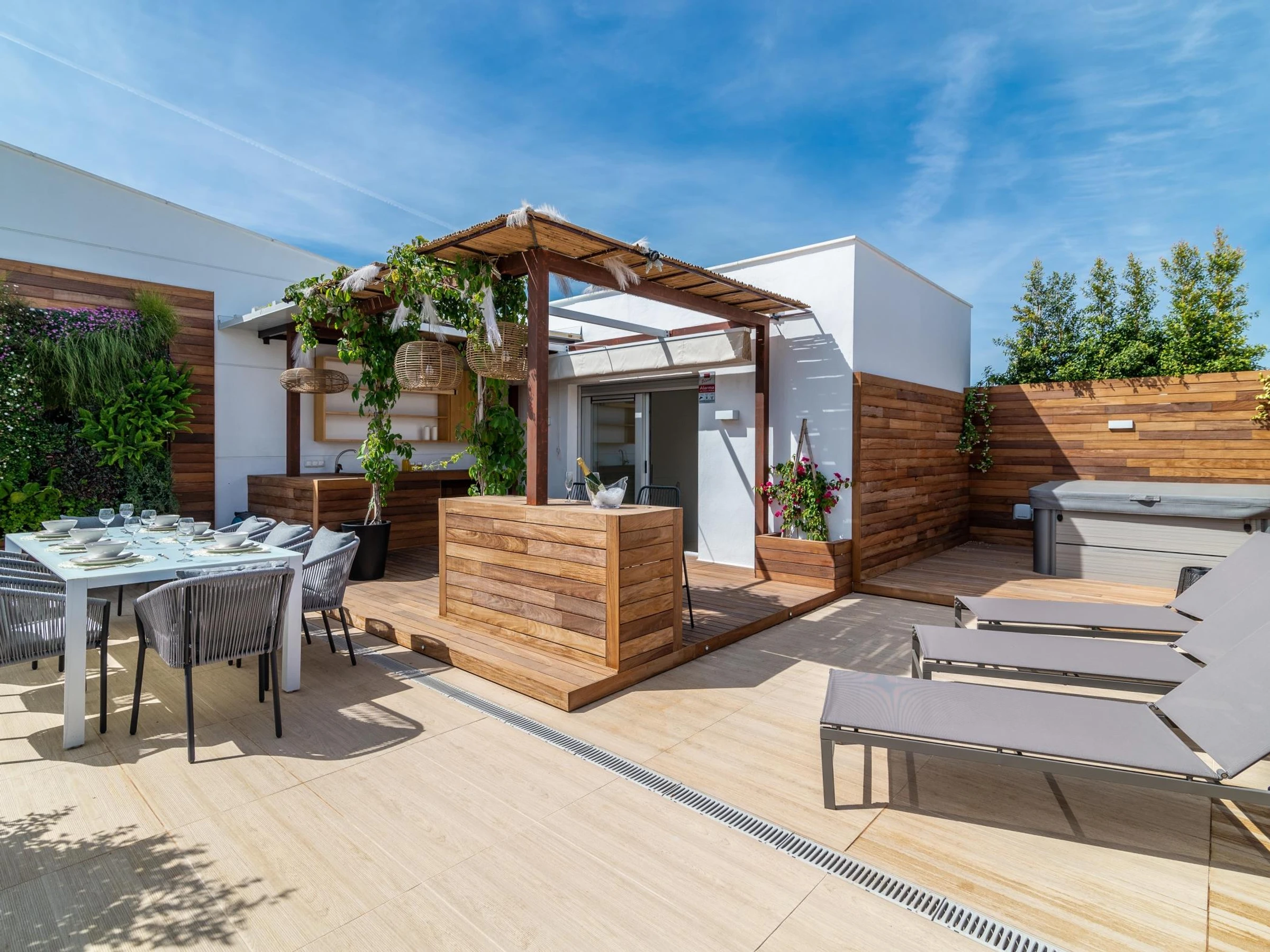 And that’s not all. The exquisitely appointed apartment spares no expenses when it comes to comfort. Its welcoming character will tempt you to forget about the gorgeous shared swimming pool in the complex. We totally understand, there are so many amazing plans you could pull off in your apartment! How about gathering your friends for a late barbecue meal and exotic cocktails on your terrace during mild nights? And taking the party to the jacuzziupstairs? The barbecue area won't disappoint anyone. All you need to do is be ready for delightful days of laughter-filled adventures.