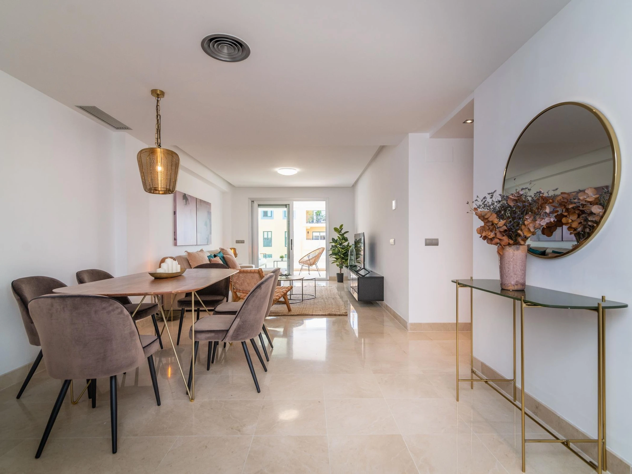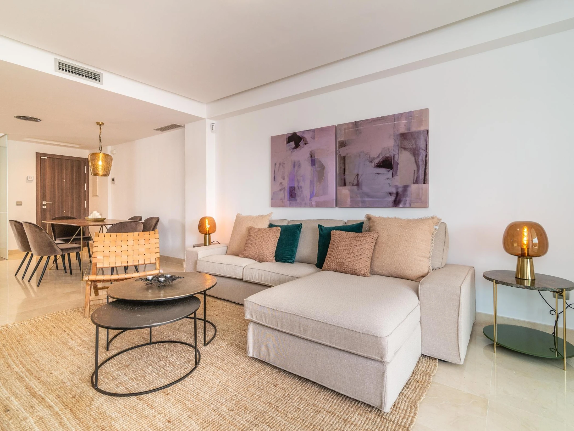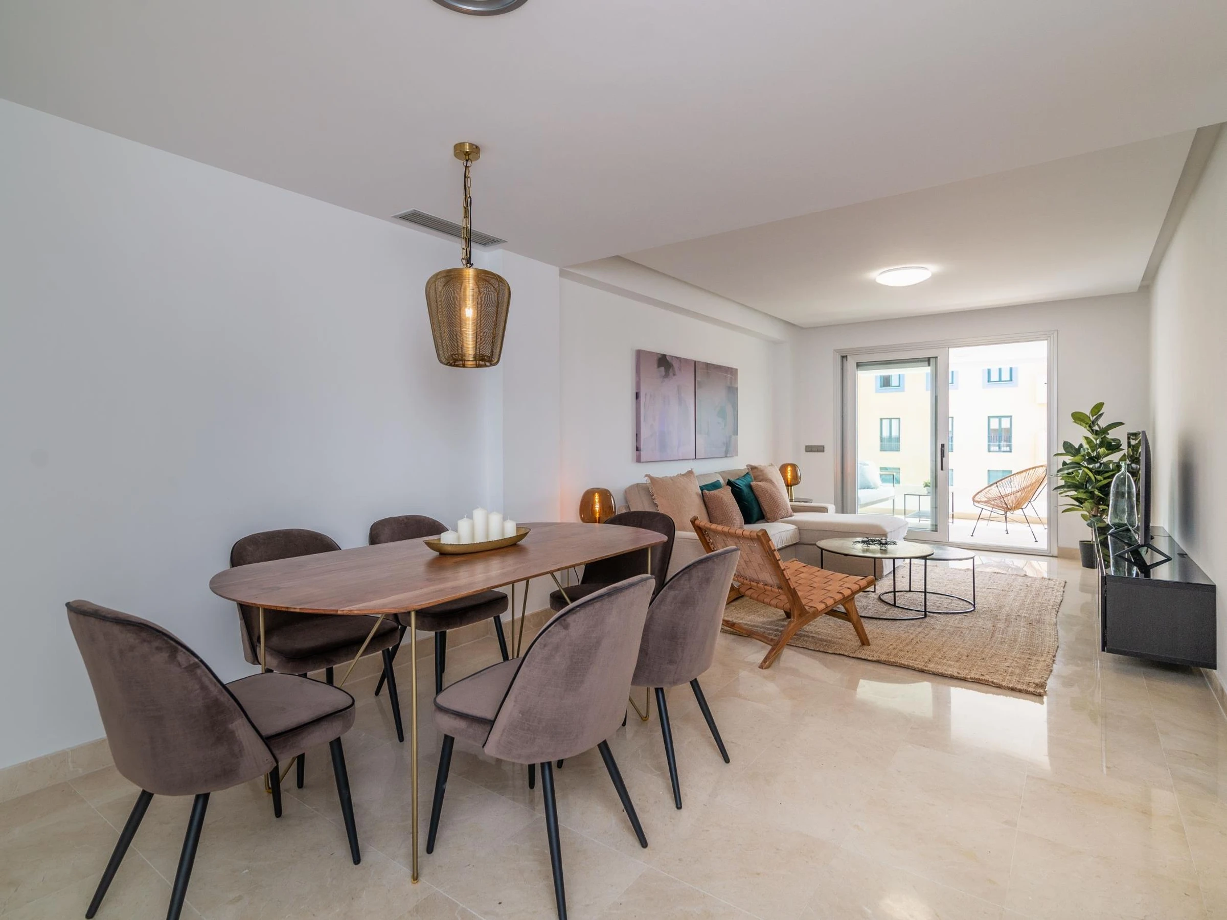 With state-of-the-art décorbased on perfectly combined neutral tones and vibrant desert colours along, its interior design is halfway between bohemian and tropical. Wide windows and clean-lined furnishing keep the whole living area bright in natural light.
