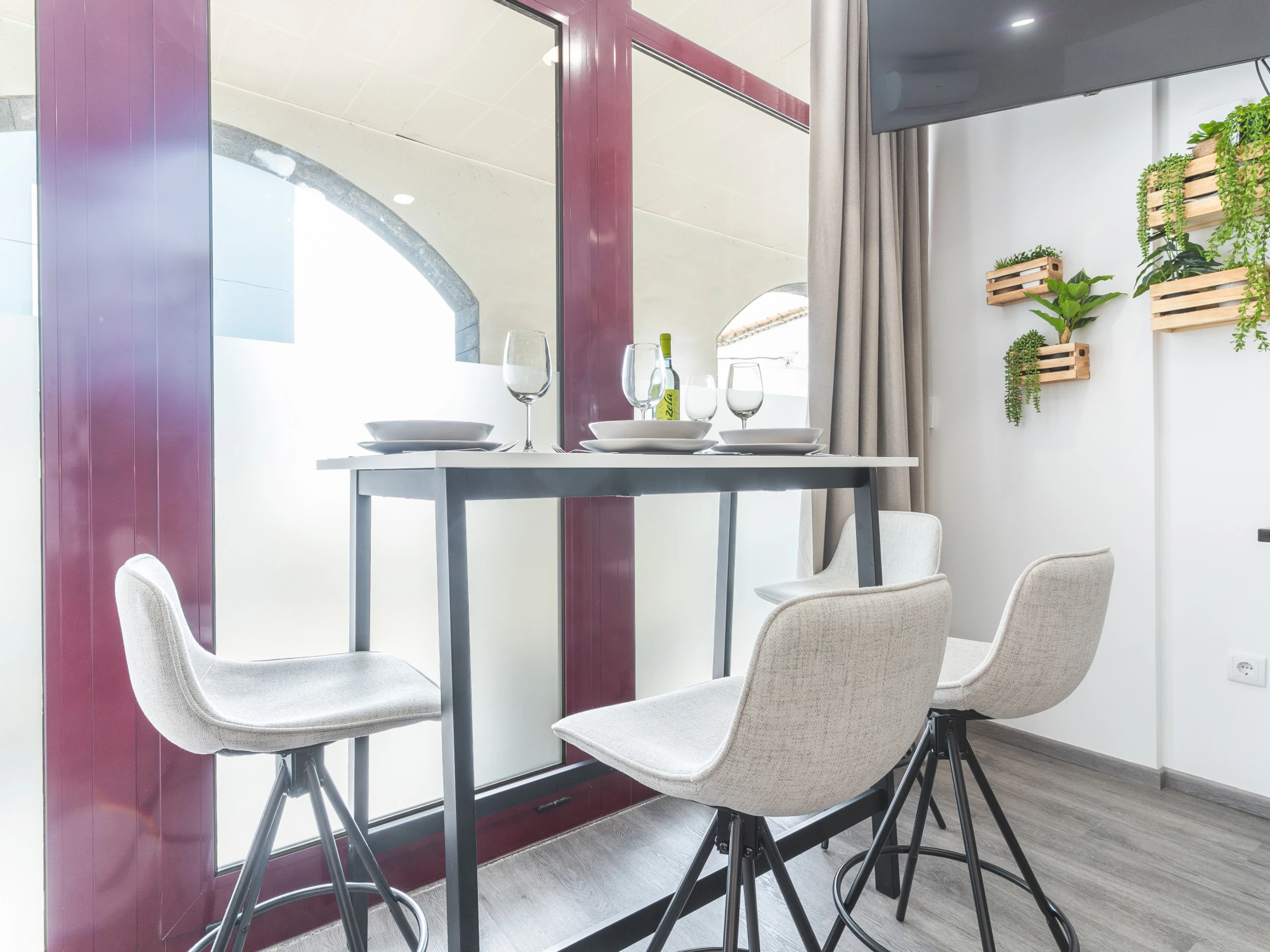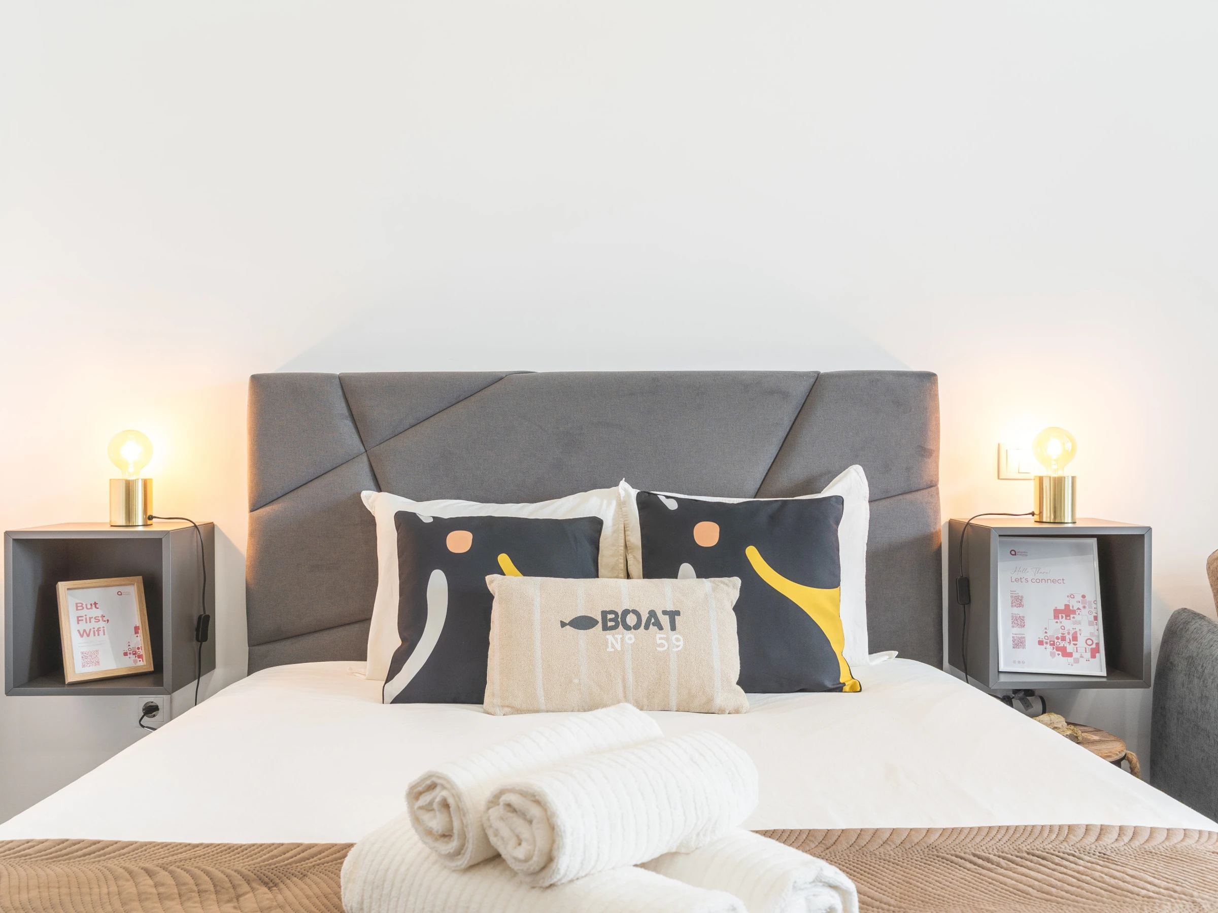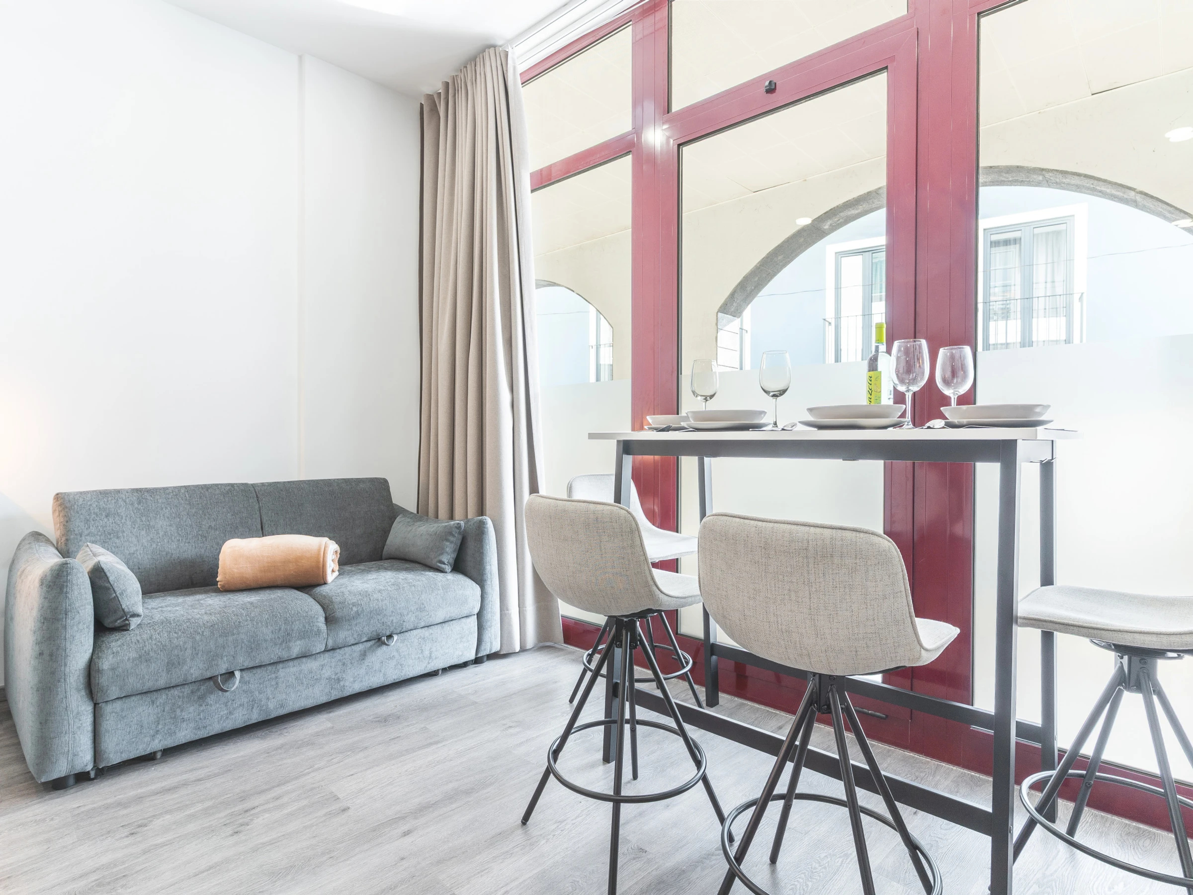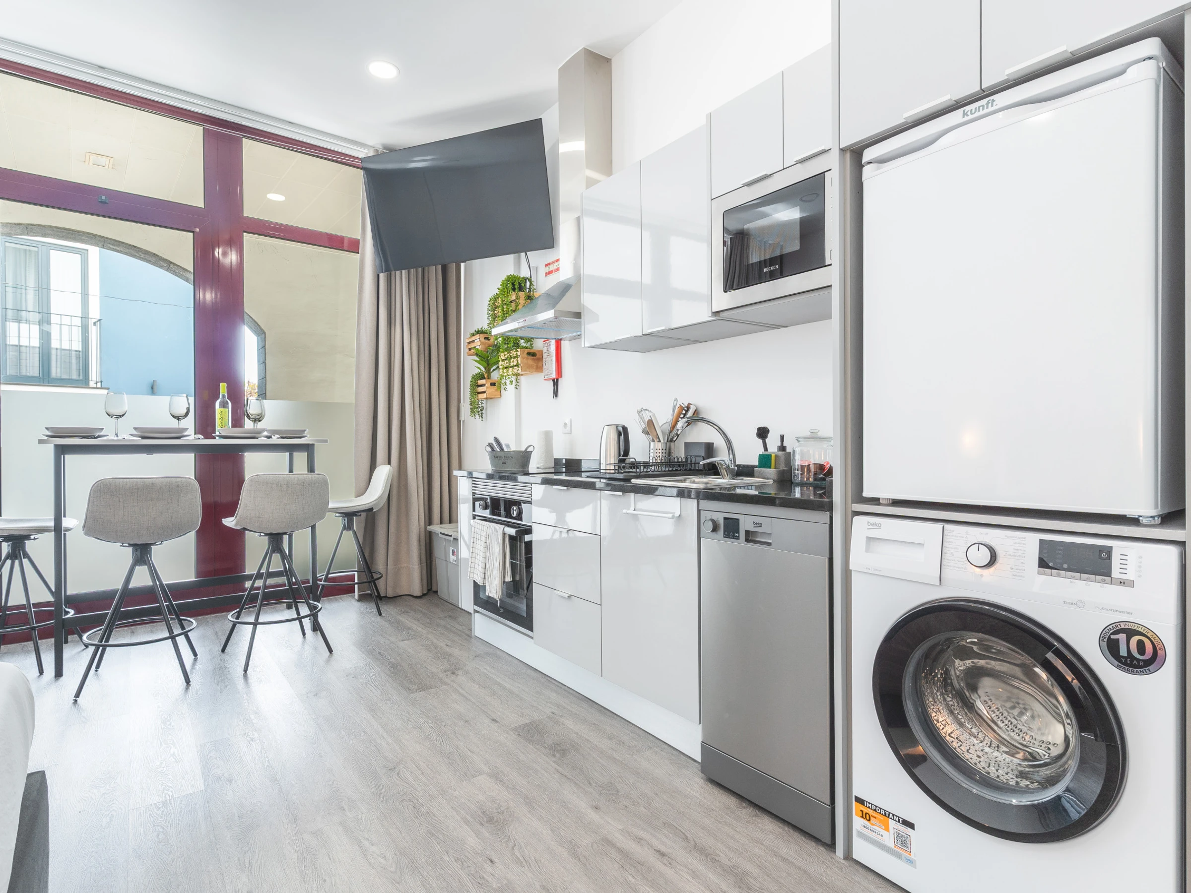 The open-plan studio accommodates up to three guests and features a queen bed along with a sofa bed suitable for two. The living area integrates smoothly with a fully equipped kitchen, which includes a fridge, freezer, oven, microwave, hob and all essential utensils needed for preparing meals. The property also offers a bathroom with a shower, a washing machine, a hairdryer and a Smart TV with a box for entertainment. Families benefit from the availability of a baby cot and a high chair.