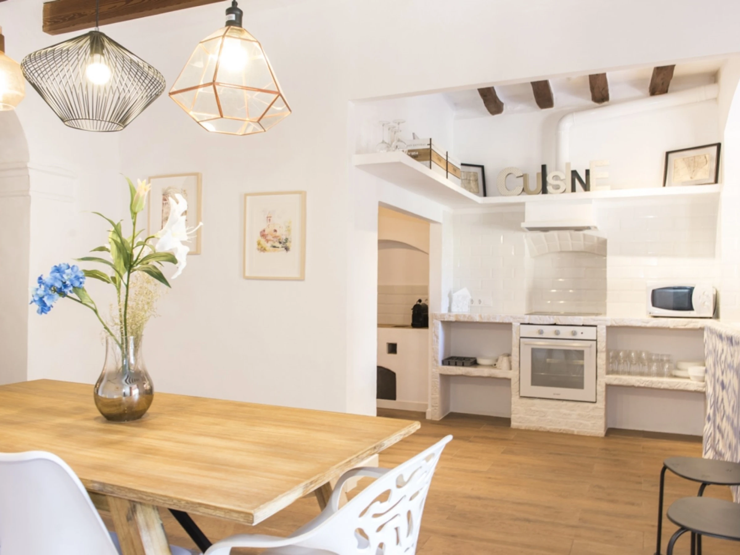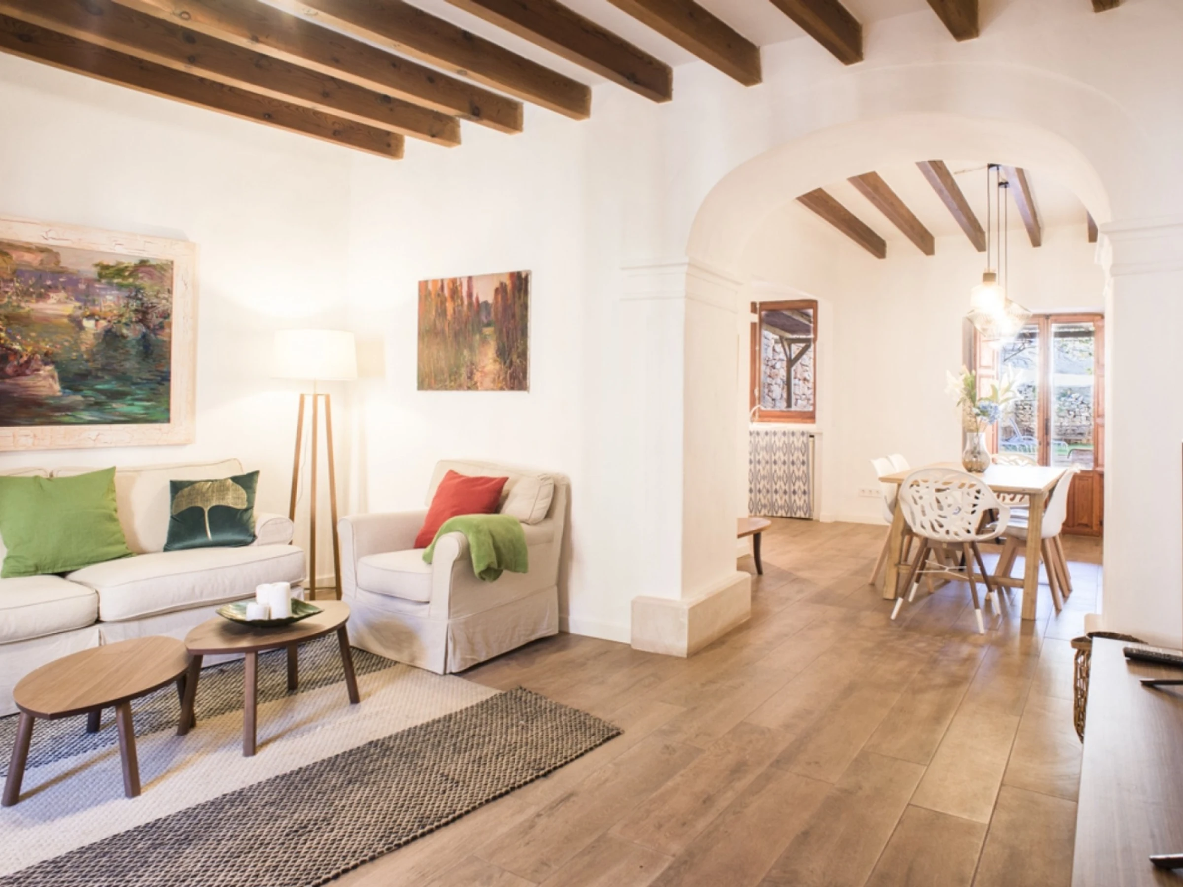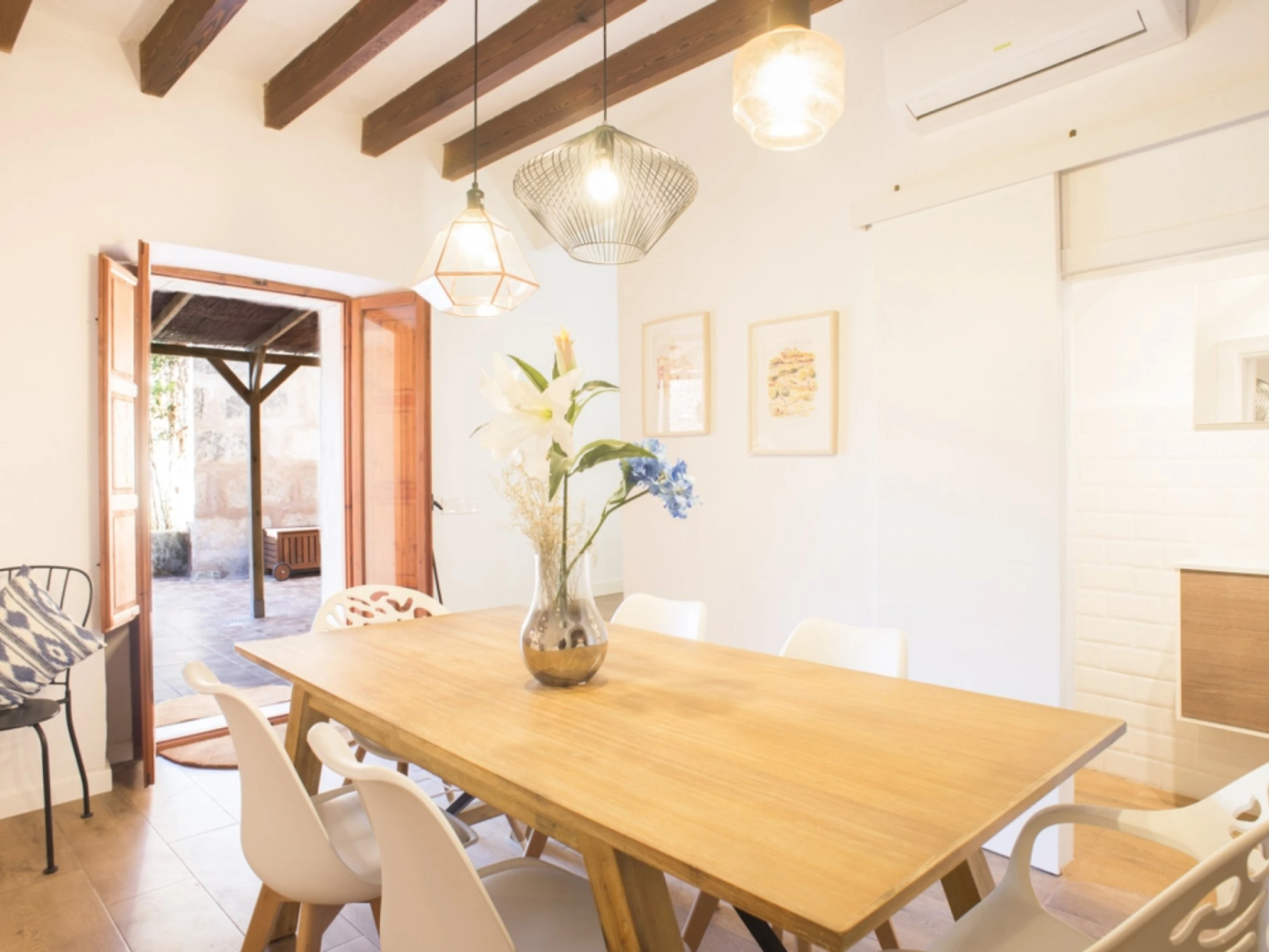 The beautiful house is located in the center of Santanyi, captivates with its fantastic outdoor area and typical Mallorcan architecture. The charming holiday home is decorated in warm and welcoming colors. Located very close to the restaurant and bar [hidden] has a spacious living-dining room, a fully equipped kitchen, it has 3 bedrooms (one on the ground floor and two on the upper floor), all with en suite bathrooms and a toilet in the living room, it can very comfortably accommodate 6 persons. Facilities also include Wi-Fi, air conditioning, fireplace and satellite TV.Outside you will find furnished terraces, a barbecue where you can prepare your meals and a pool area with sun loungers. Here you can relax and leave the stresses of everyday life behind. An ideal house to share great moments with family or friends.Less than 10 km away, we can find different beaches such as Cala Santanyi or Playa De S´amarador. The weekly market of Santanyi is very famous for its food offer of fresh products and the offer of artisan products.Distance to Palma de Mallorca airport 48 km.Distance to Cala Santanyi 4.5 km.Distance to Cala Figuera 6 km.Distance to vall dOr golf 16 km.Distance to Cala Mondrado 8 [hidden] linen and towels are included in the price.