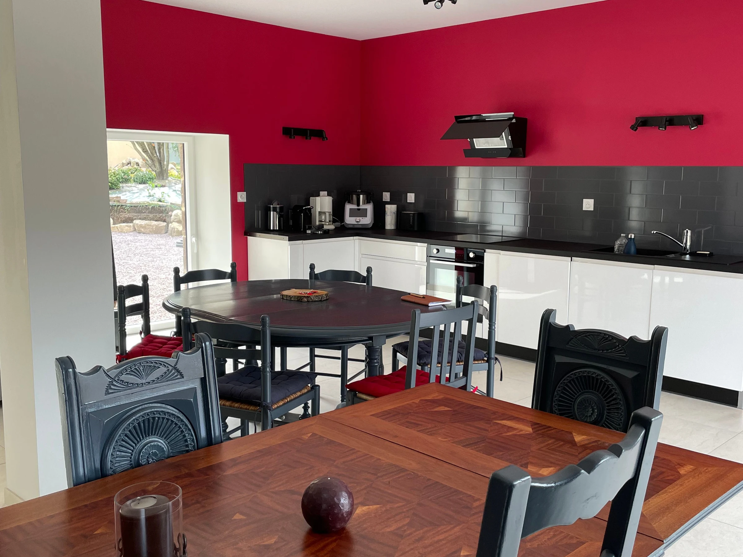 A large terrace or the converted barn with its summer kitchen and two plancha grills, bar and summer kitchen, a large rustic table (made from the beams of the old roof), table football, ping-pong, and darts are available for your days or evenings spent with family or friends.