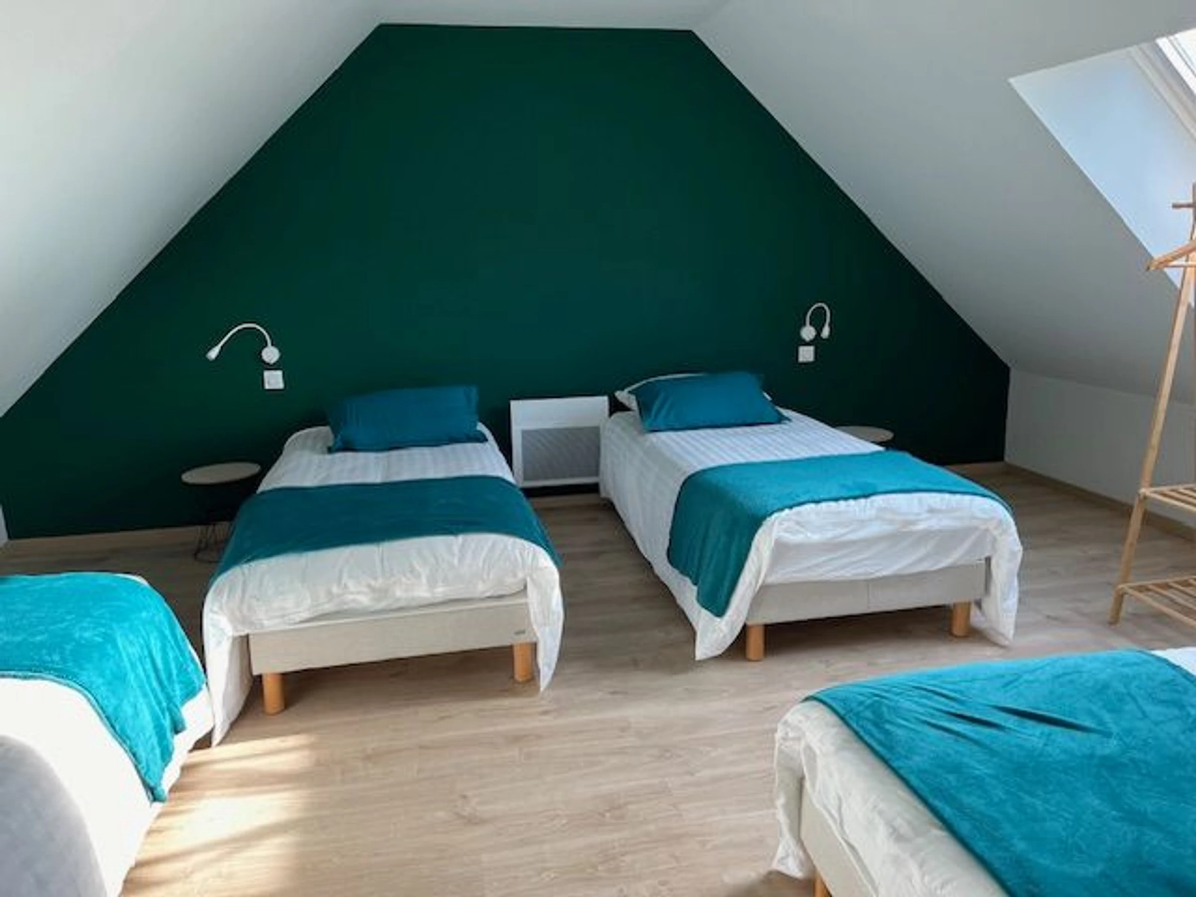 1 bedroom with two single beds and a private bathroom (walk-in shower and sink) and a separate toilet.