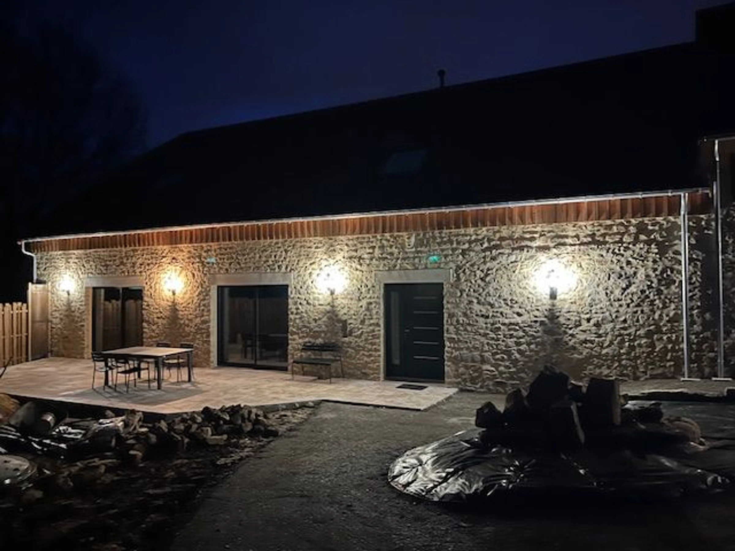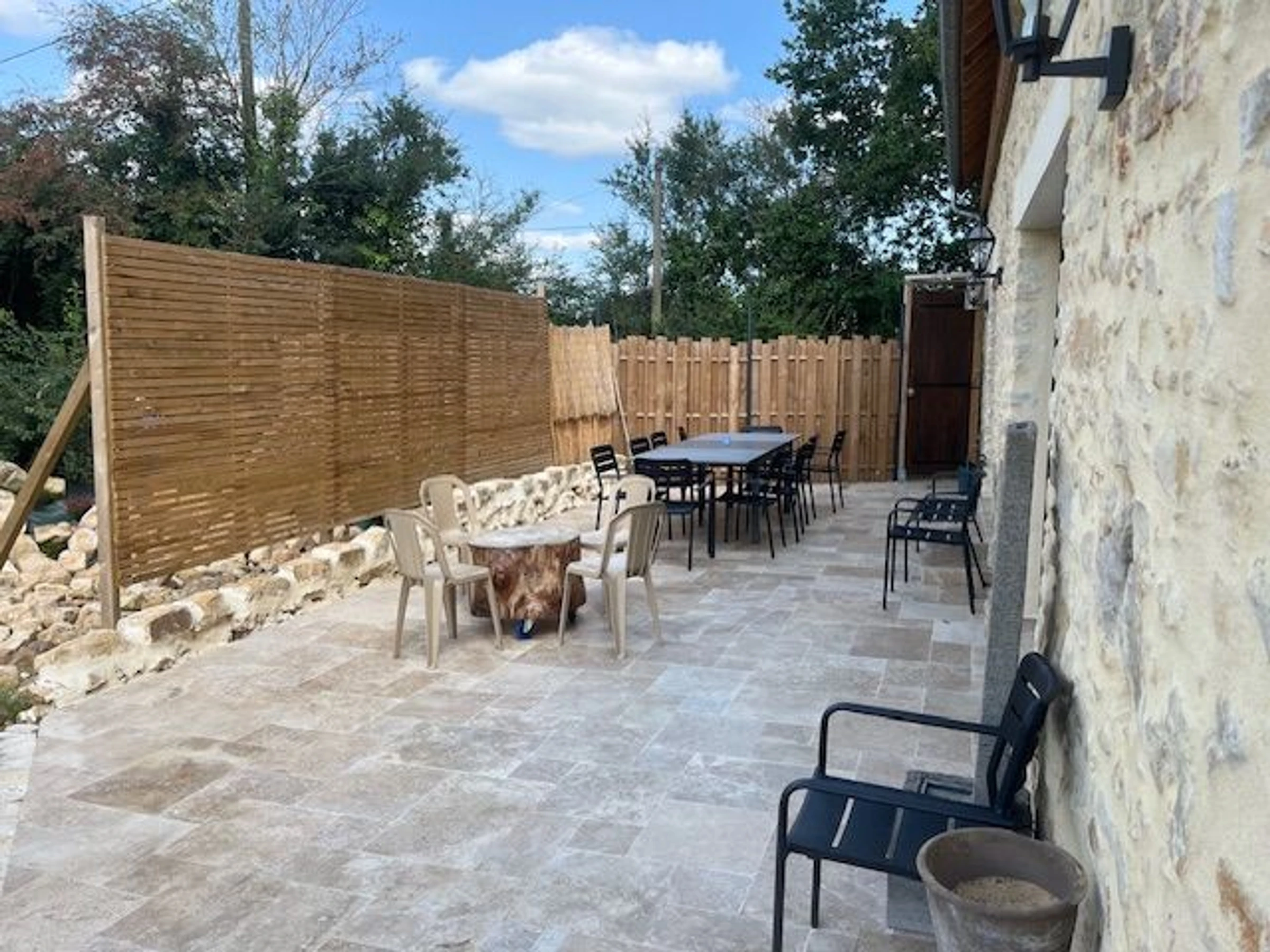 A large terrace or the converted barn, equipped with a summer kitchen (including two griddles), a bar and outdoor kitchen, a large rustic table (made from the beams of the old roof), foosball, ping-pong, and darts, are available for your enjoyment with family and friends.
