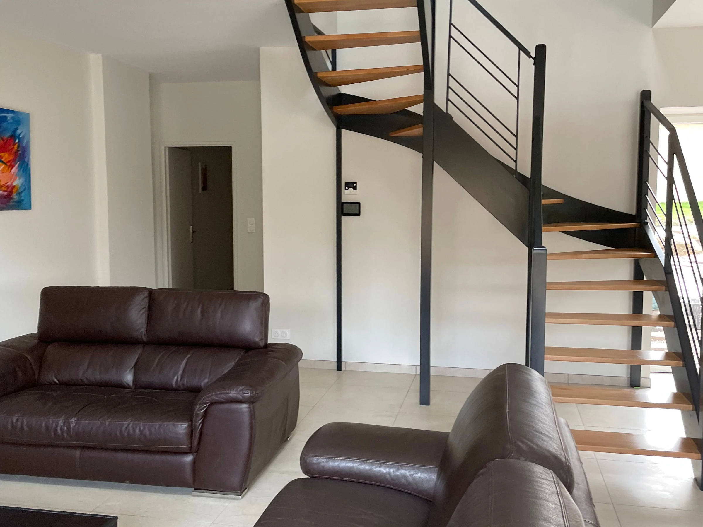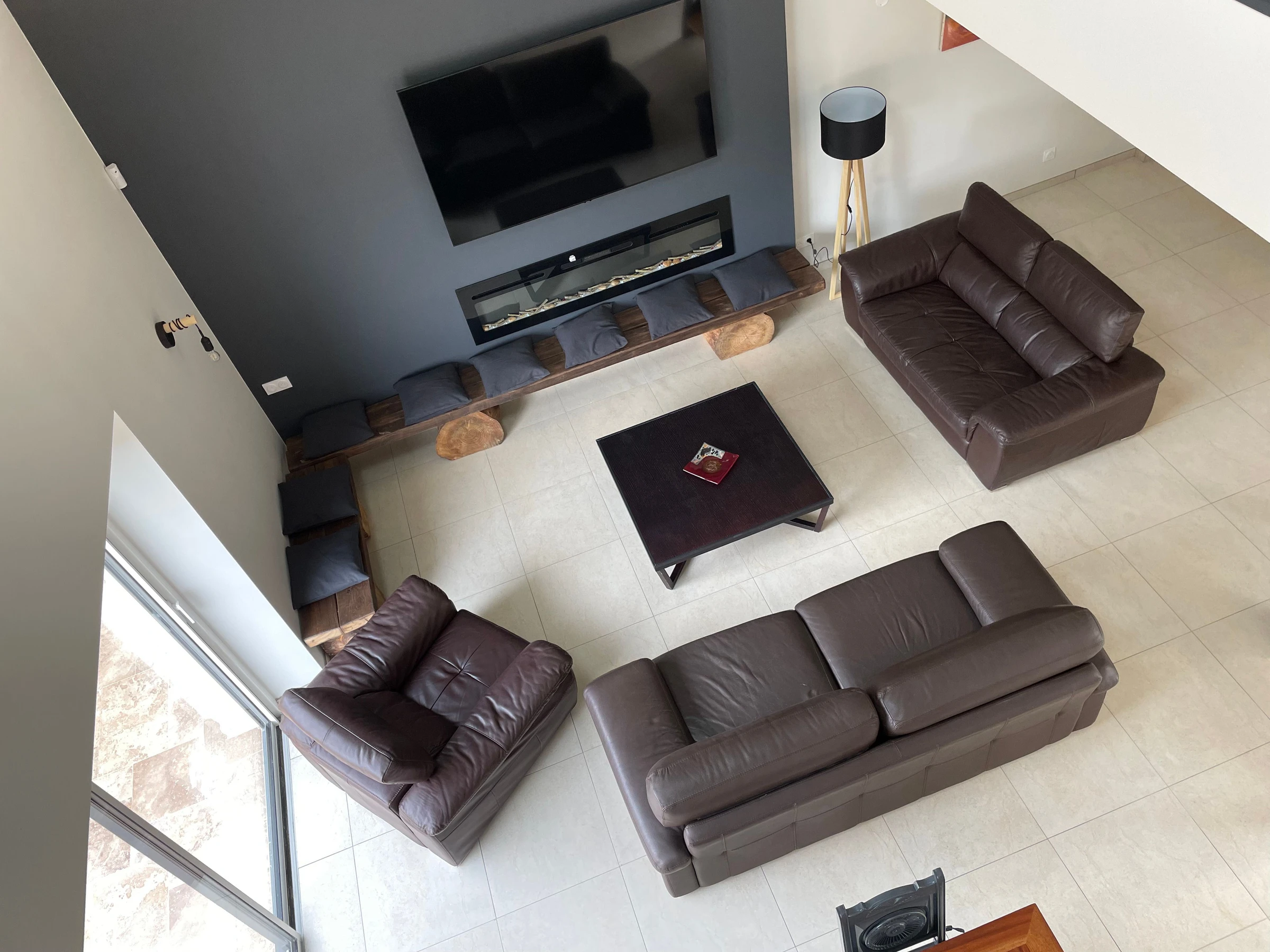 Upstairs: a mezzanine with a home office area,