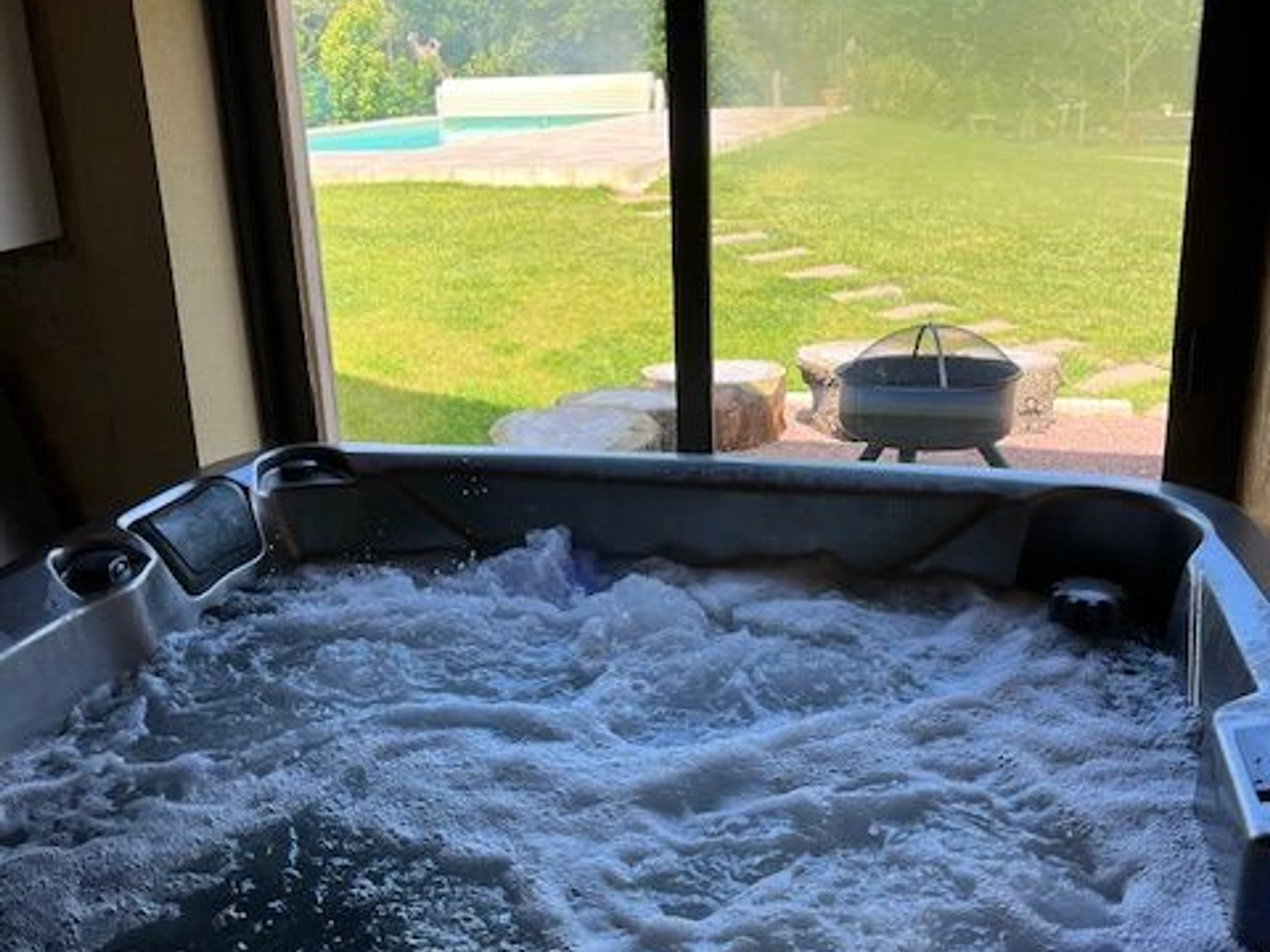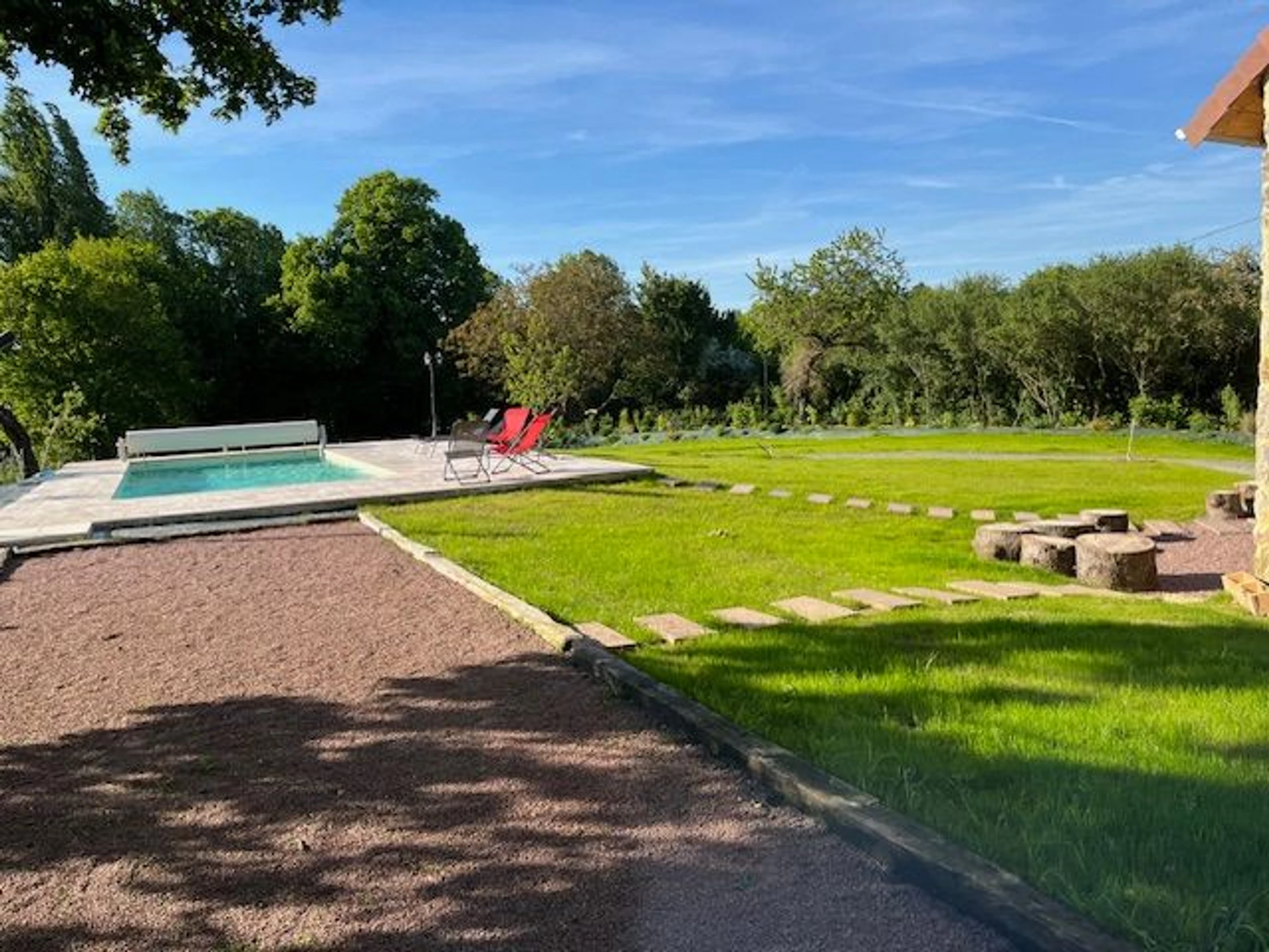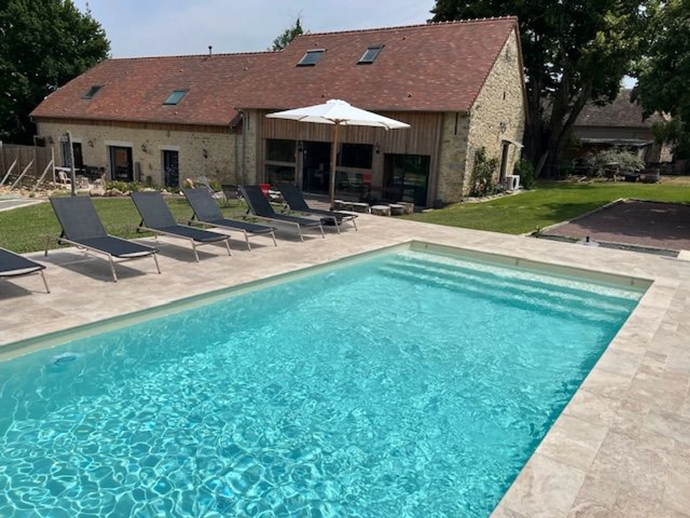 You will be charmed by this restored building, its spaciousness, its magnificent garden complete with a swimming pool for relaxation, a 5-person jacuzzi, a fitness area, and a fire pit.