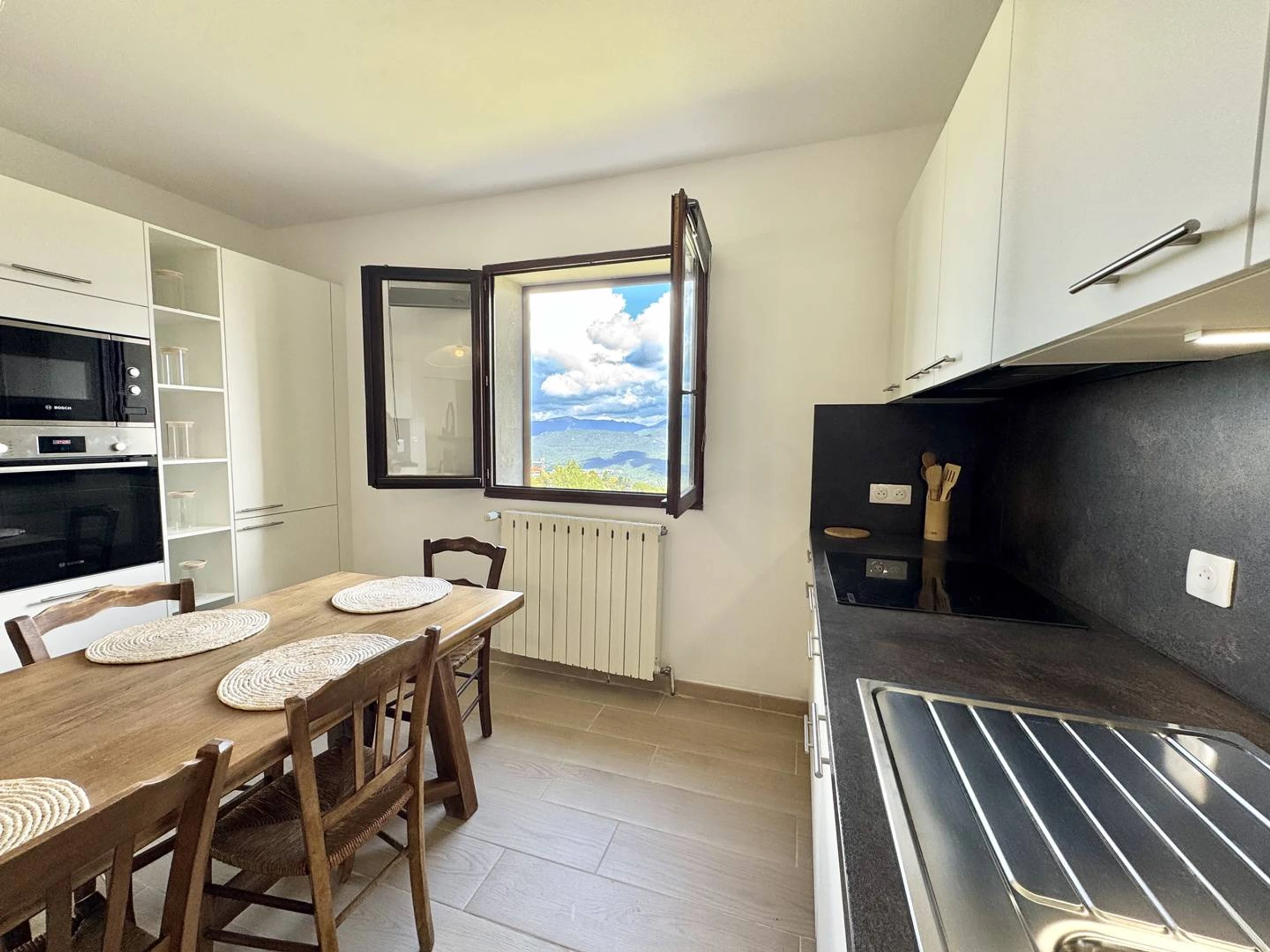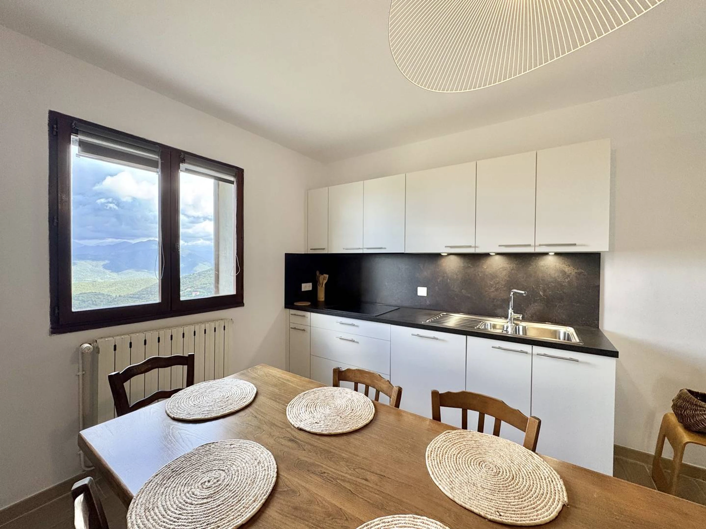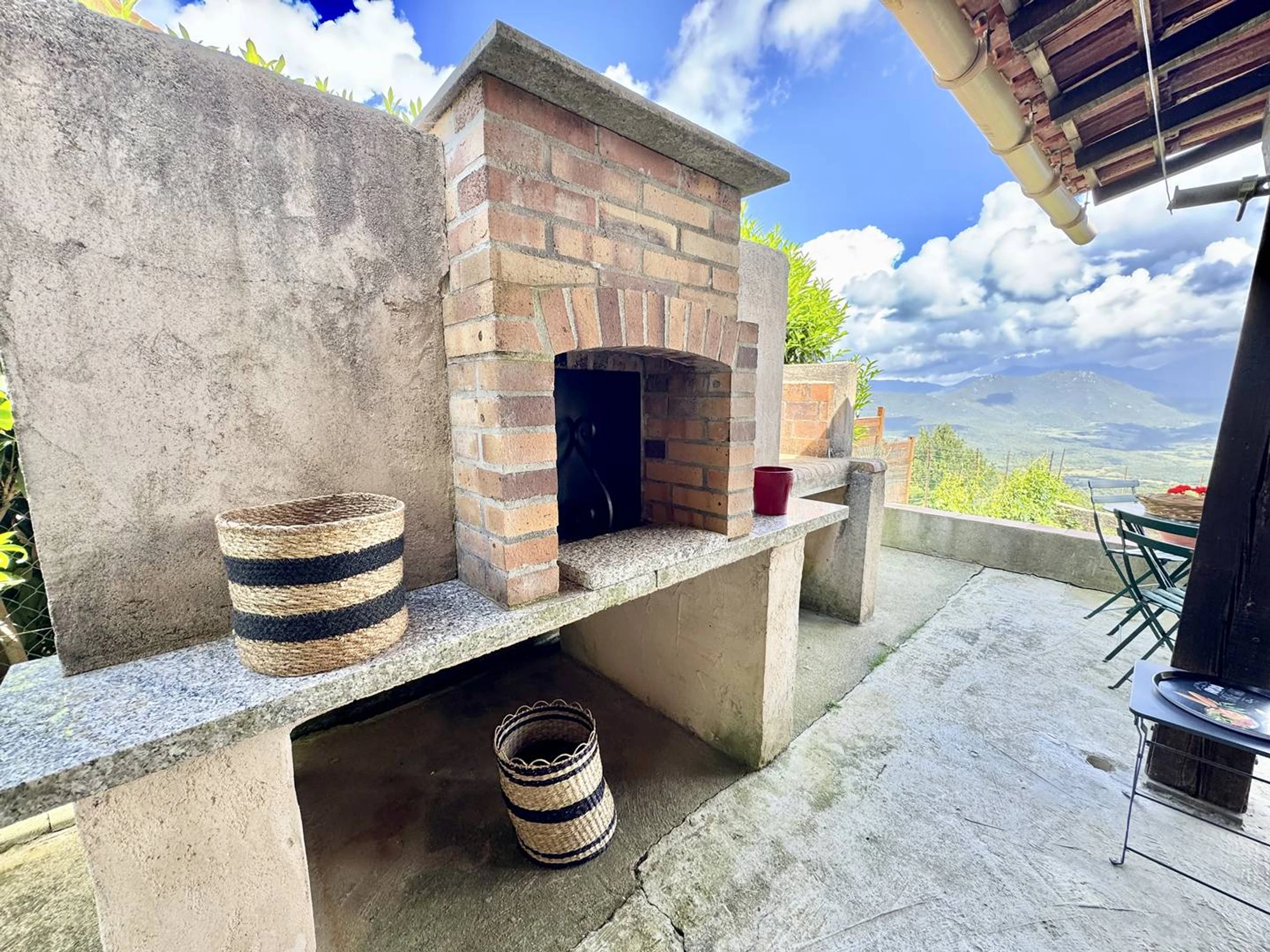 As soon as you arrive, you will be charmed by the bright and functional spaces of the house. The living room, spacious and welcoming, opens onto the garden, inviting you to relax. The fully equipped kitchen also opens onto the outside, where a dining area has been set up for your outdoor meals. The pizza oven and barbecue will allow you to share friendly moments around delicious dishes, while admiring the breathtaking landscapes of the Corsican mountains.