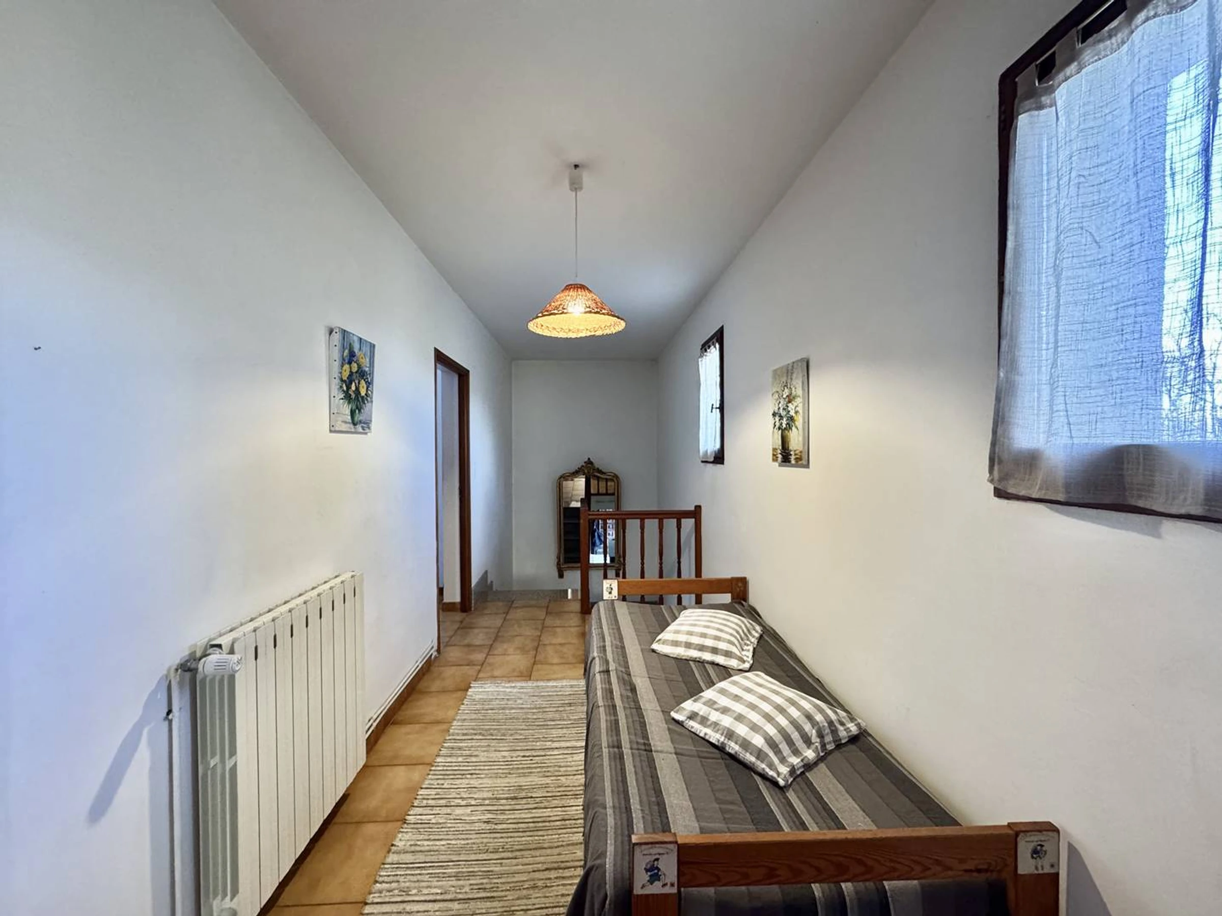 Upstairs, the villa offers four large bedrooms with double beds, each designed for your comfort. They have storage spaces and windows offering a soothing view of the surroundings. One of the bedrooms has a private terrace with a breathtaking view, a perfect place to start the day in complete serenity.