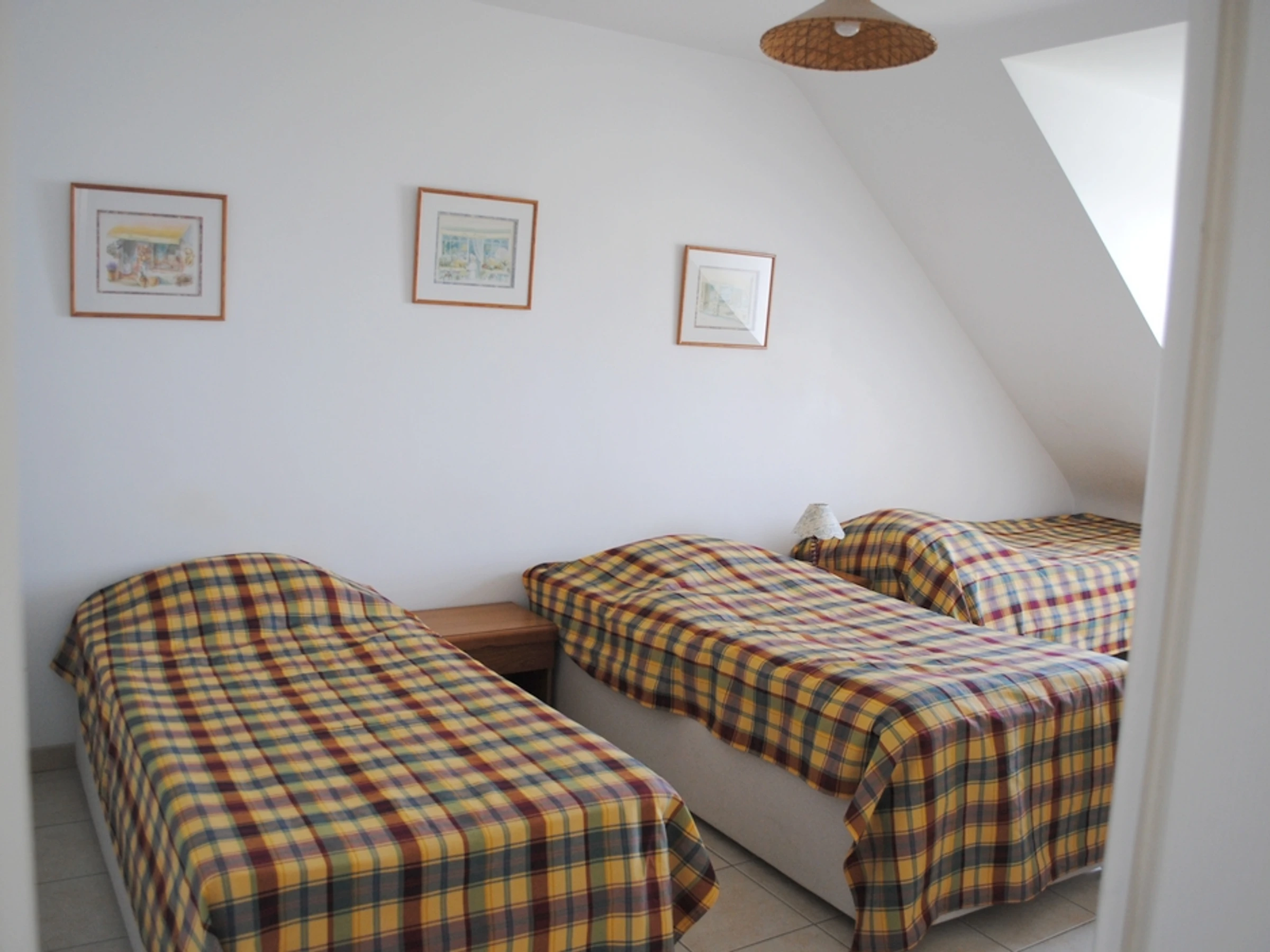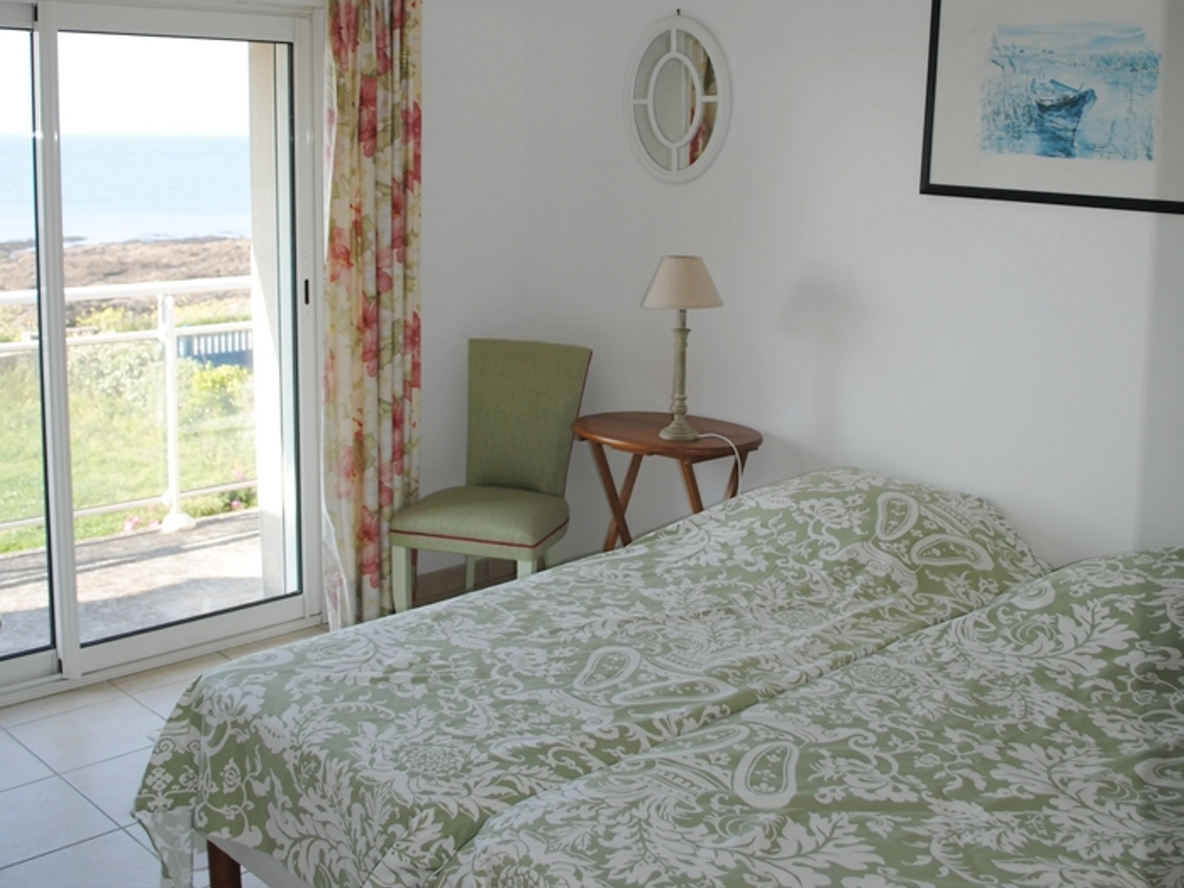 A pleasant family home that can accommodate 12 people, boasting superb ocean views. A spacious living room with an open kitchen welcomes you, perfect for sharing convivial moments. On the ground floor, you'll also find a utility room, a master suite with a double bed and an en-suite shower room, and a separate toilet. Upstairs, you'll find four bedrooms: one with two single beds (90cm wide and can be twinned), one with a double bed (140cm wide), one with two single beds (80cm wide and can be twinned), one with four single beds (90cm wide and two of which can be twinned), a bathroom, and a separate toilet. Outside, you'll find easy parking. On the south-facing side, enjoy the garden and terrace, savoring the view and the sound of the waves below.