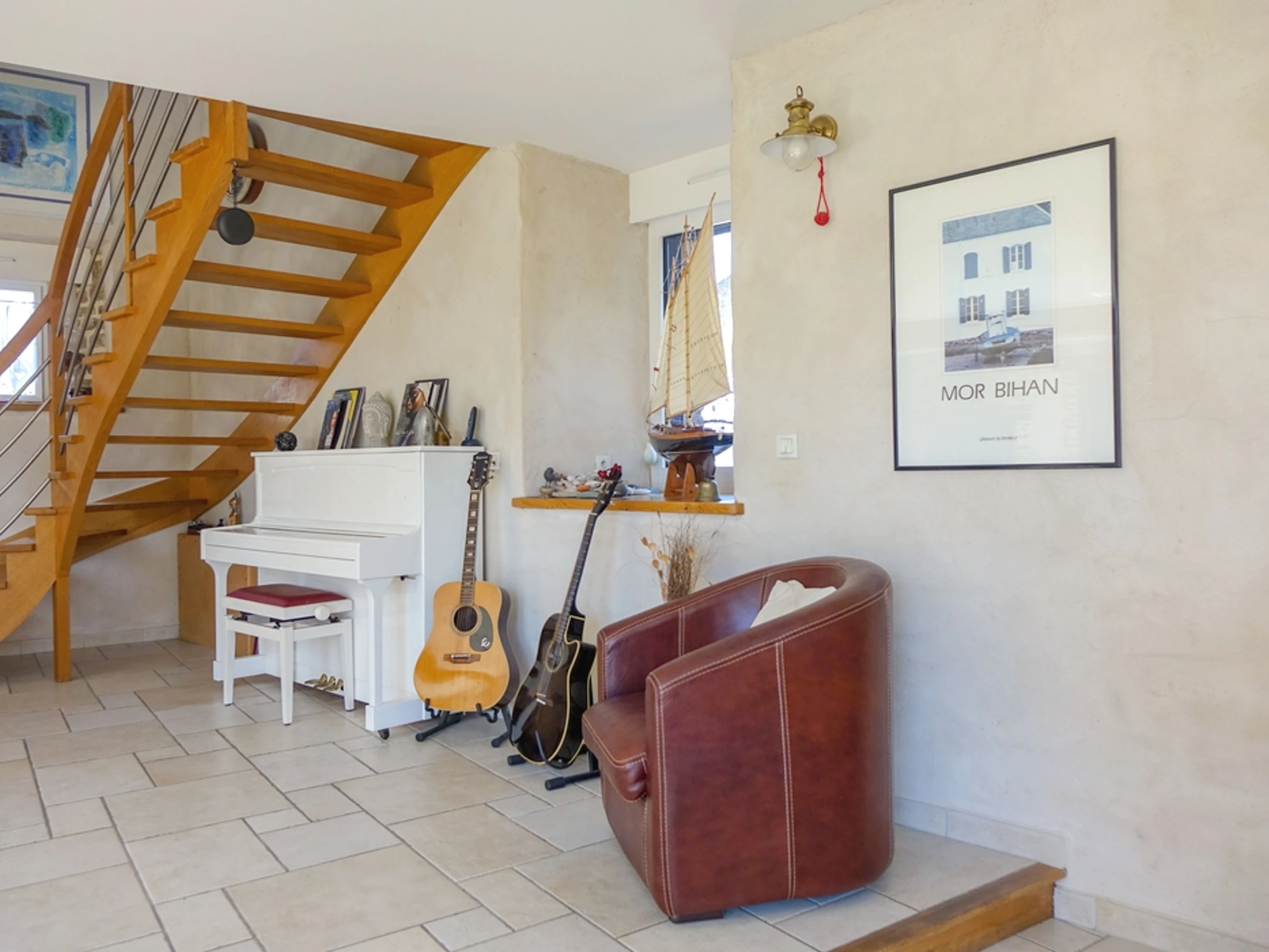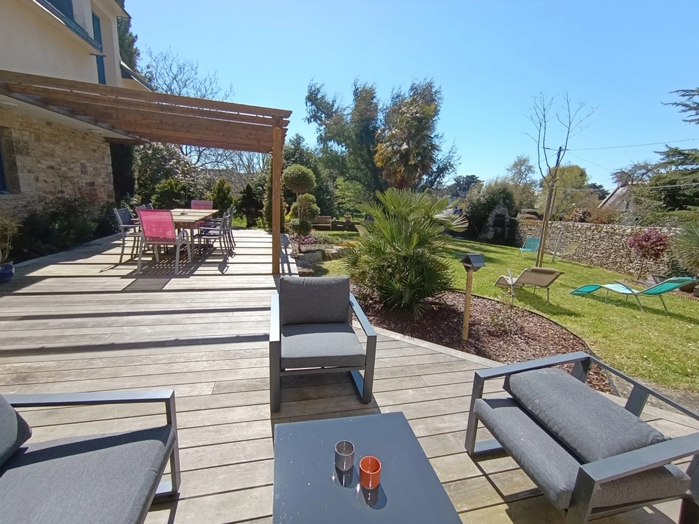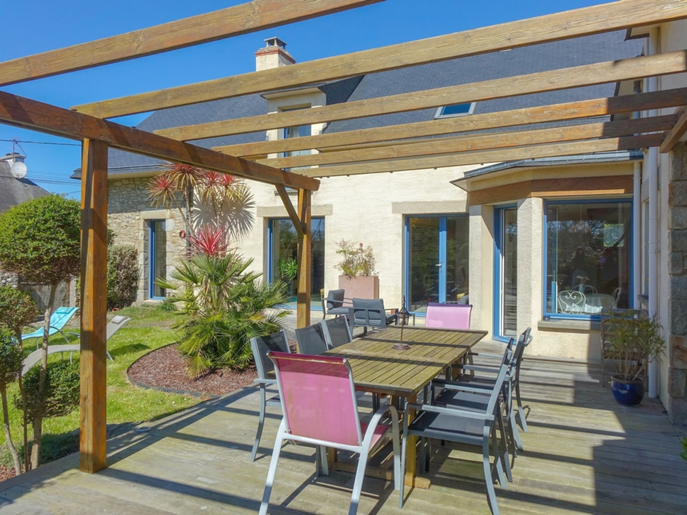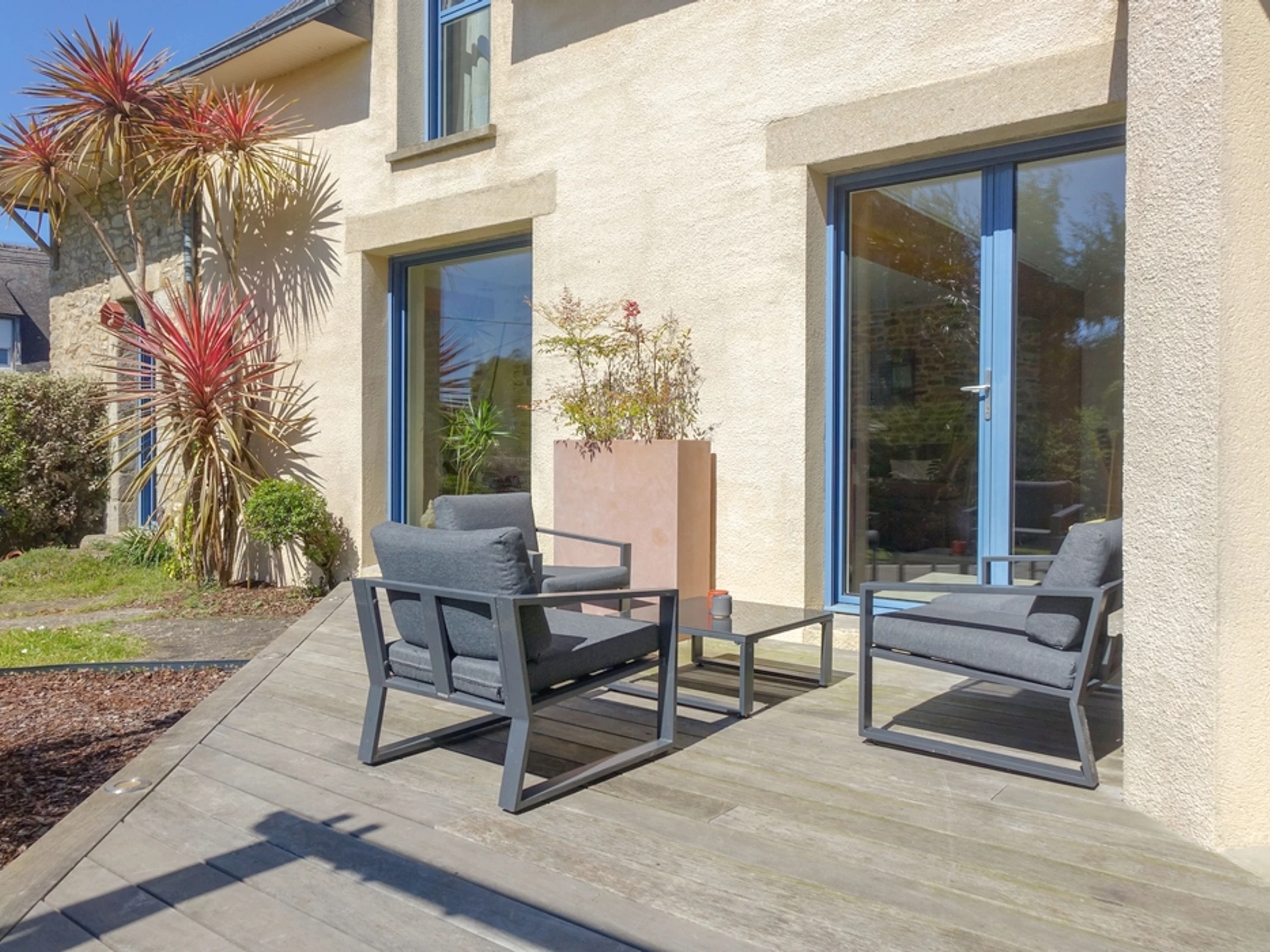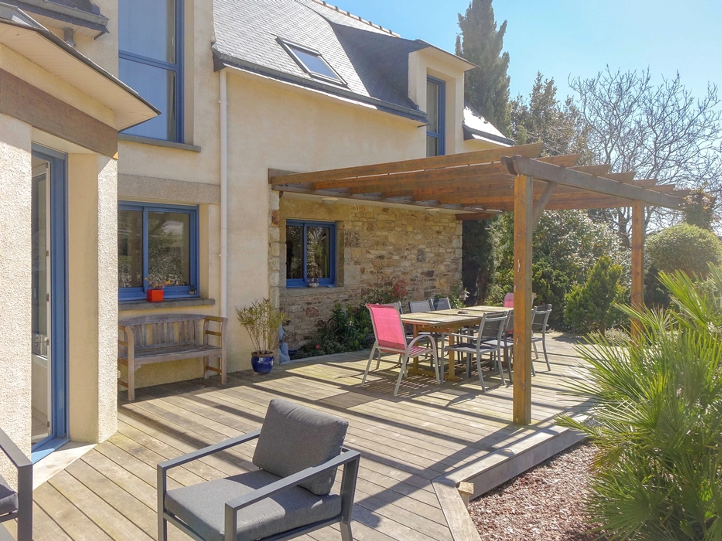 This contemporary-style house can accommodate up to 8 people. It is located on the edge of a charming traditional village, just a few hundred meters from the coast of the Gulf of Morbihan.