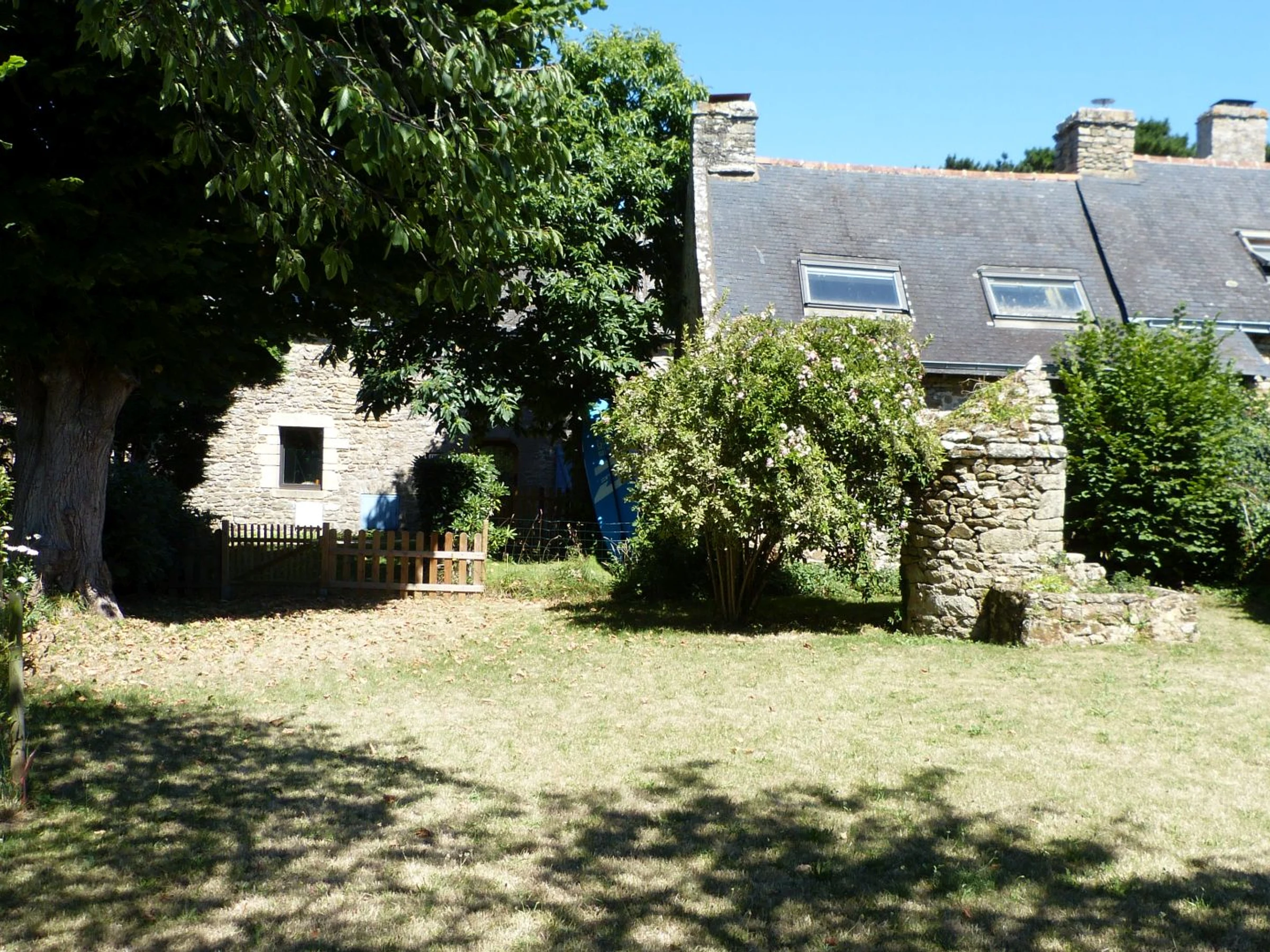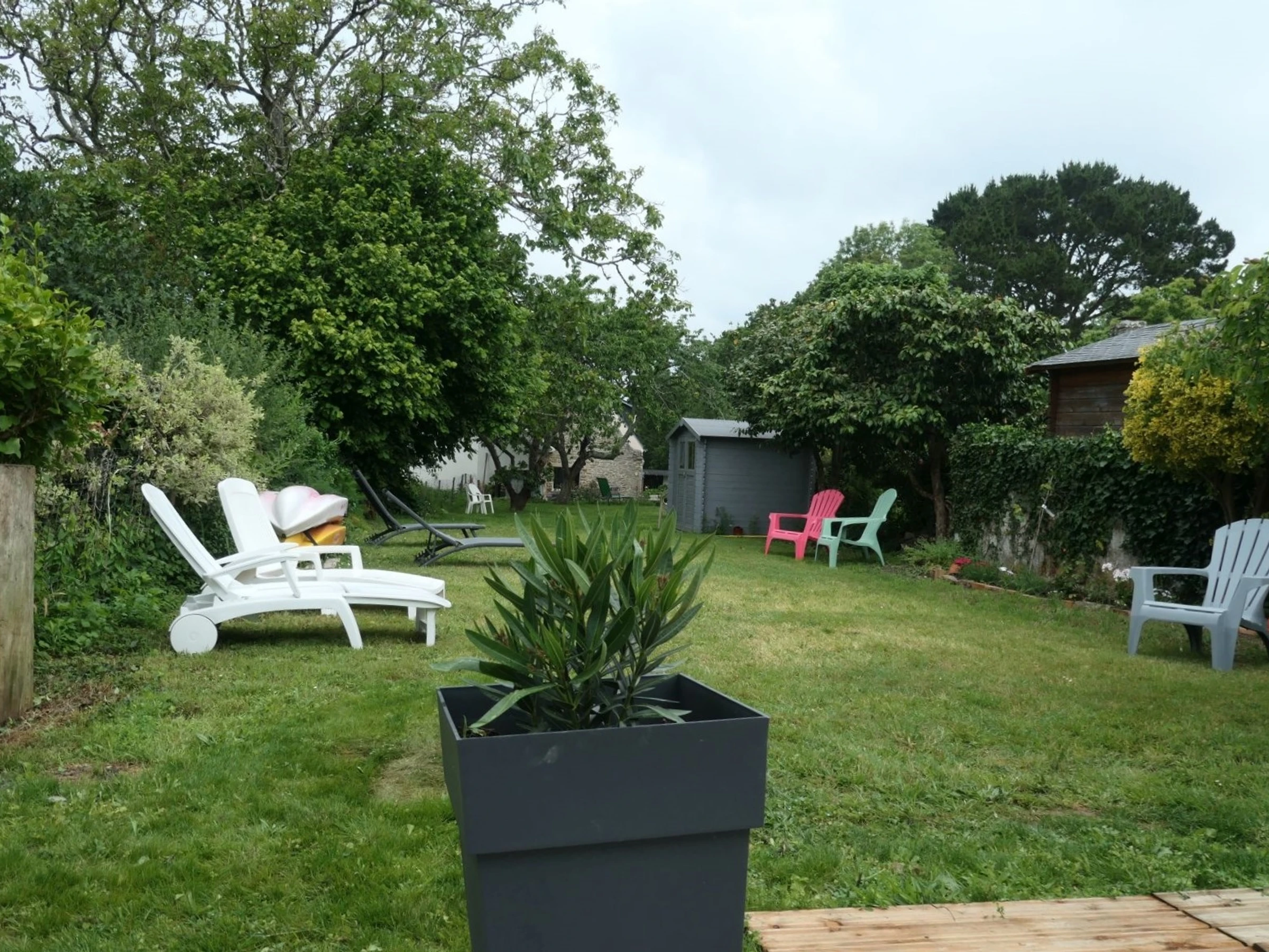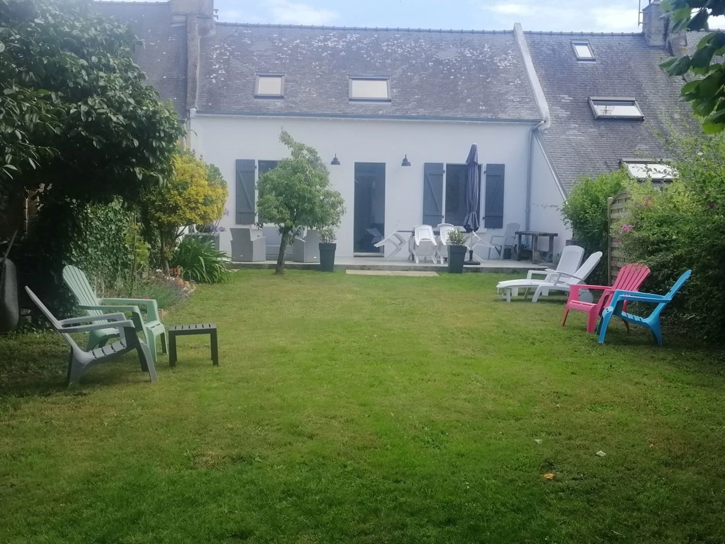 The enclosed garden, approximately 500m², is an invitation to relaxation and daydreaming. Stretching lengthwise, at the far end of the garden, a lovely view of the Gulf of Morbihan awaits, adding to the charm of the house. Garden furniture is provided.
