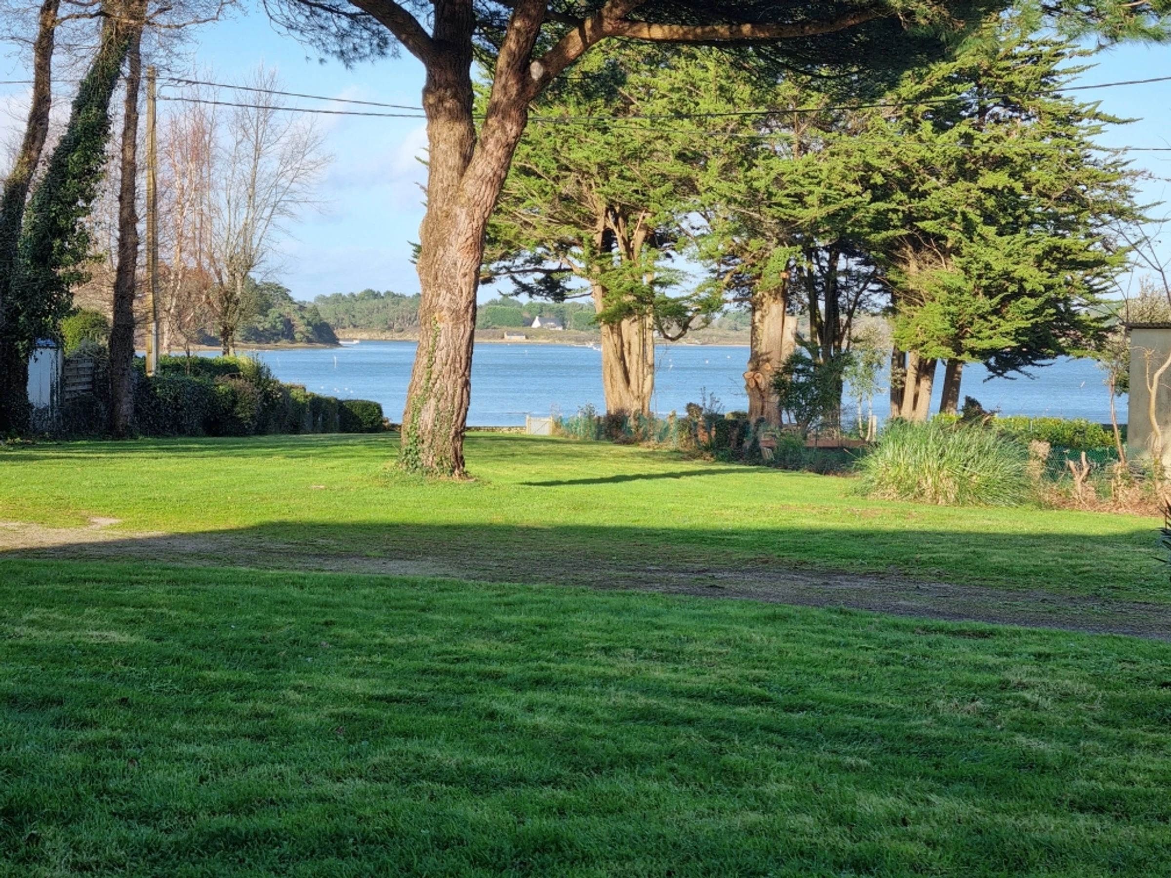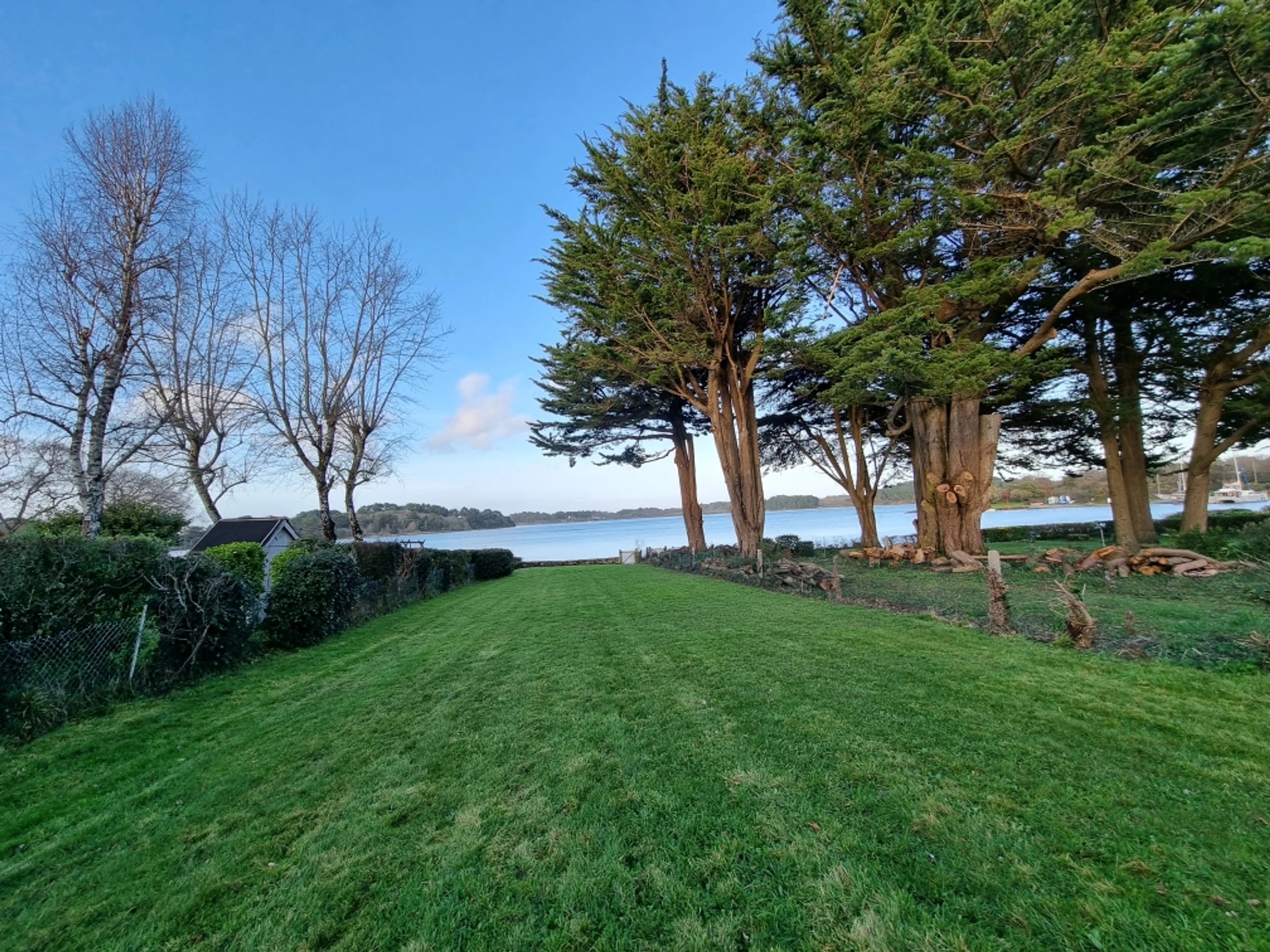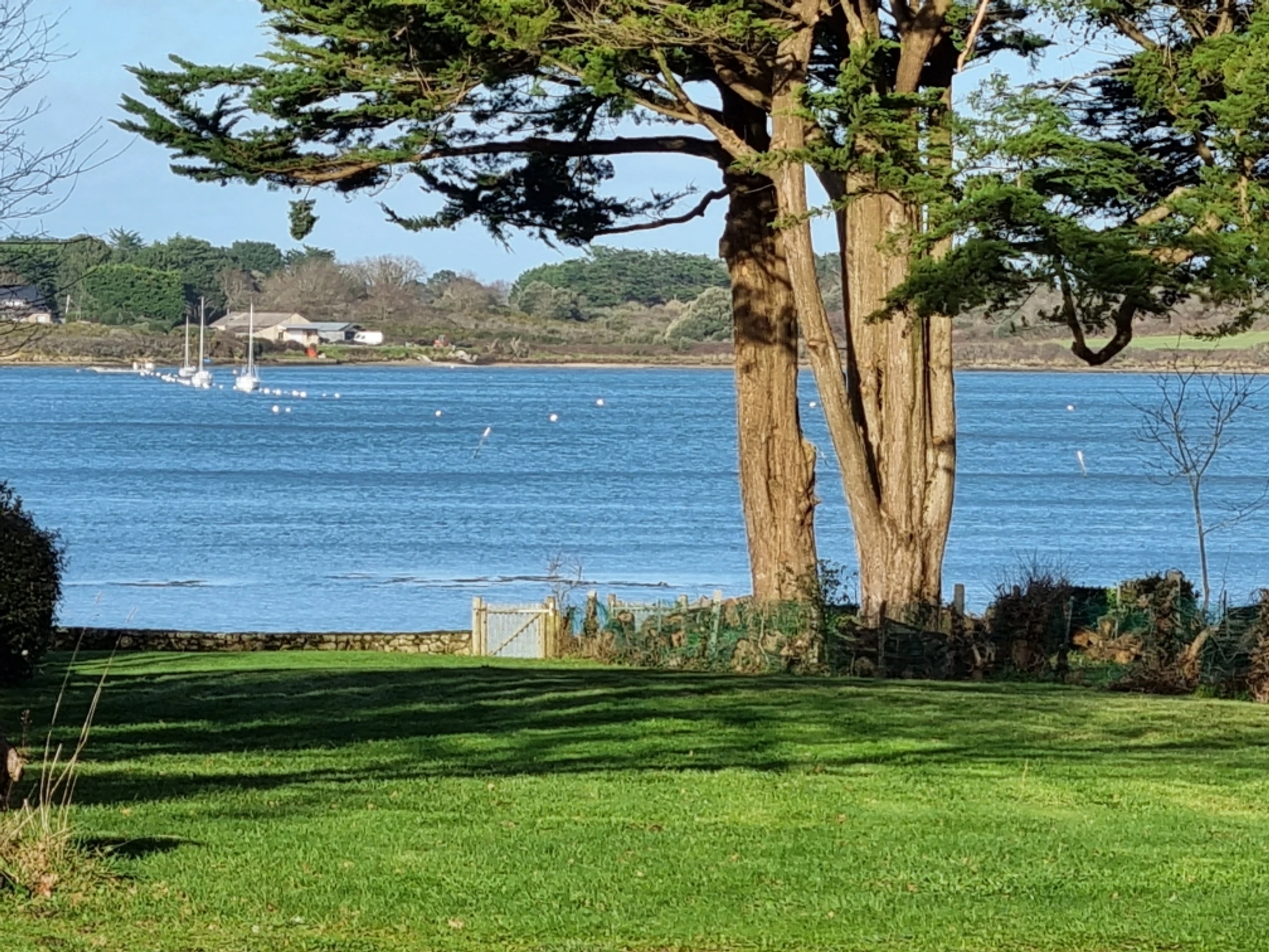 A 3000 m² enclosed garden with mature trees completes the setting. A low stone wall marks the garden's boundary before you reach the coastal path and the gulf, accessible via a gate. It is recommended that very young children not approach the easily accessible wall unaccompanied. Garden furniture is provided.