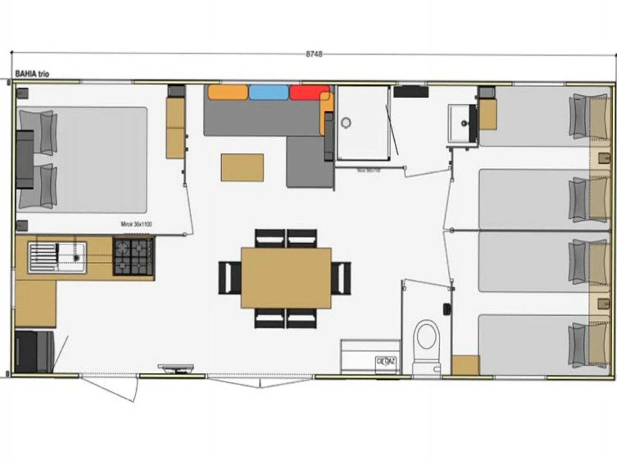 32m² mobile home for 6 people: