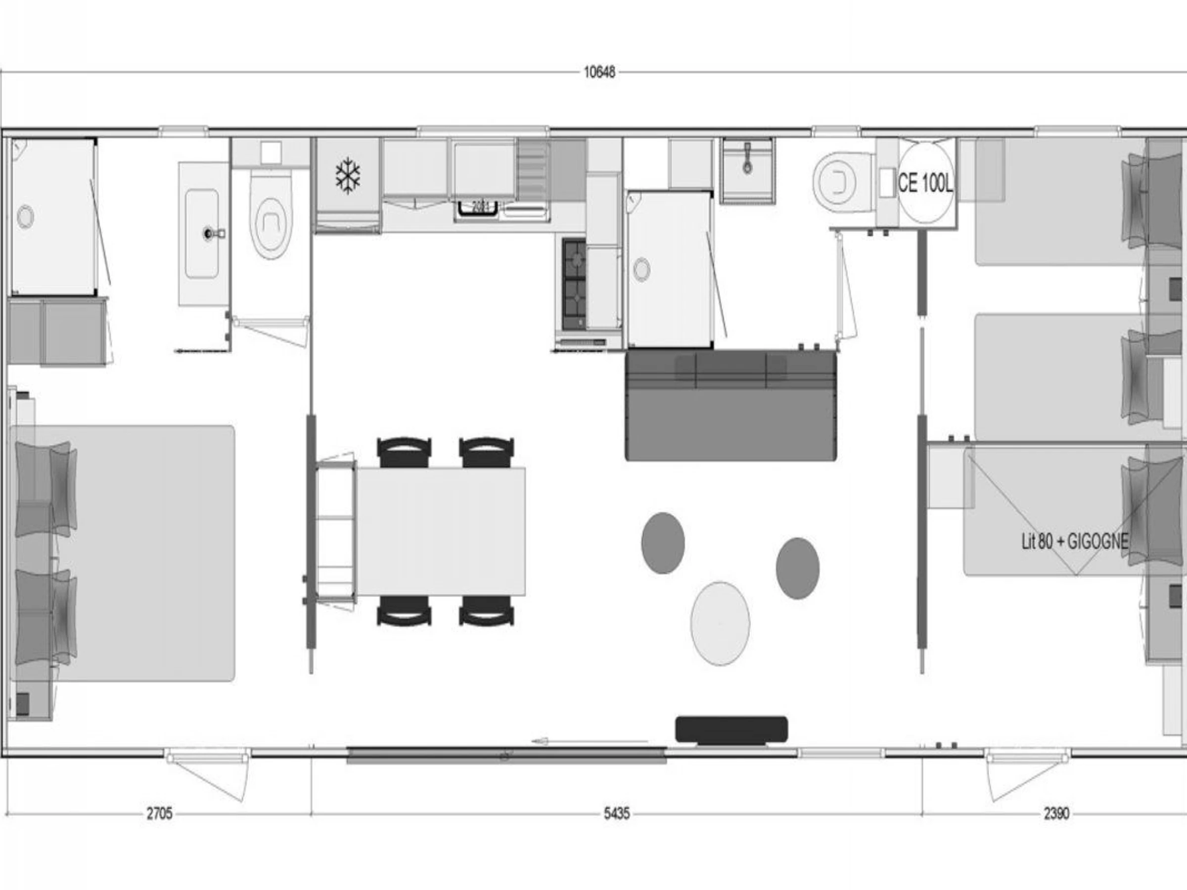 40m² mobile home for 6 people: