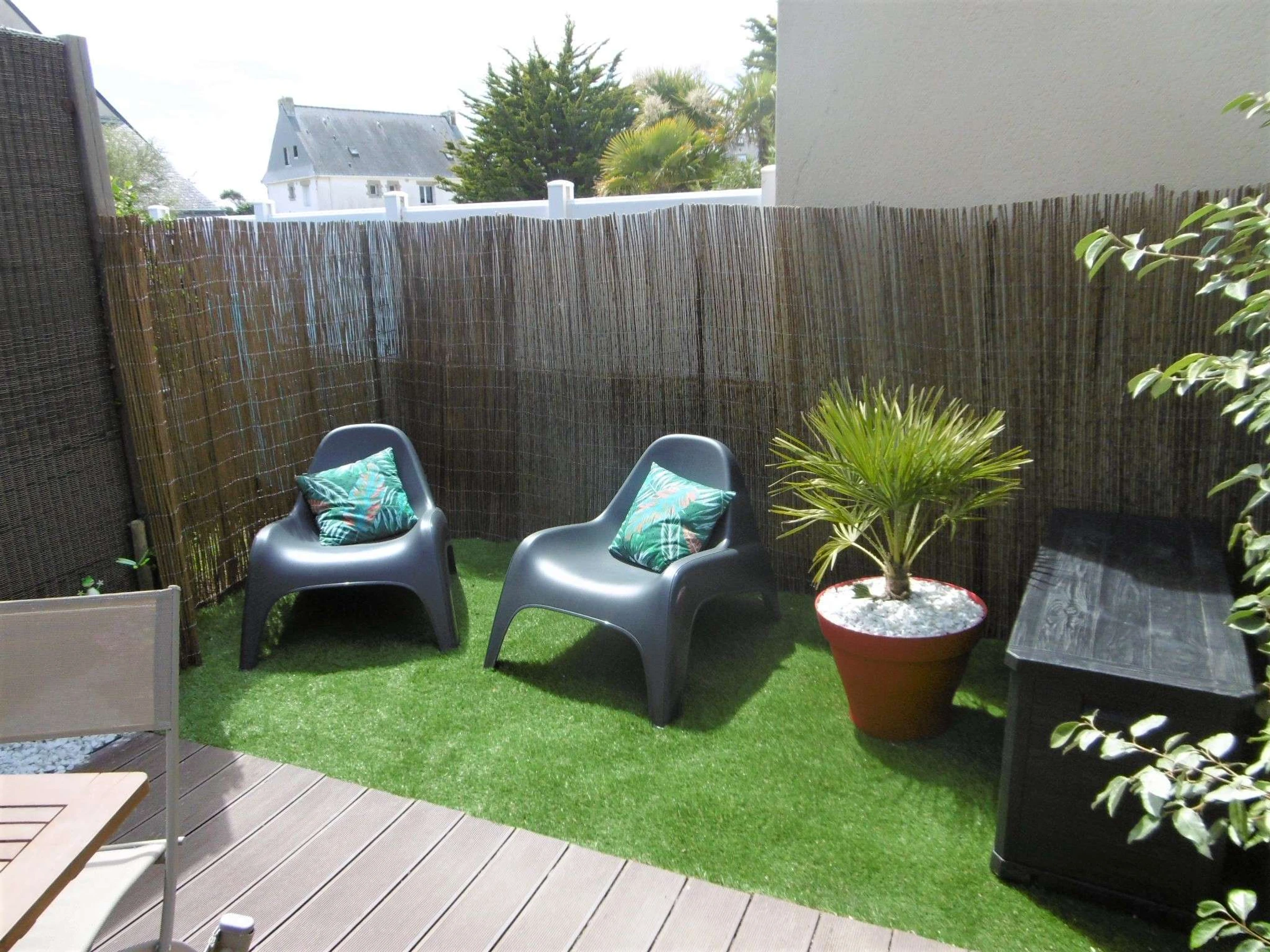 - An enclosed garden with a terrace equipped with a garden furniture, barbecue, electric awning.