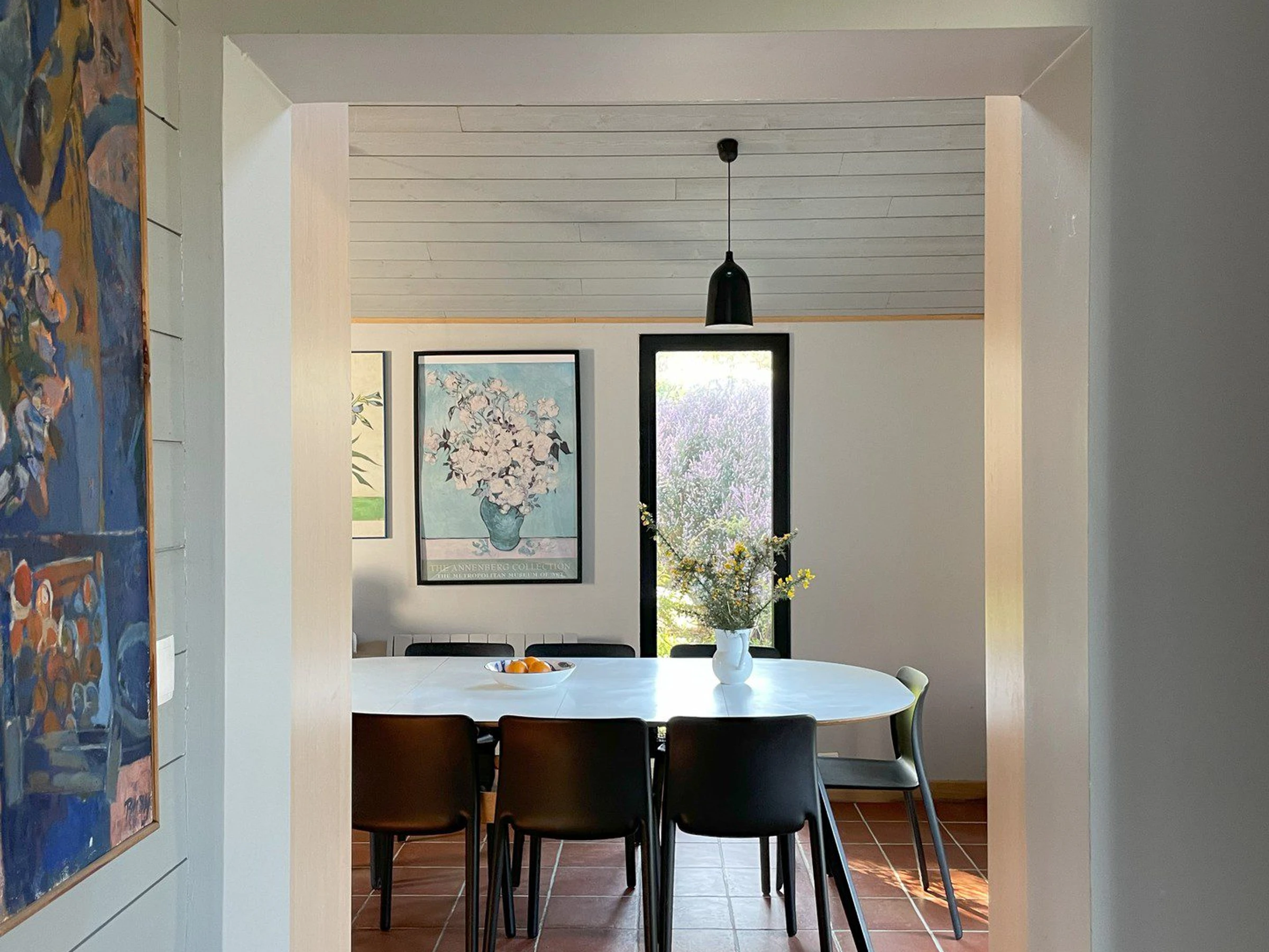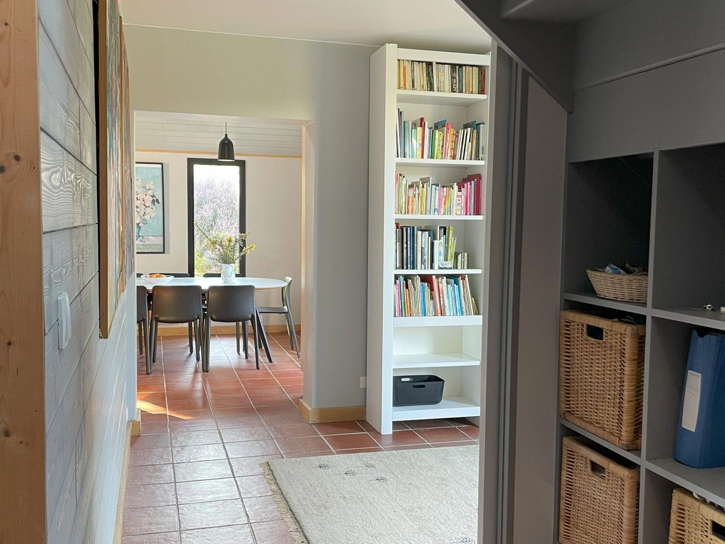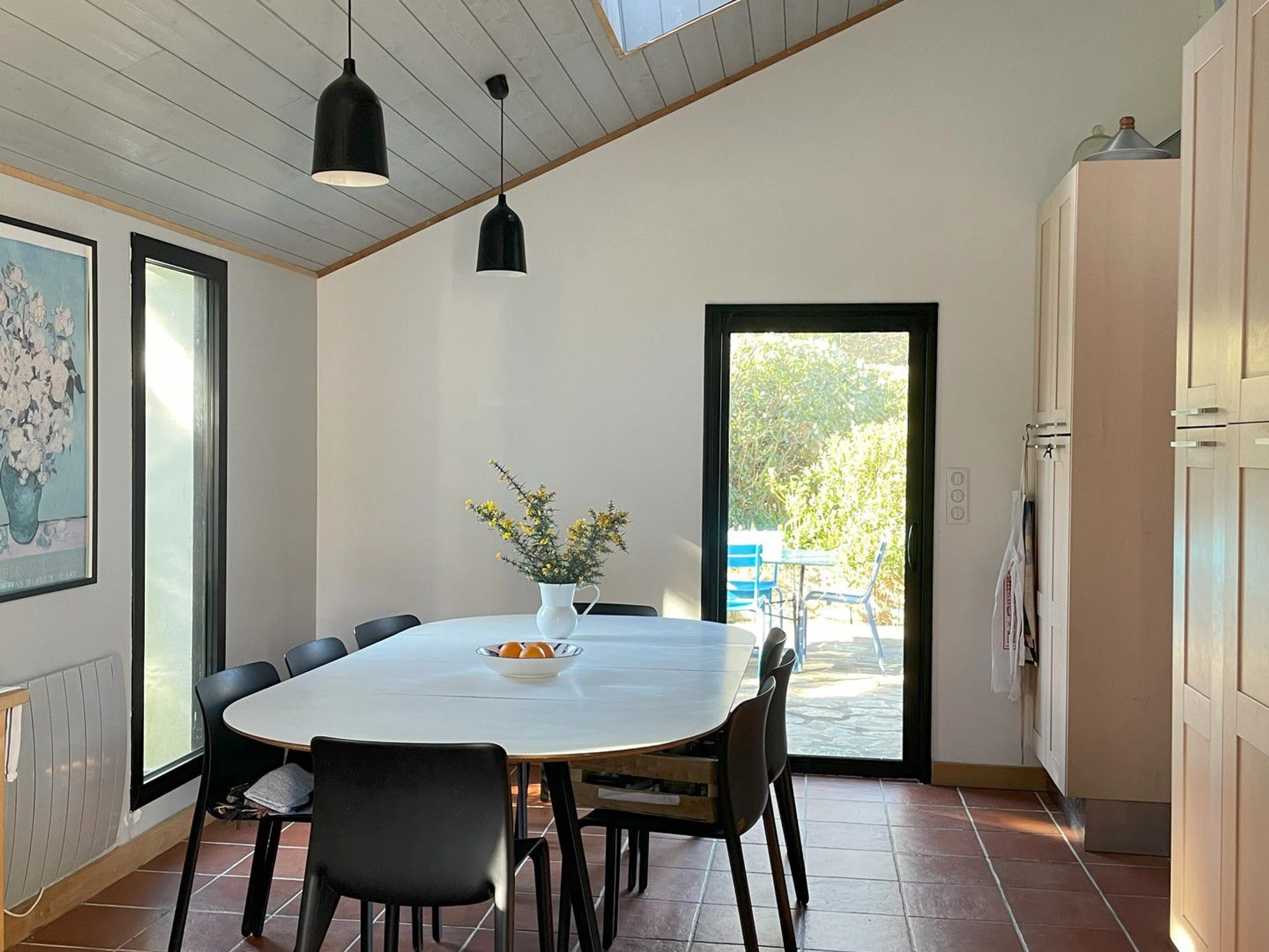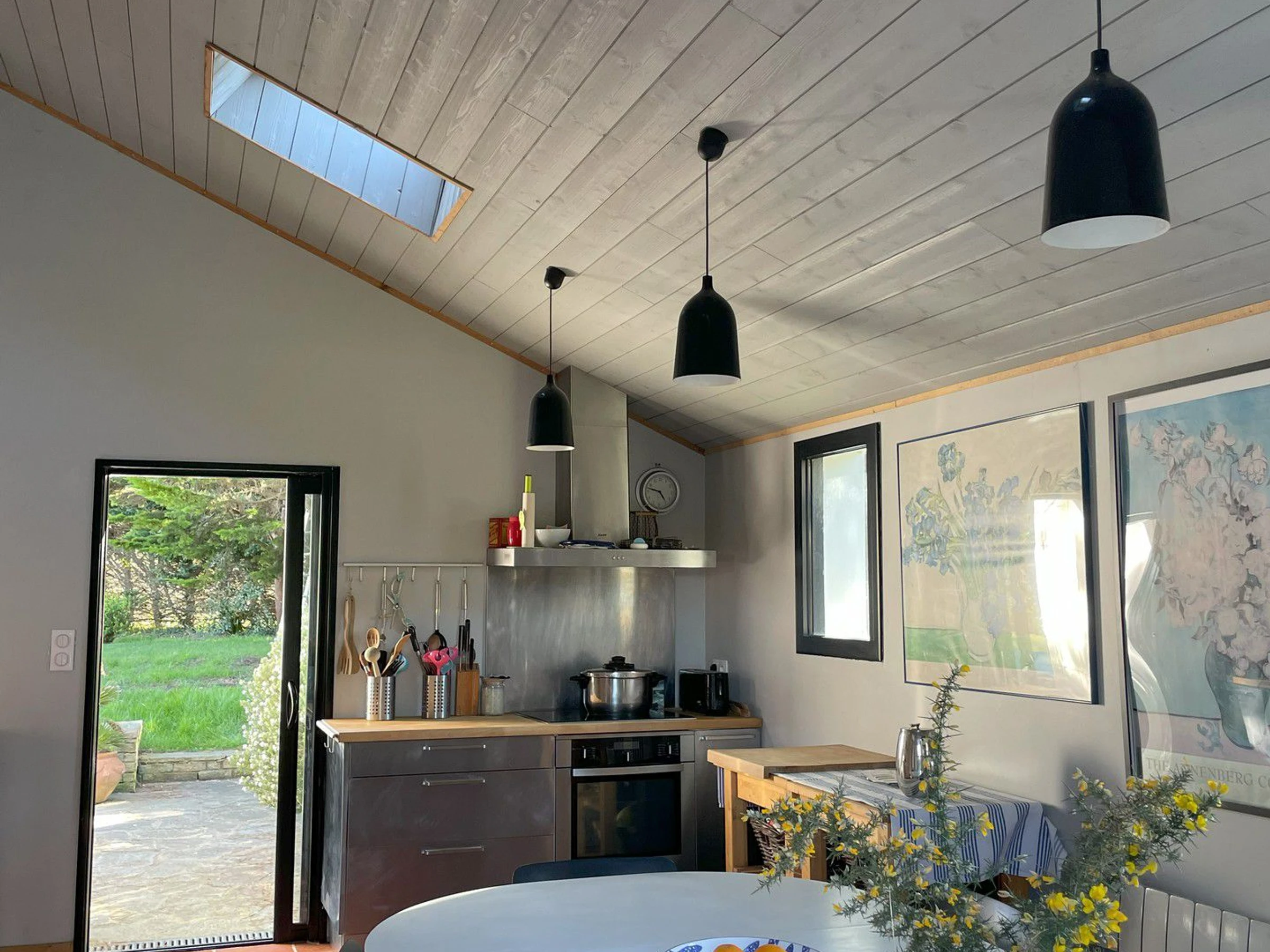 - Une cuisine-espace repas (19.5 m²) aménagée d'une table et de chaises pour 8 personnes et équipée d'une plaque à induction, four traditionnel, lave-vaisselle, réfrigérateur, casier congélateur, cafetière, grille pain, bouilloire.