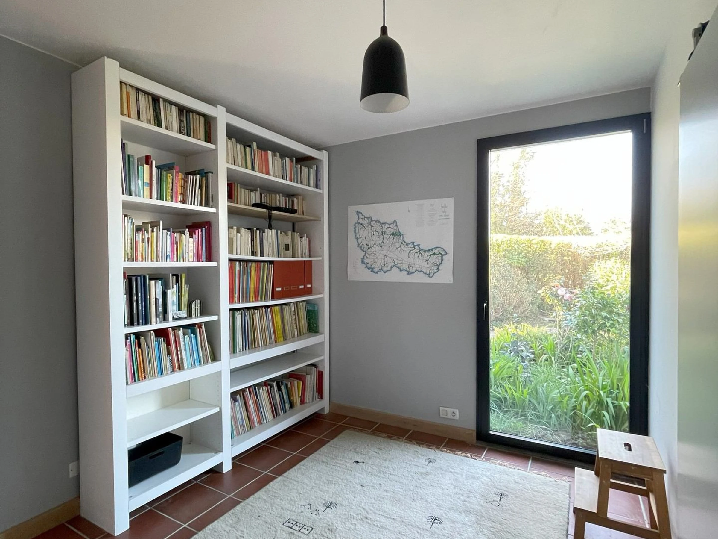 Au coeur d'un jardin de 1500 m² boisé de pins, villa contemporaine disposant de deux terrasses. Vous y trouverez :