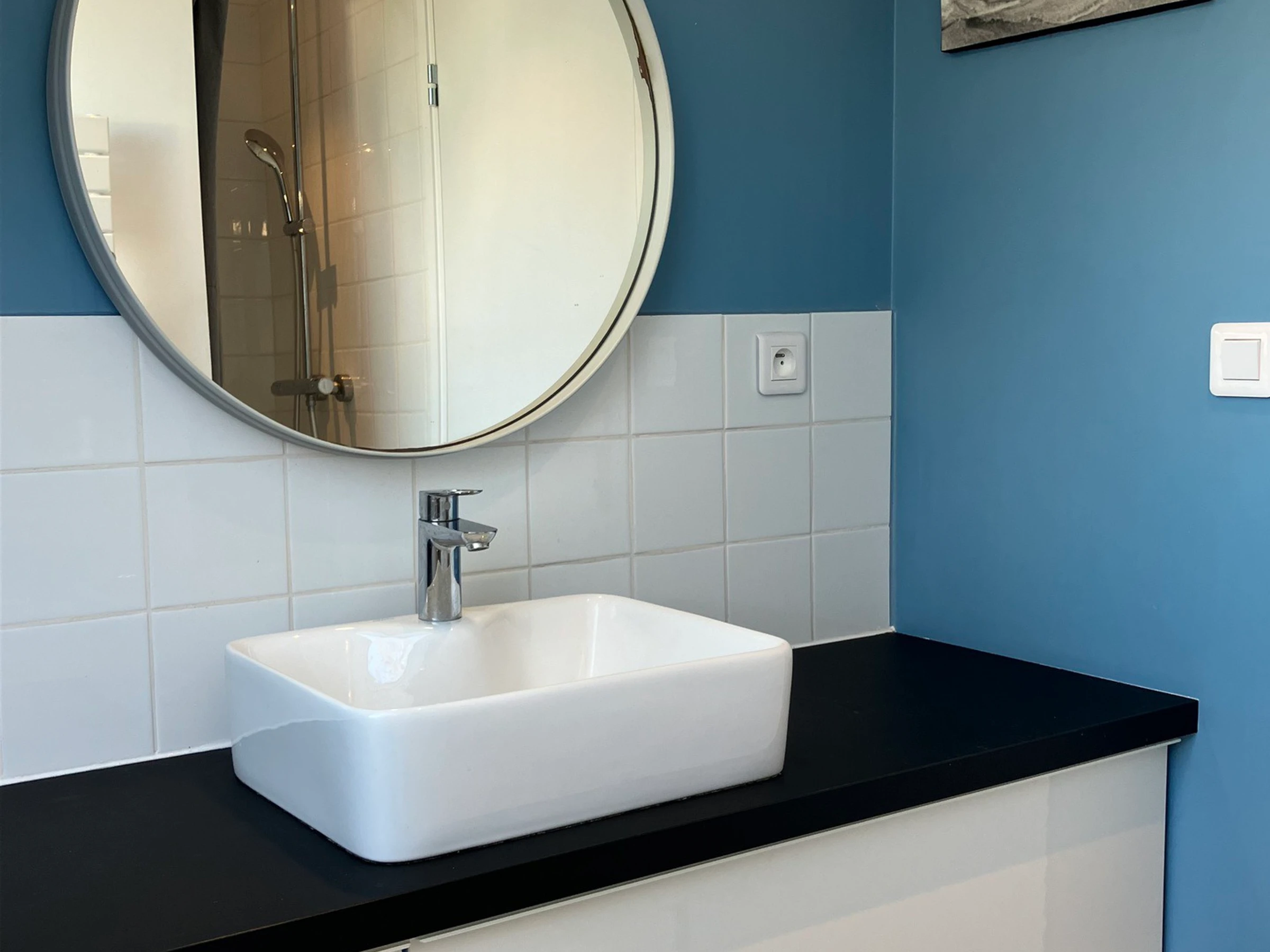 - Une salle d'eau (5.5 m²) avec baignoire sabot, douche et lavabo.