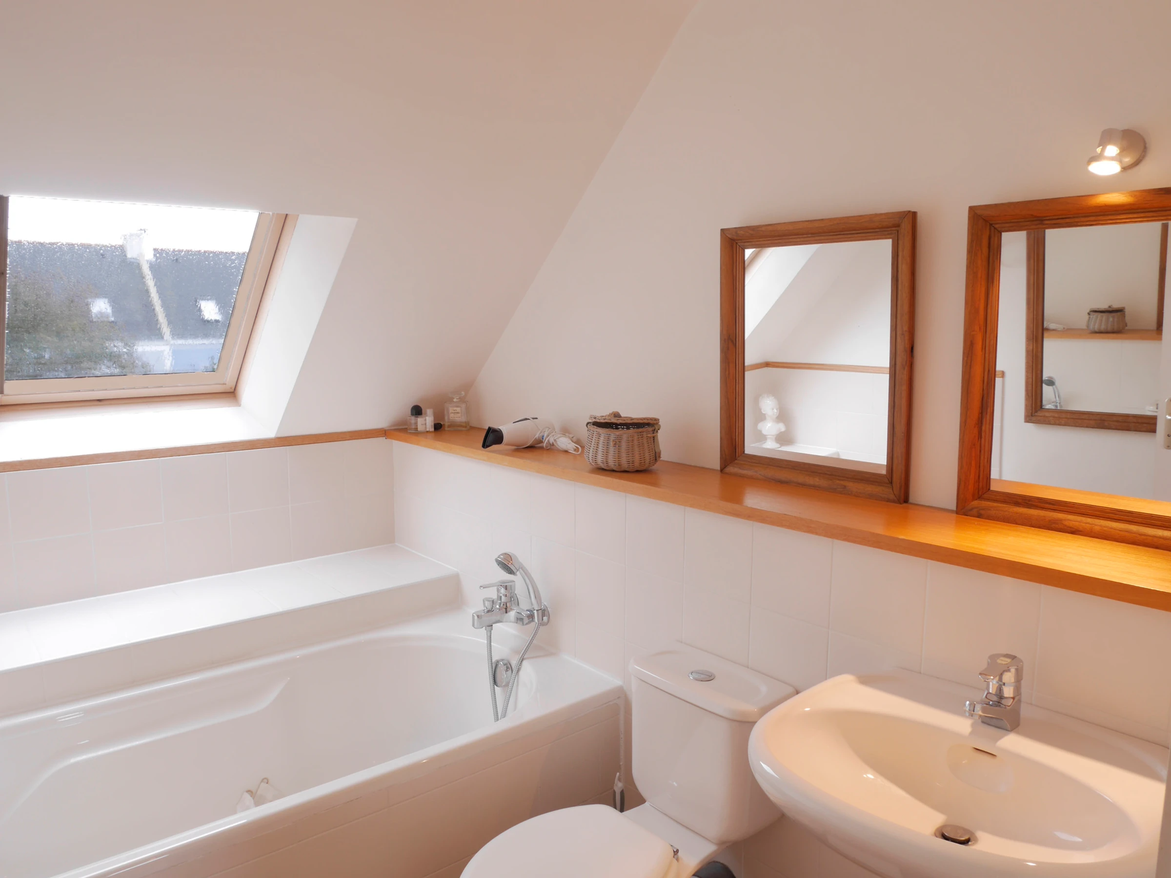 - Une salle de bain ( 5 m²) avec baignoire, lavabo, WC.