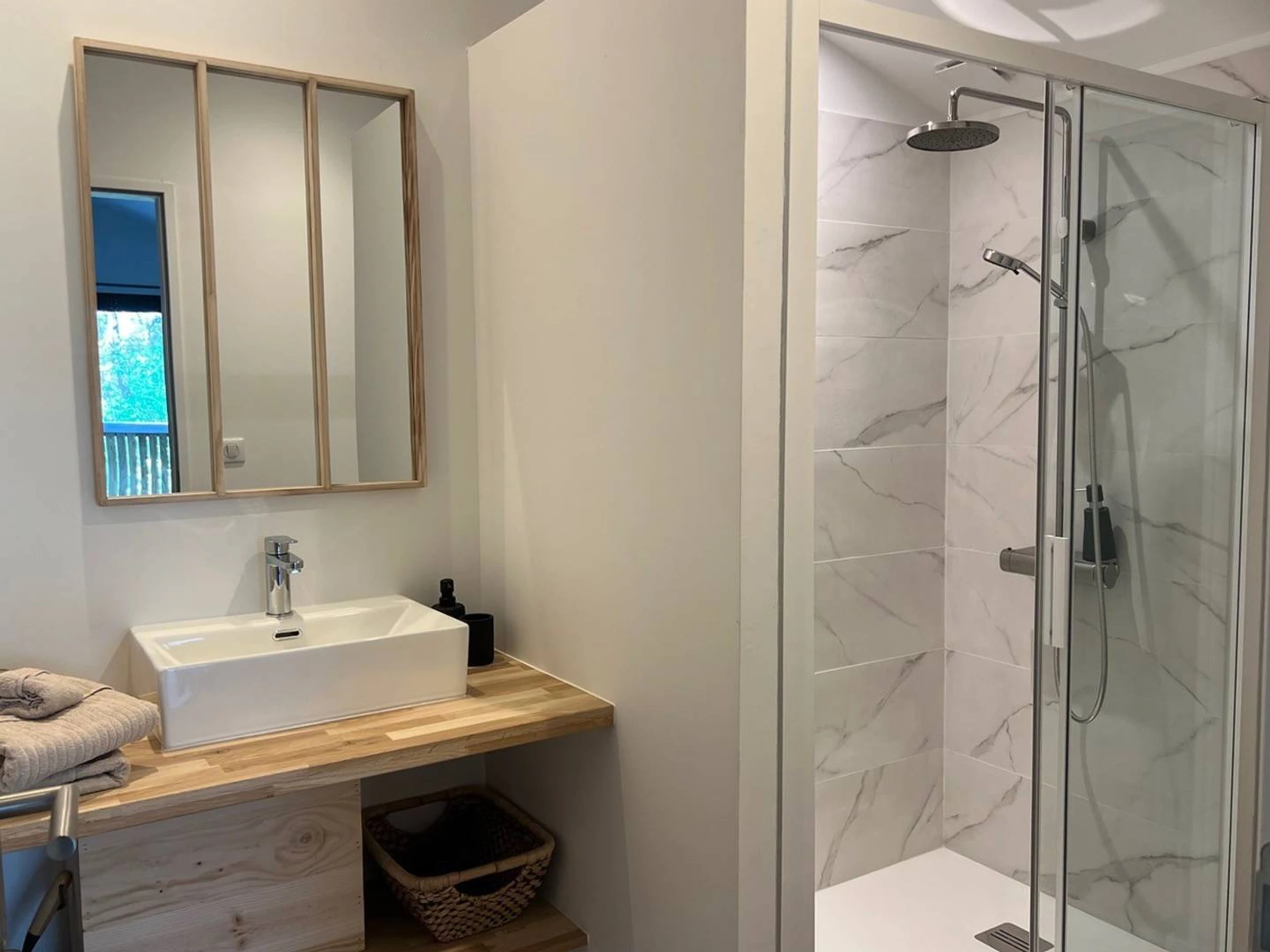 Chacune d’elle dispose d’une terrasse privée avec vue plongeante sur la nature et d’une salle de bain avec toilettes séparées.