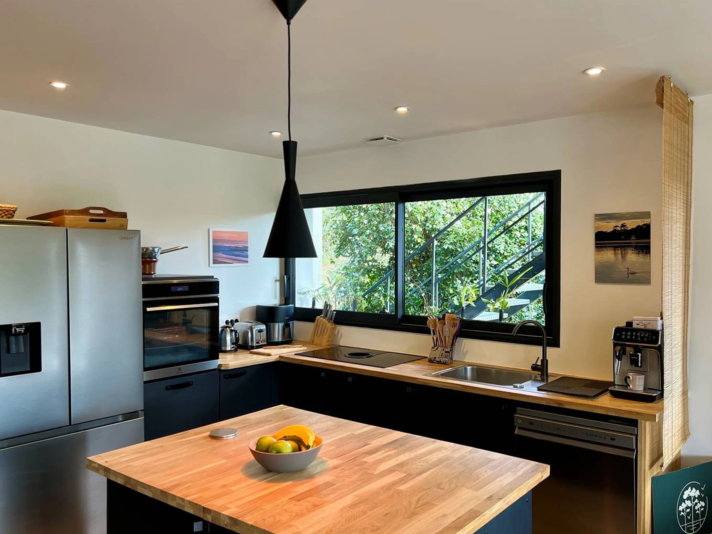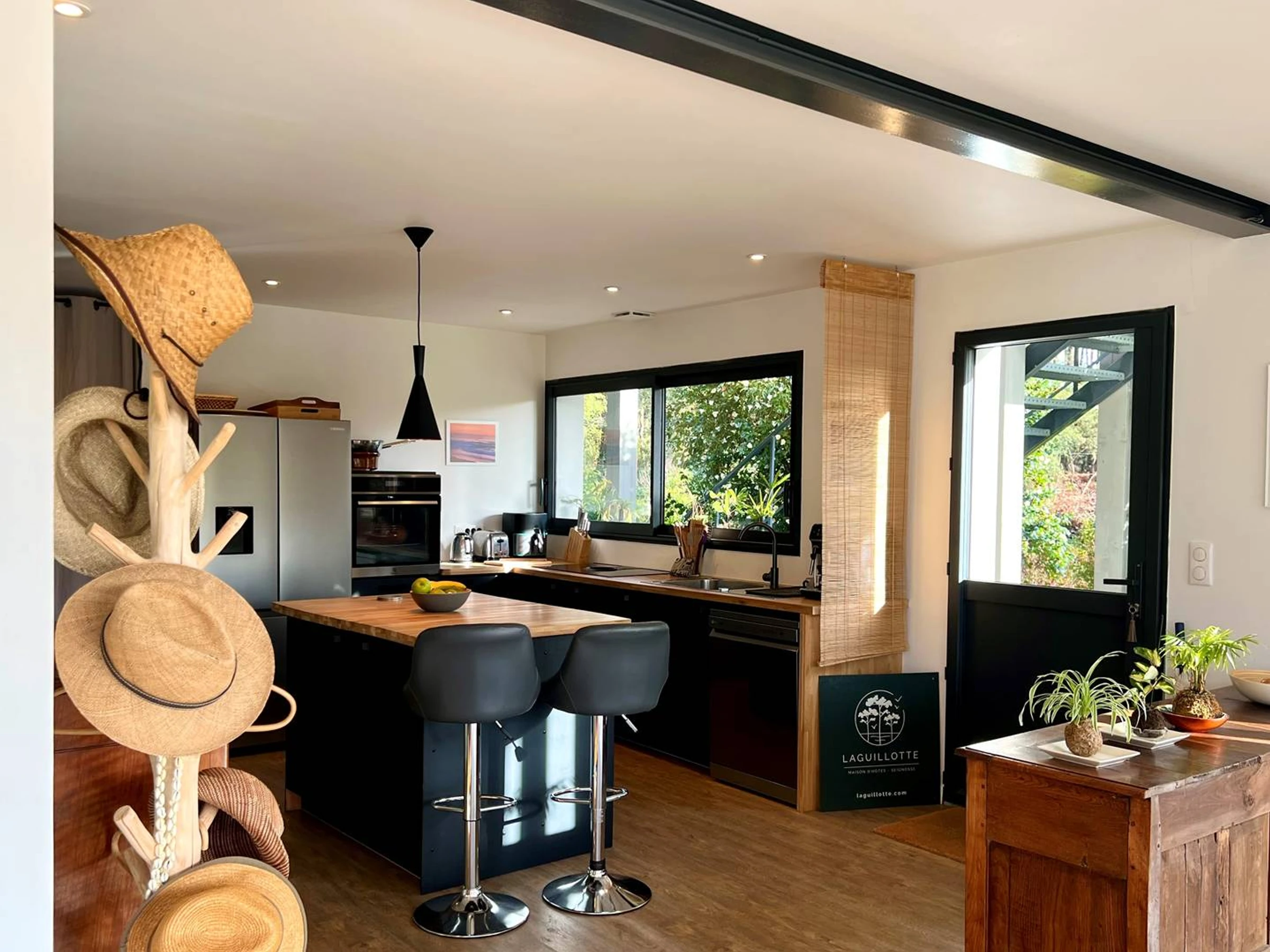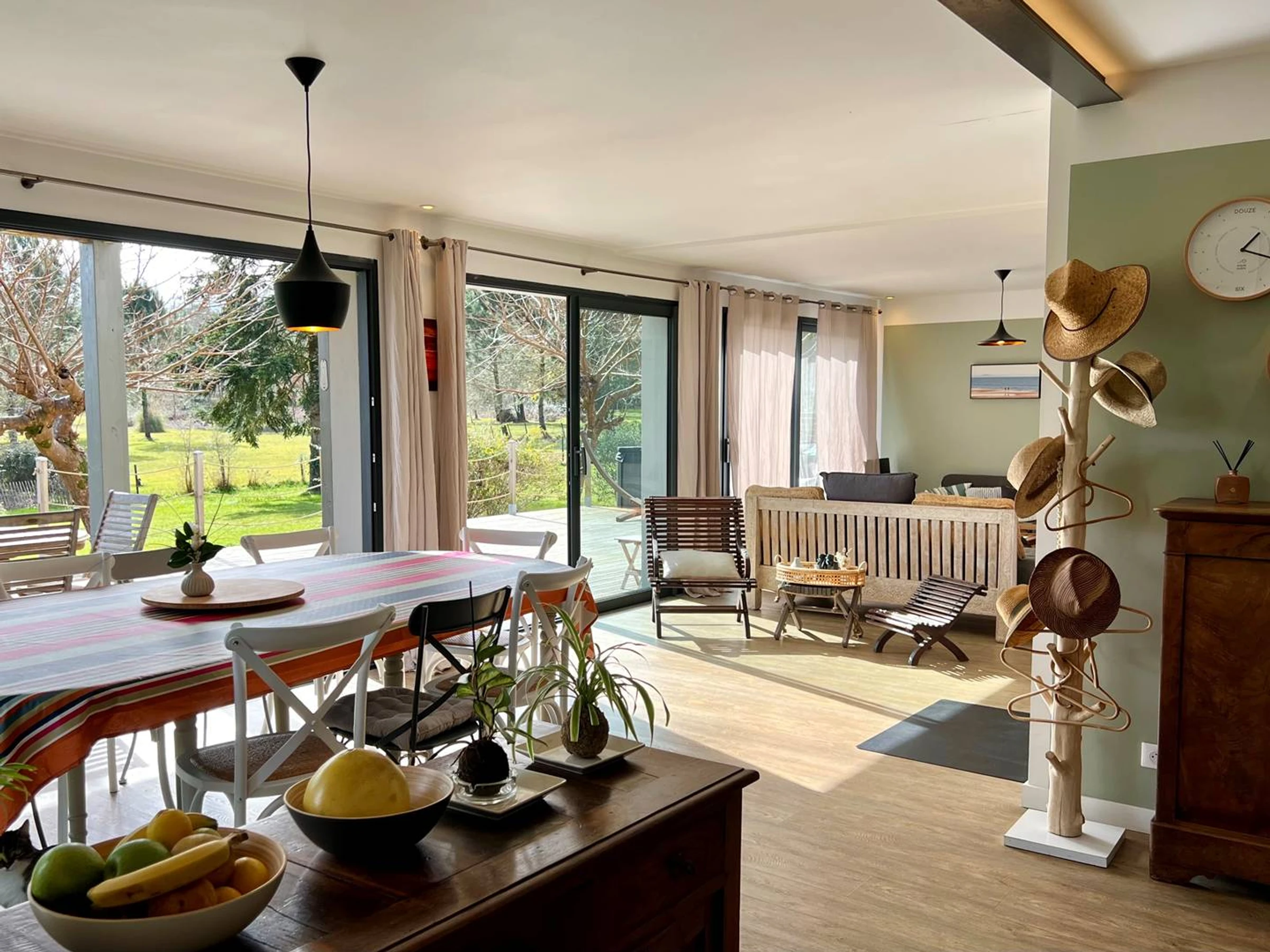 Style d’origine landais intégralement revisité et réaménagé pour avoir la sensation de vivre confortablement dedans dehors en toute saison.