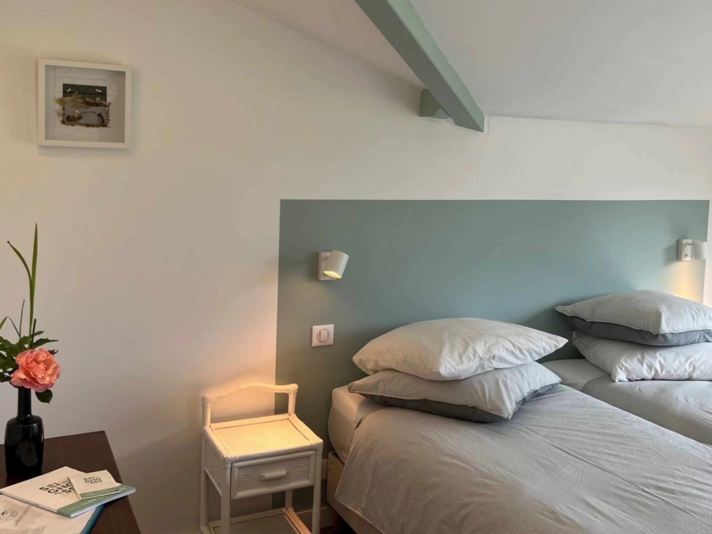 Nos chambres, au style épuré, vastes et lumineuses sont situées au premier étage de la maison d’hôtes avec un accès par un escalier extérieur indépendant.