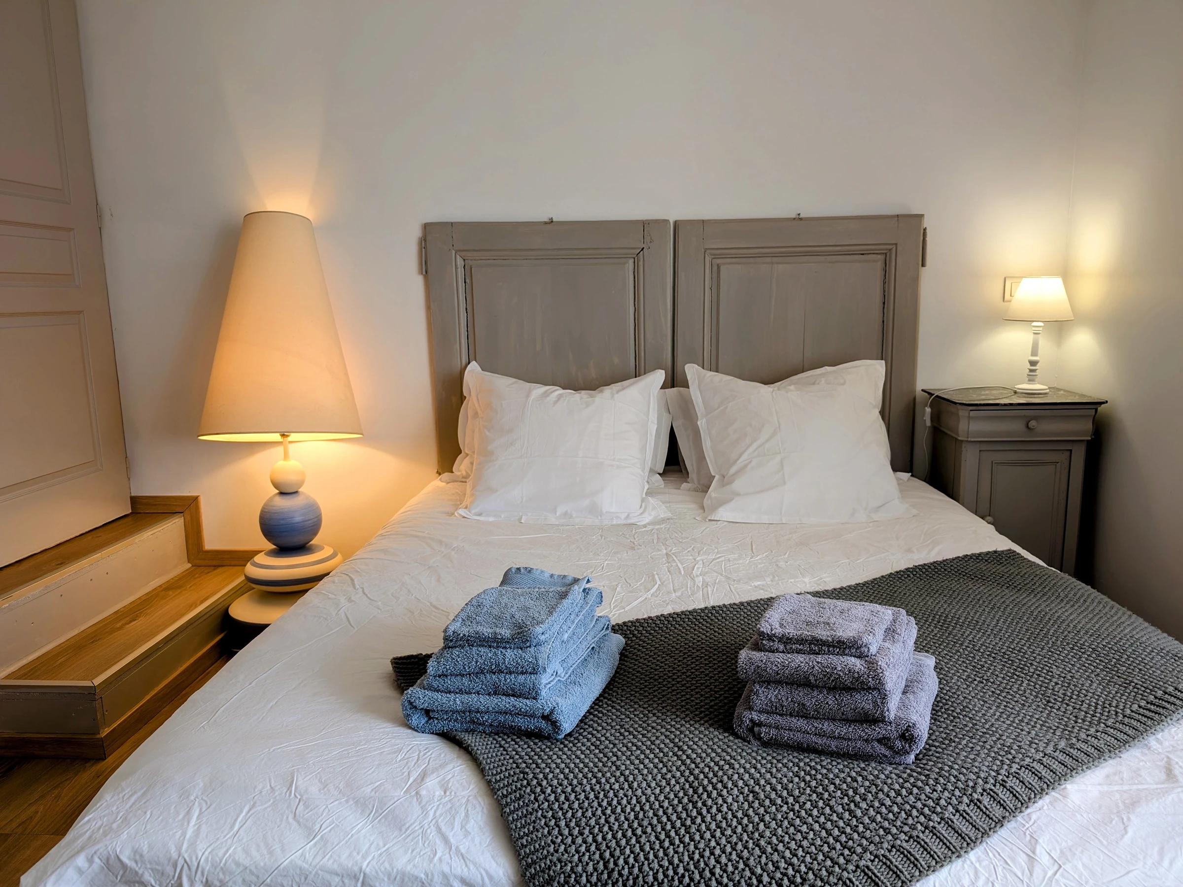 – One bedroom with one queen-size bed (160 cm) and one single bed (90 cm) (additional sleeping space available on the mezzanine).