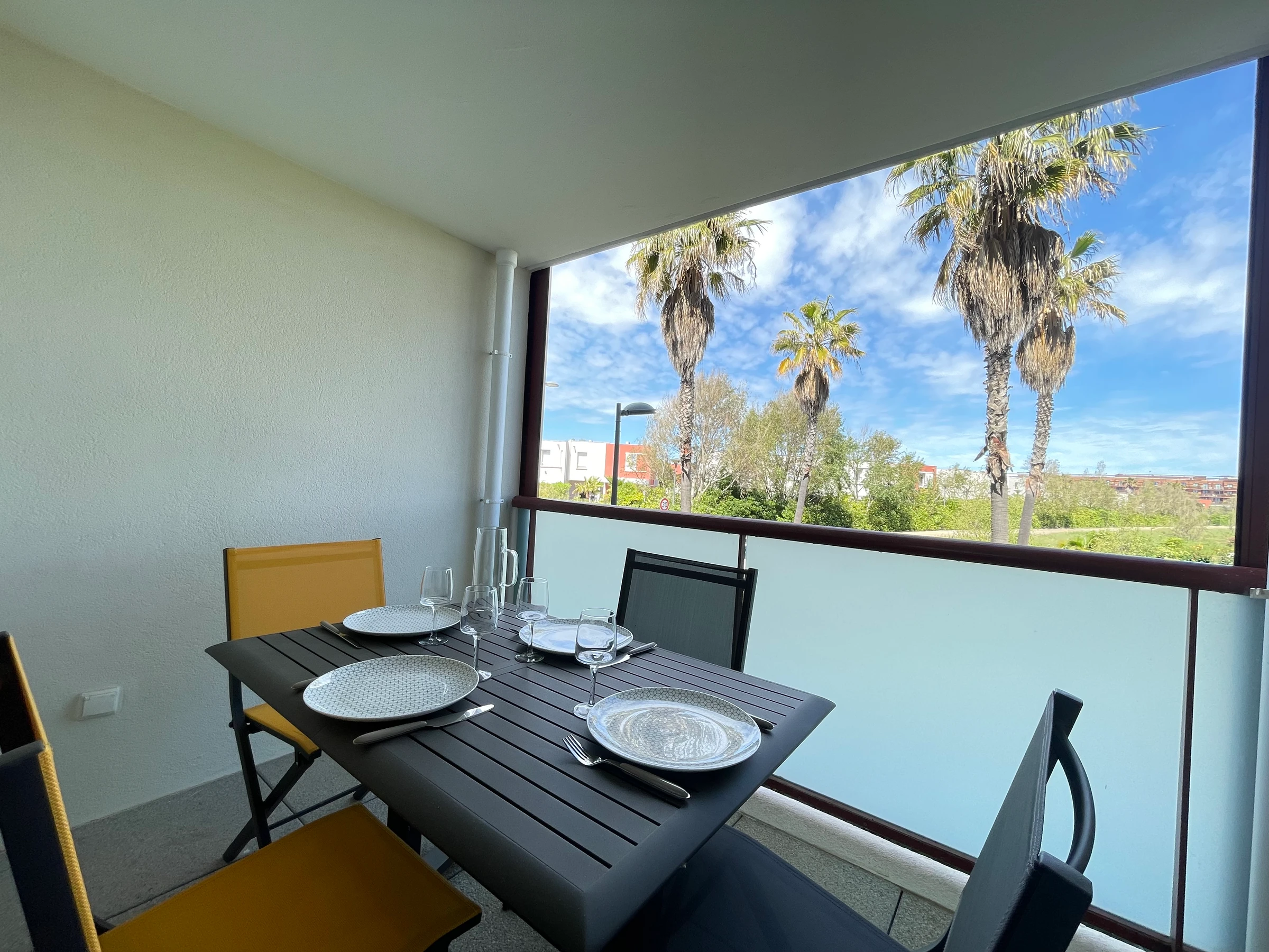 Holiday rental in Sète: Charming 2-bedroom, air-conditioned apartment of 49 m² located on the raised ground floor of a high-end residence, with a 5.45 m² loggia. Ideally situated in the new Villeroy district, 300 m from the beach and 300 m from shops. The apartment comprises a living room with a sofa, coffee table, and flat-screen TV, opening onto a fully equipped kitchen with a hob, fridge-freezer, oven, microwave, and washing machine. Bedroom 1: a double bed (140 cm) and a wardrobe. Bedroom 2: a bunk bed with a 140 cm sleeping area on the bottom and a 90 cm sleeping area on top, as well as a storage cupboard. Bathroom: sink and bathtub; separate WC. A private garage (H: 1.90 m – W: 2.90 m – L: 5.60 m) is available, accessible via an electric gate (2 m high). Garage #2. Pets are not allowed. Late arrival possible: €50 (please contact us for details)