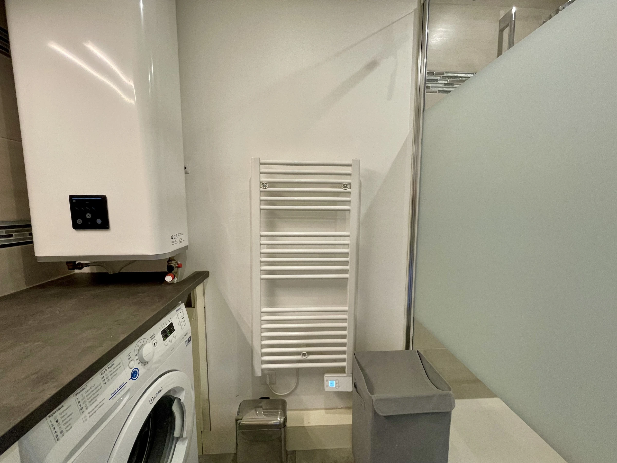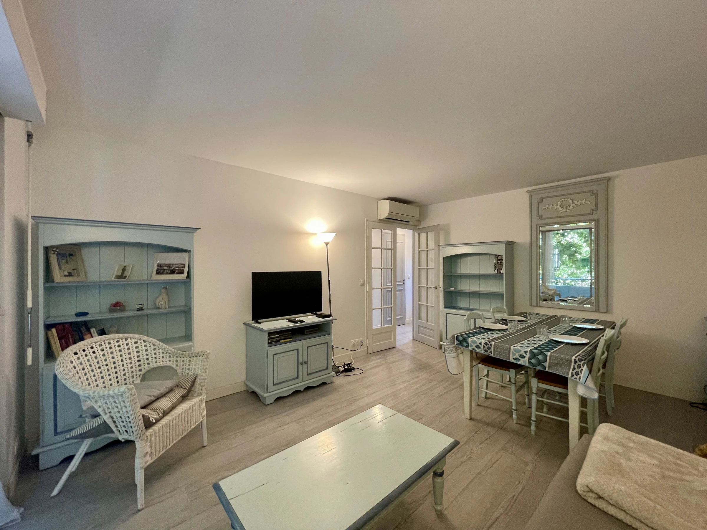 It is located in a residence on the 2nd floor with elevator (4 steps to access the elevator) Composed of an entrance, living room with a sofa bed (140x190), flat screen TV, table, 4 chairs, air conditioning and WIFI. Small balcony in the living room. A separate and equipped kitchen (fridge / freezer, induction hobs, Senseo coffee maker and dishwasher, oven, microwave) Night side, bedroom with bed (140x190) storage cupboard. Shower room: shower, sink, vanity unit, storage and washing machine. Separate WC.
